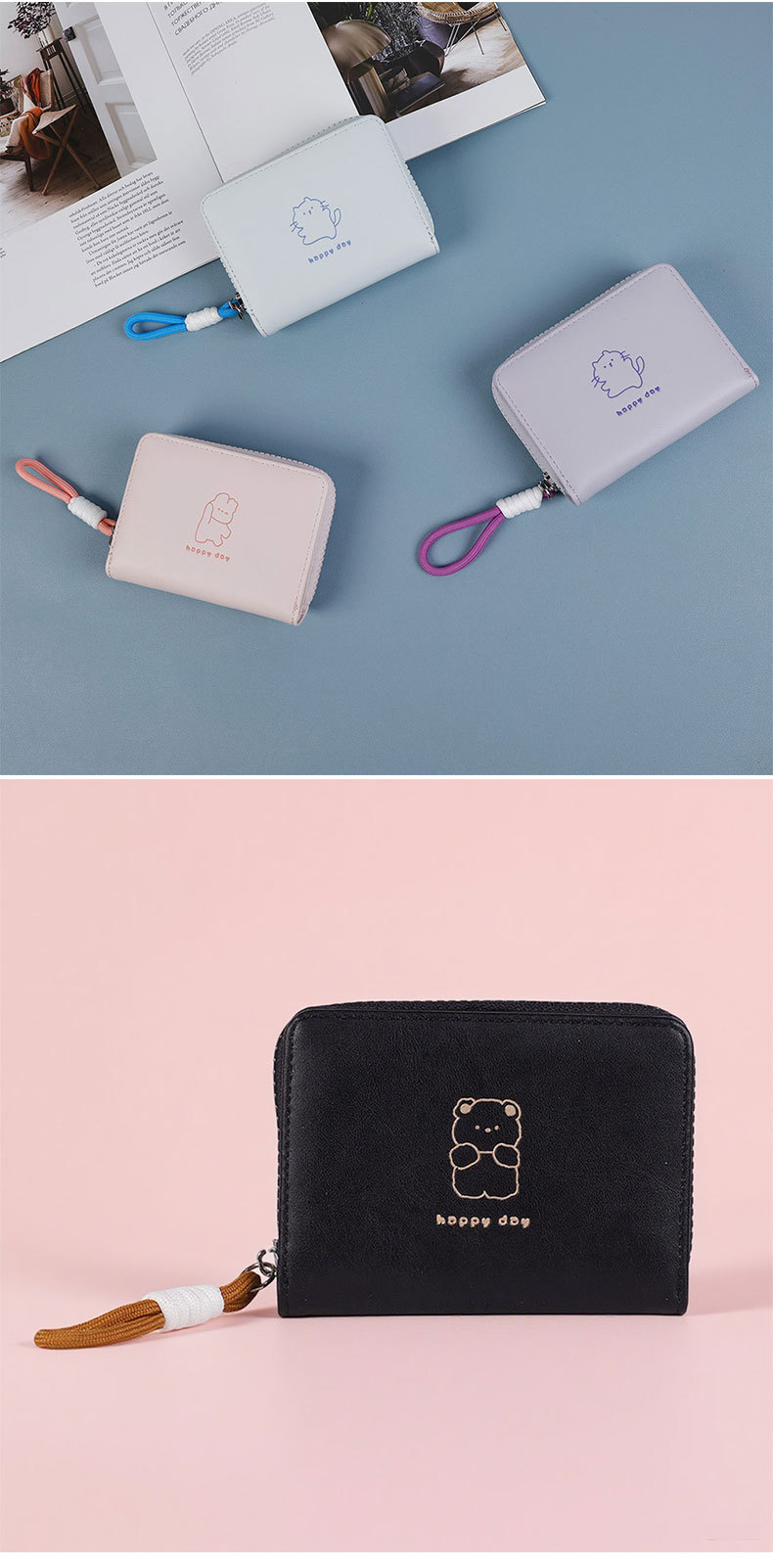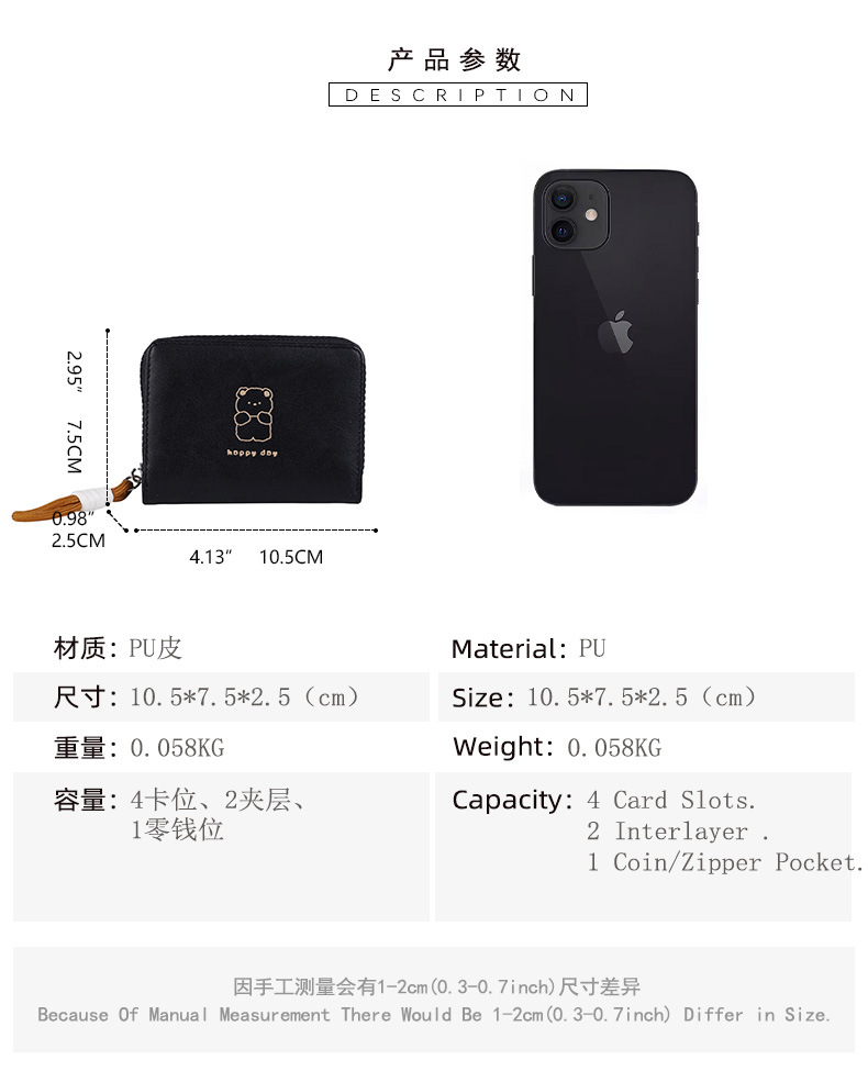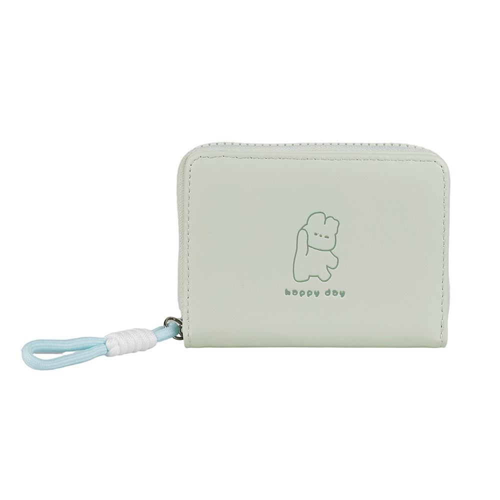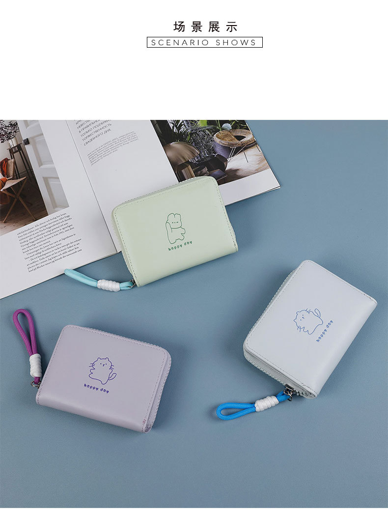 2026可爱绳结开心熊零钱包女卡通短款女士钱包大容量拉链卡包跨境