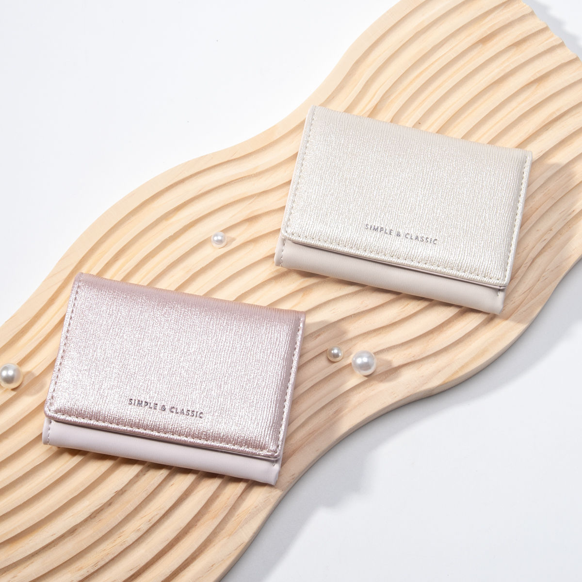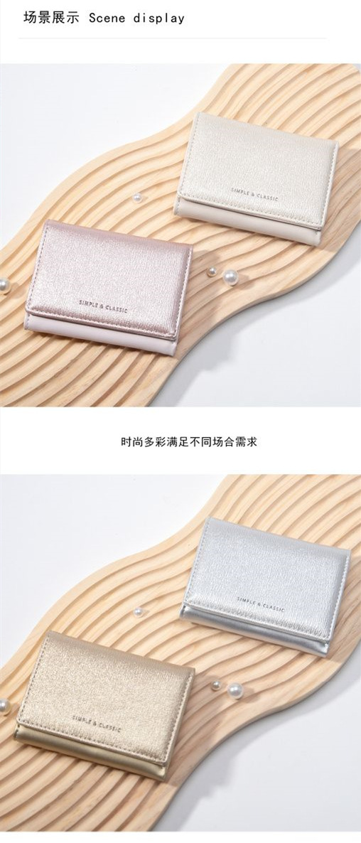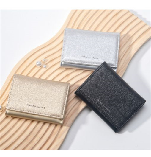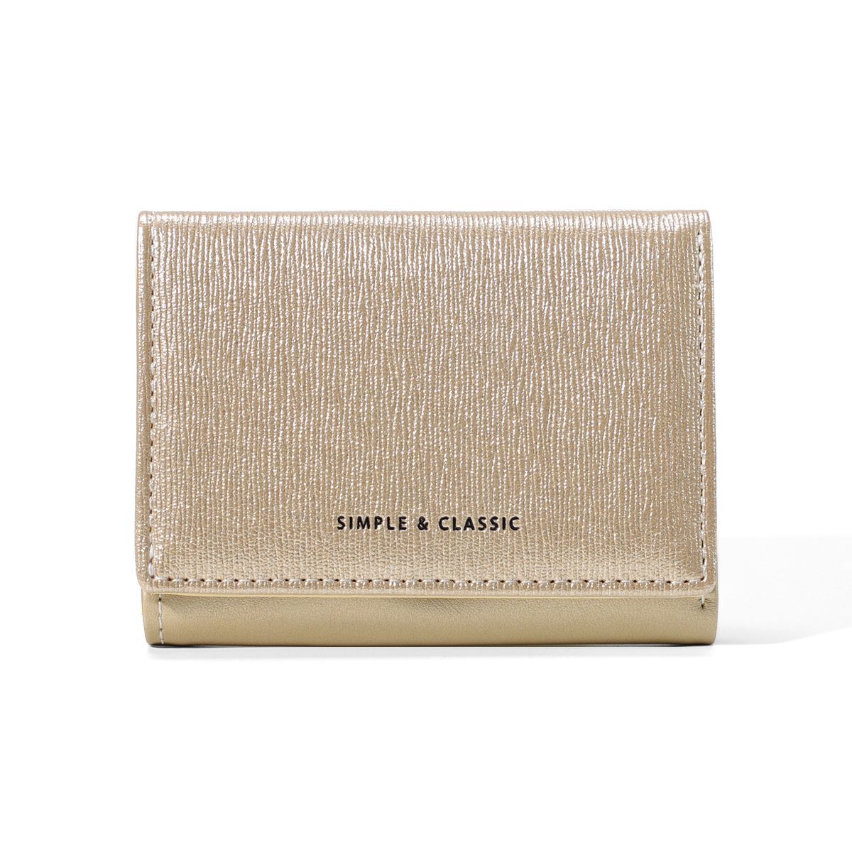 黛妮 韩版简约珠光闪亮字母女士卡包 时尚金银PU皮短三折零钱包