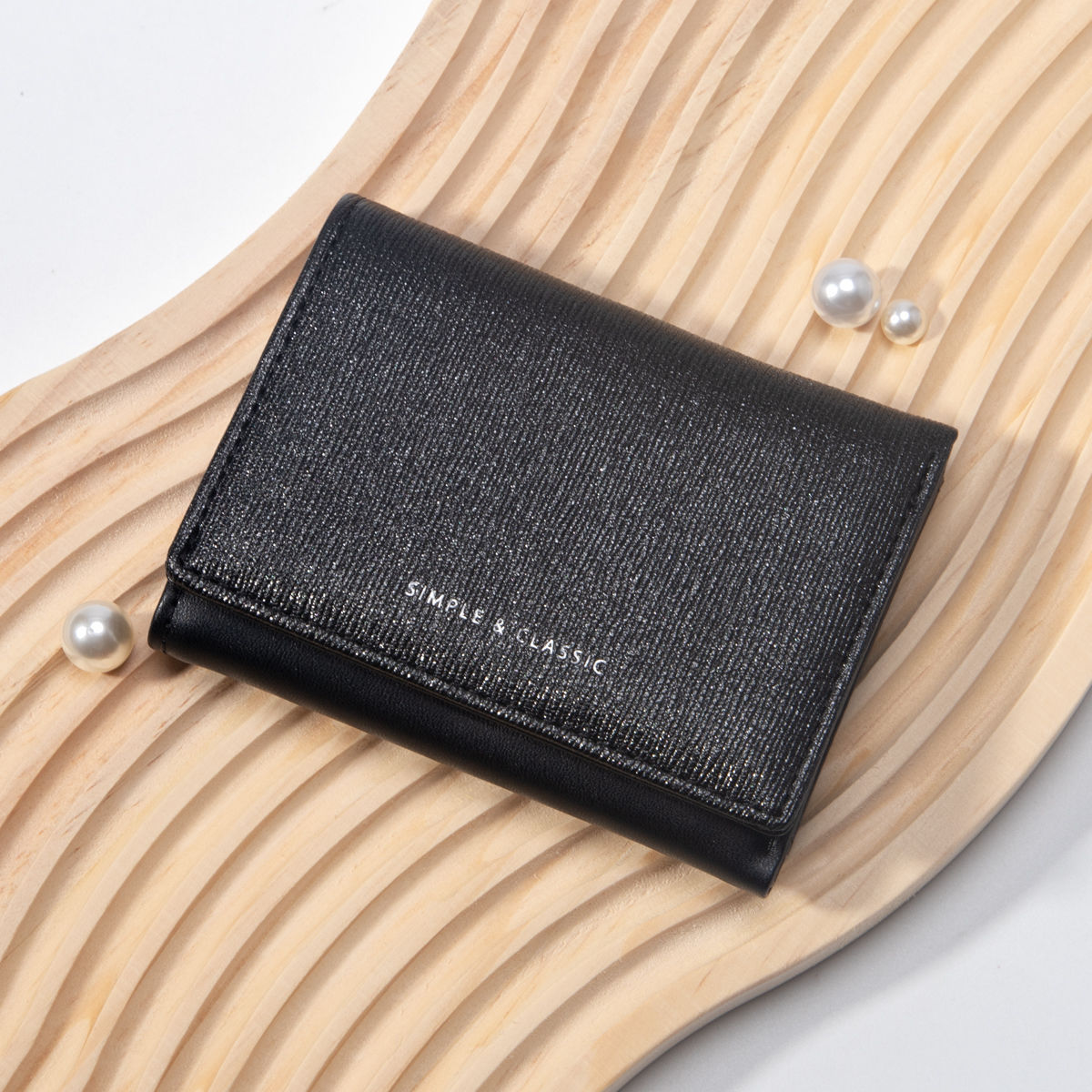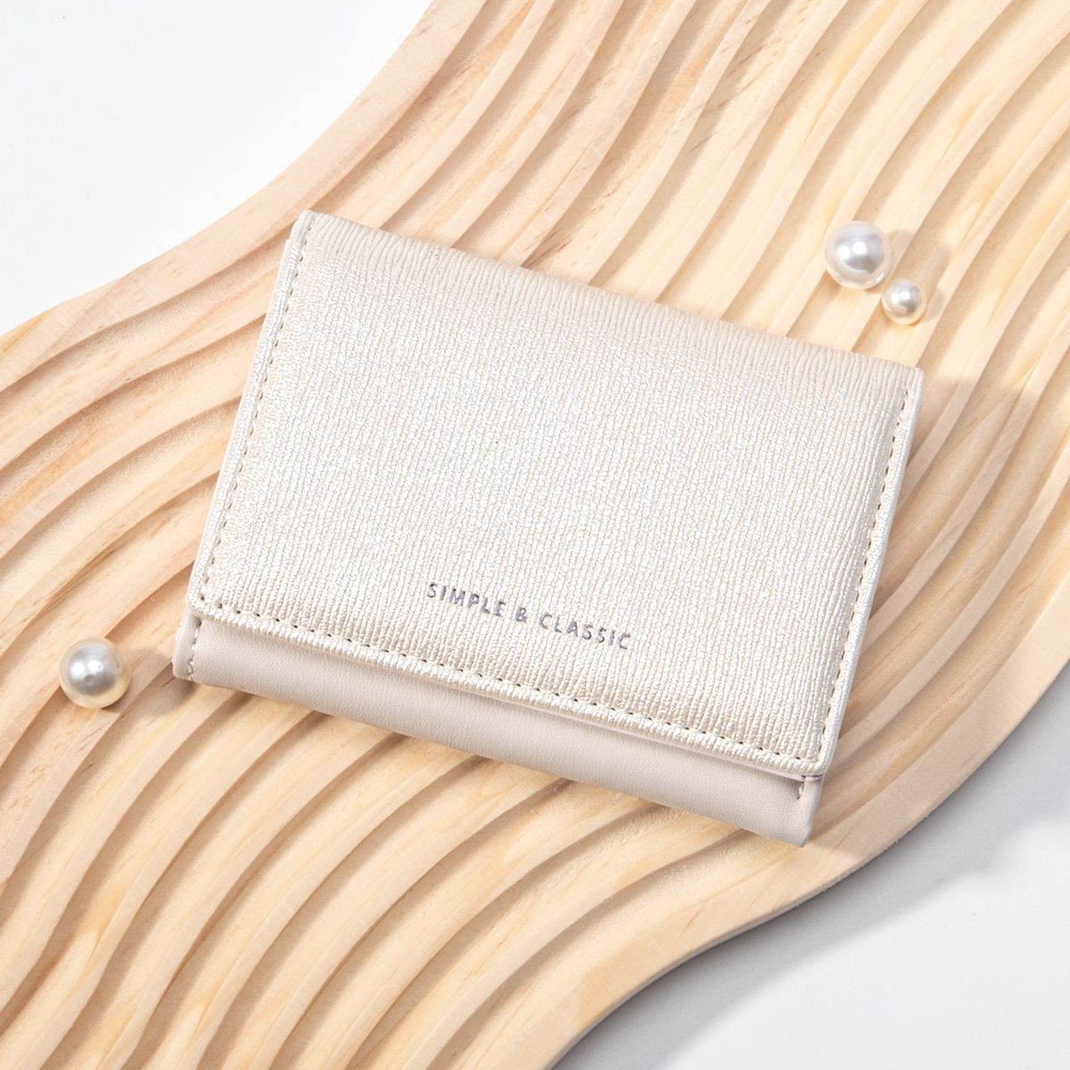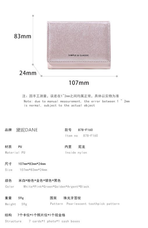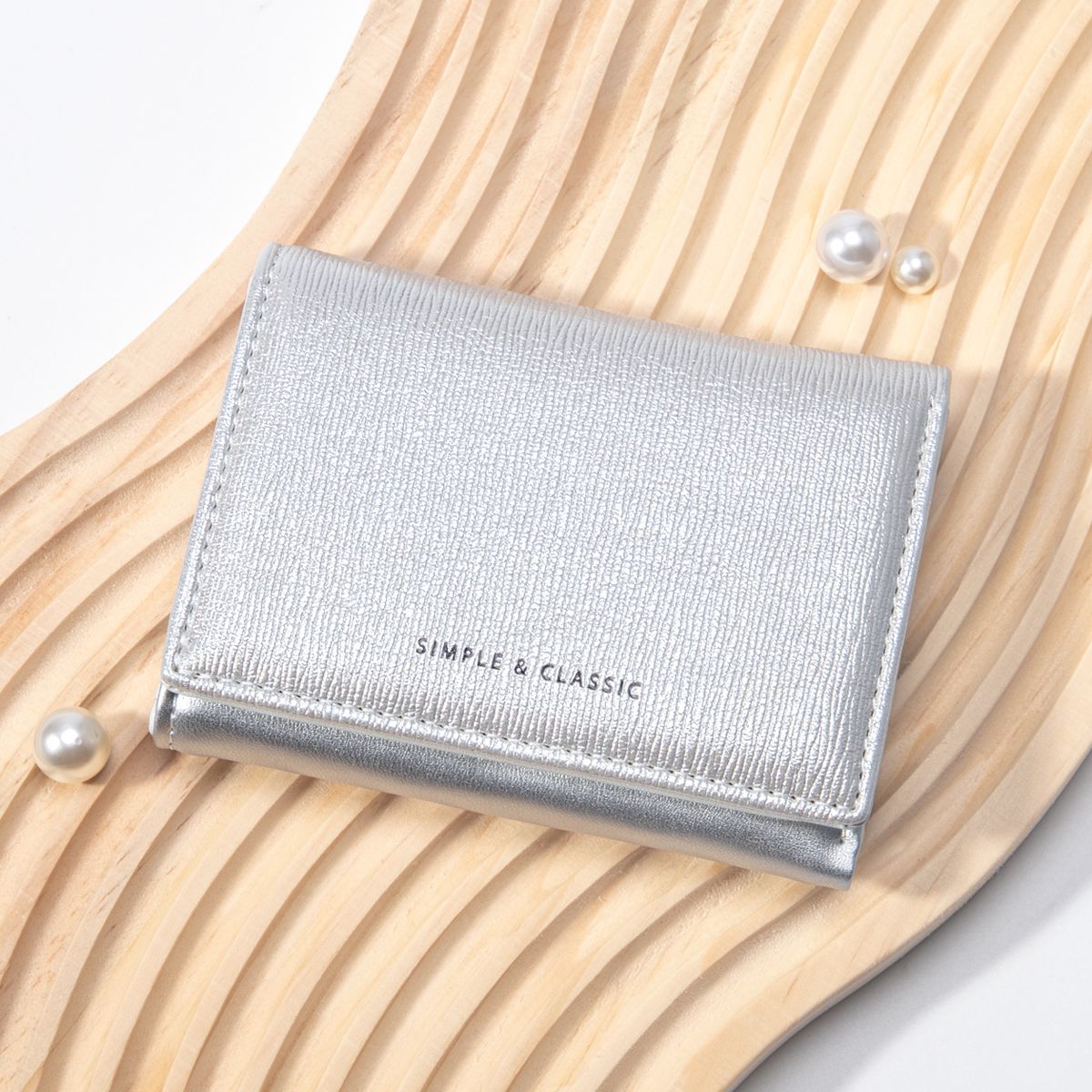 黛妮 韩版简约珠光闪亮字母女士卡包 时尚金银PU皮短三折零钱包