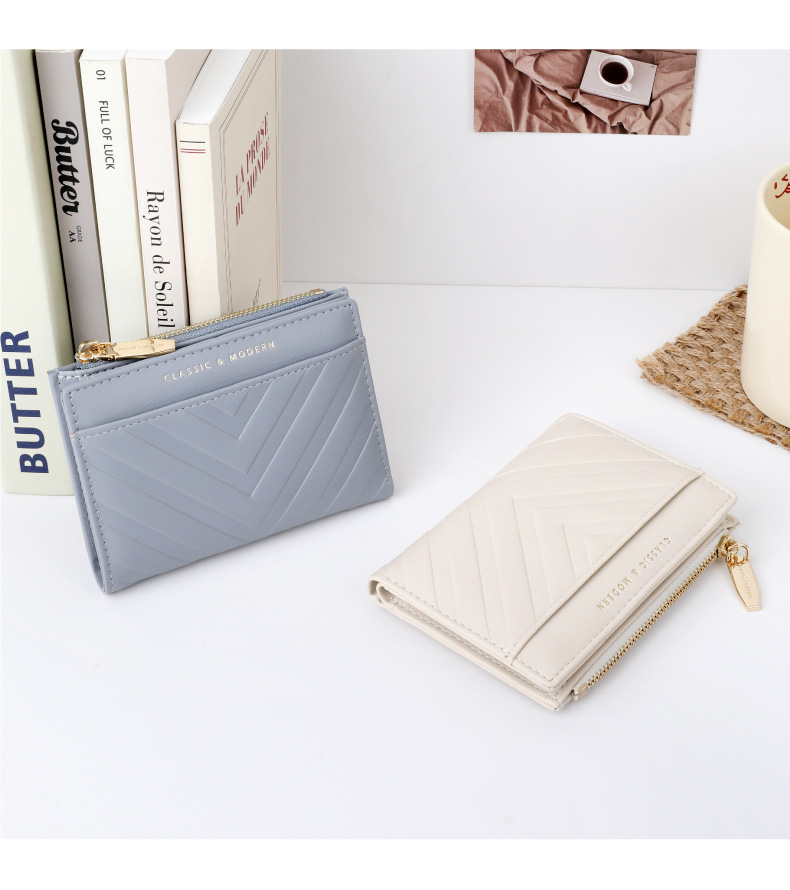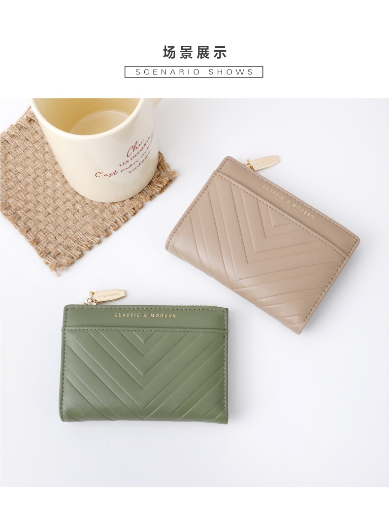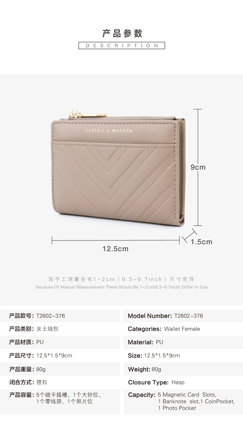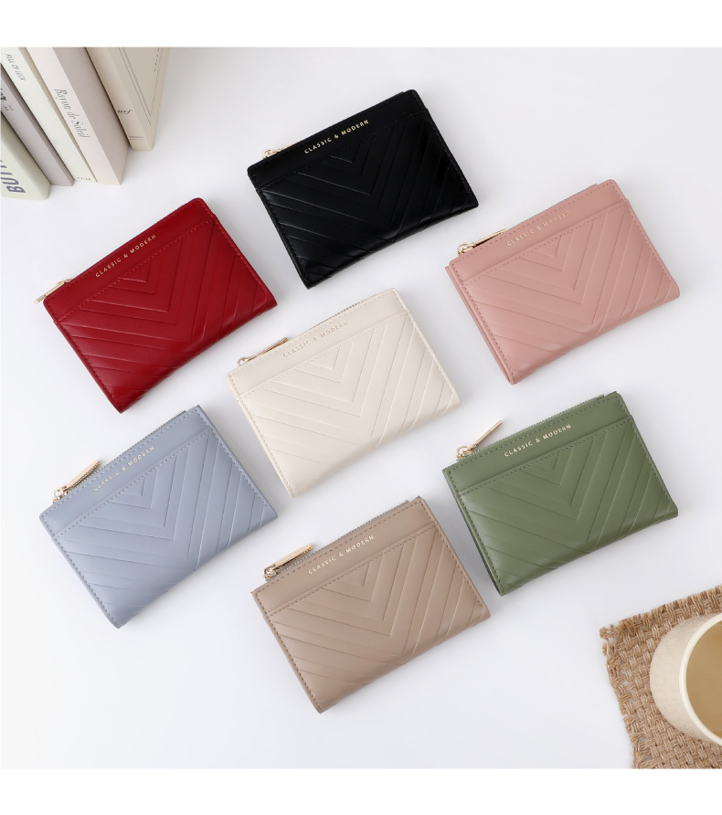 泰莉安新款条形压花PU皮革钱包女ins 多卡位跨境时尚百搭小零钱包