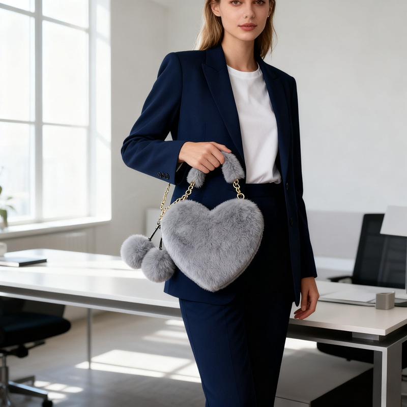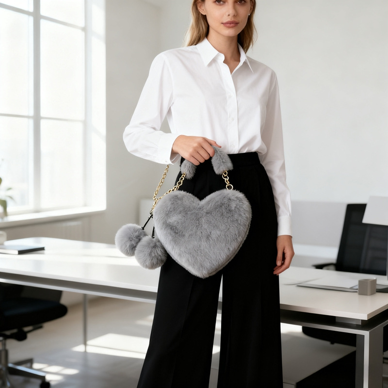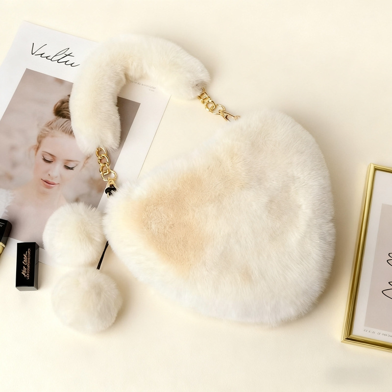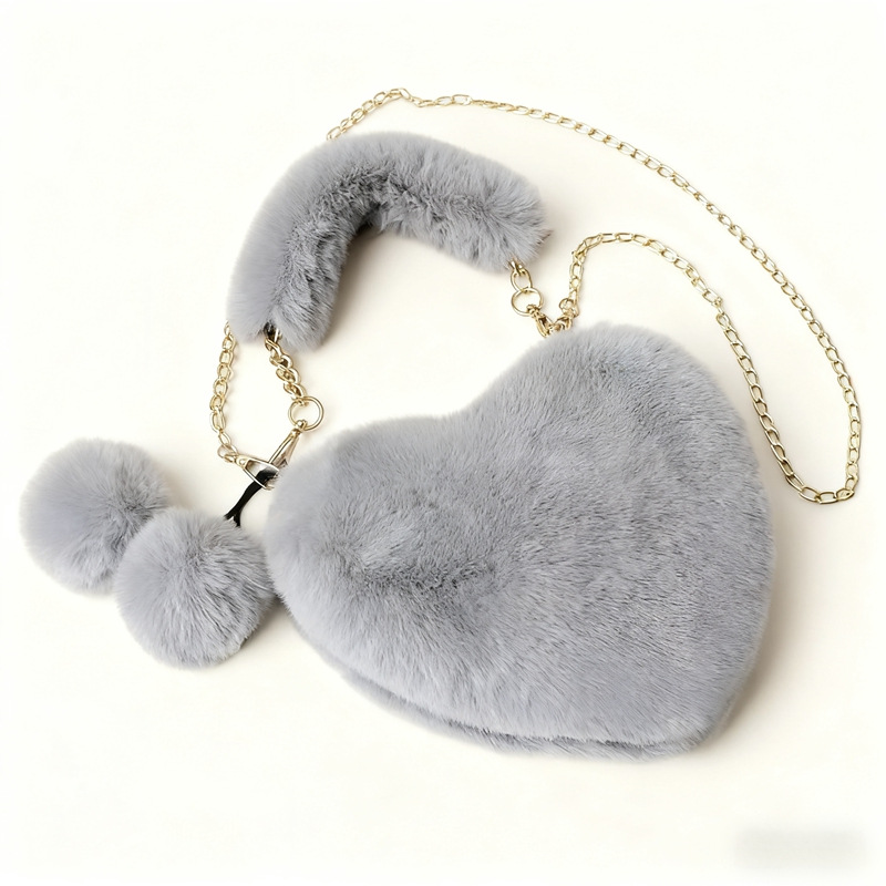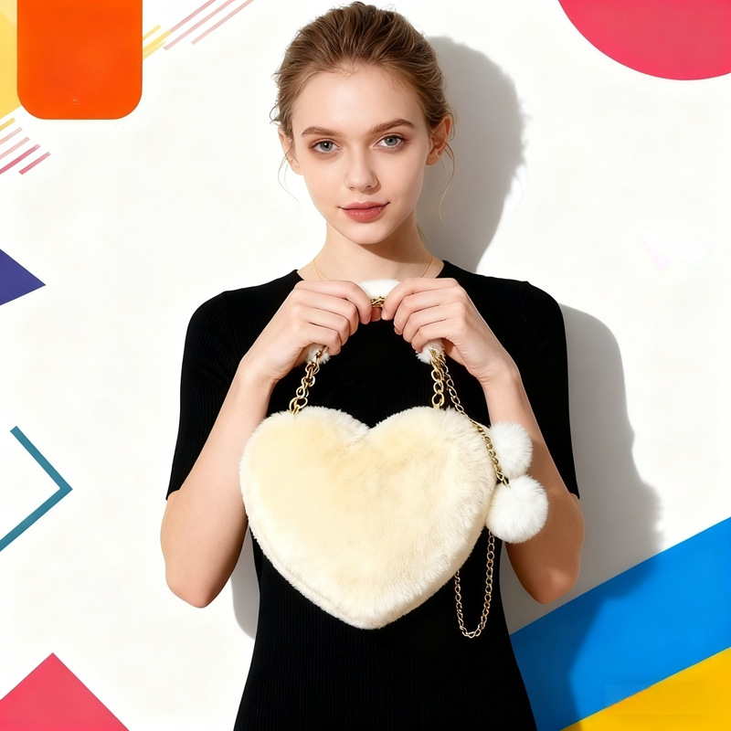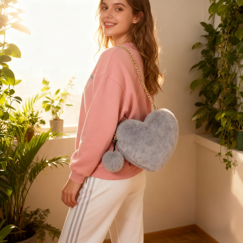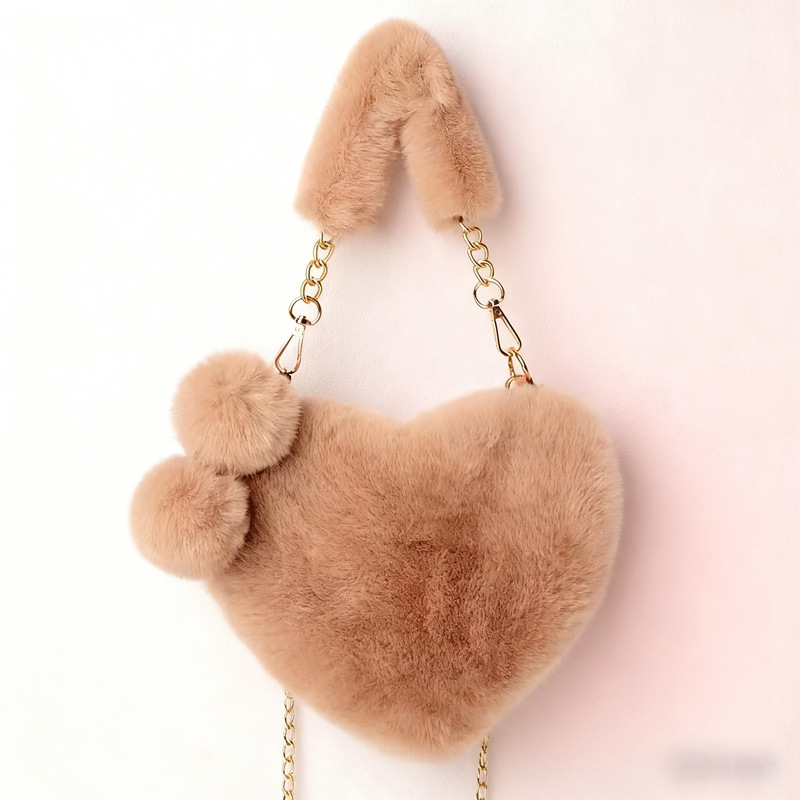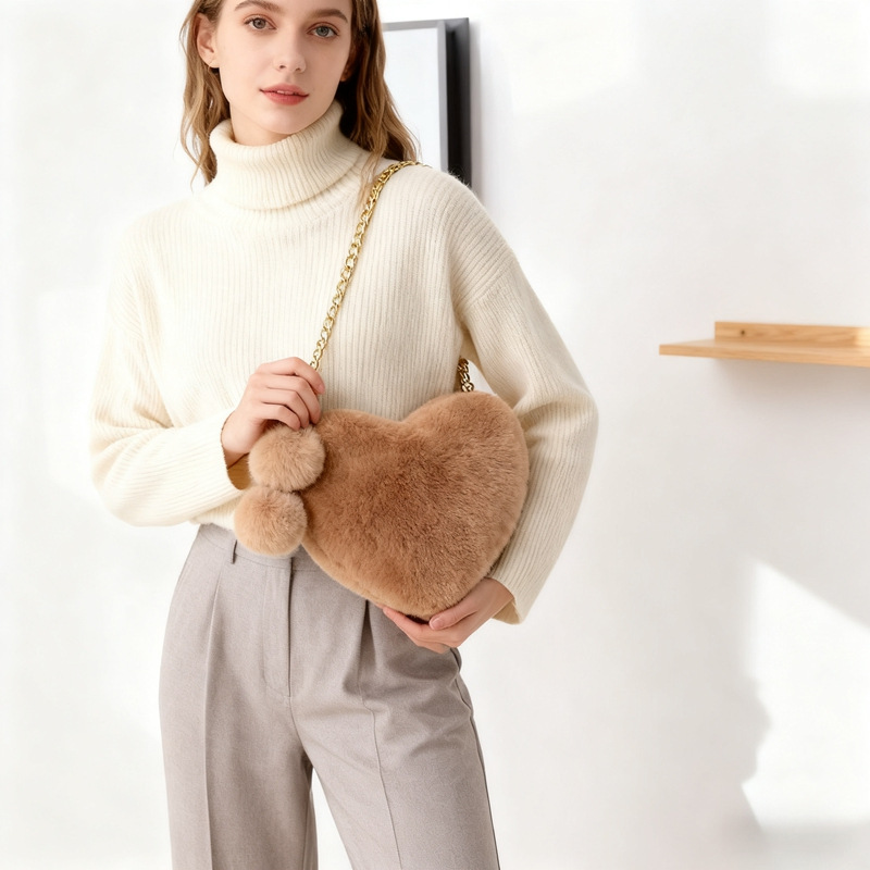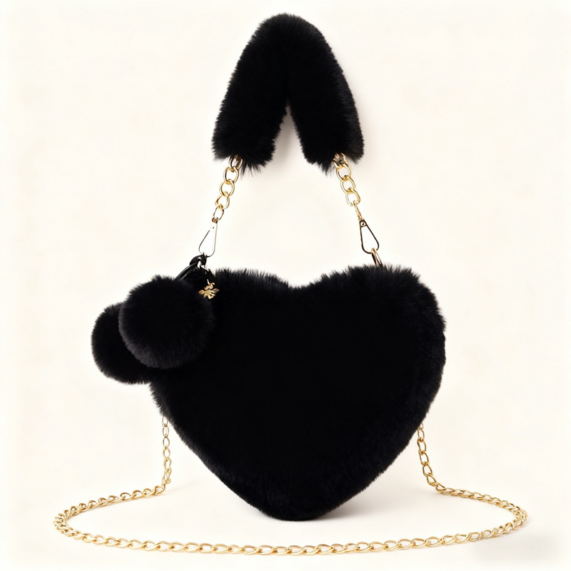 新款手提包毛绒爱心桃心包链条包斜挎包女生外出零钱包百搭单肩包