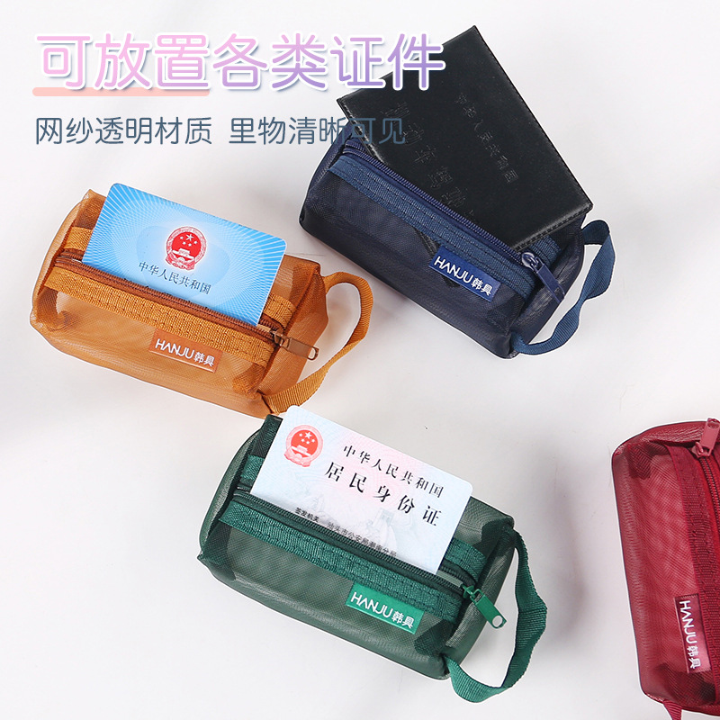 韩具HJ-003网纱手提化妆包女便携式零钱身份证卡包透明收纳袋小包