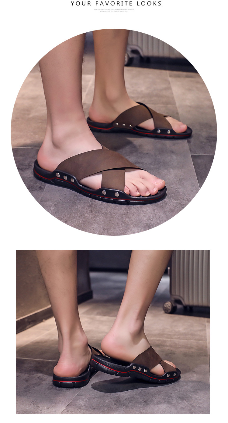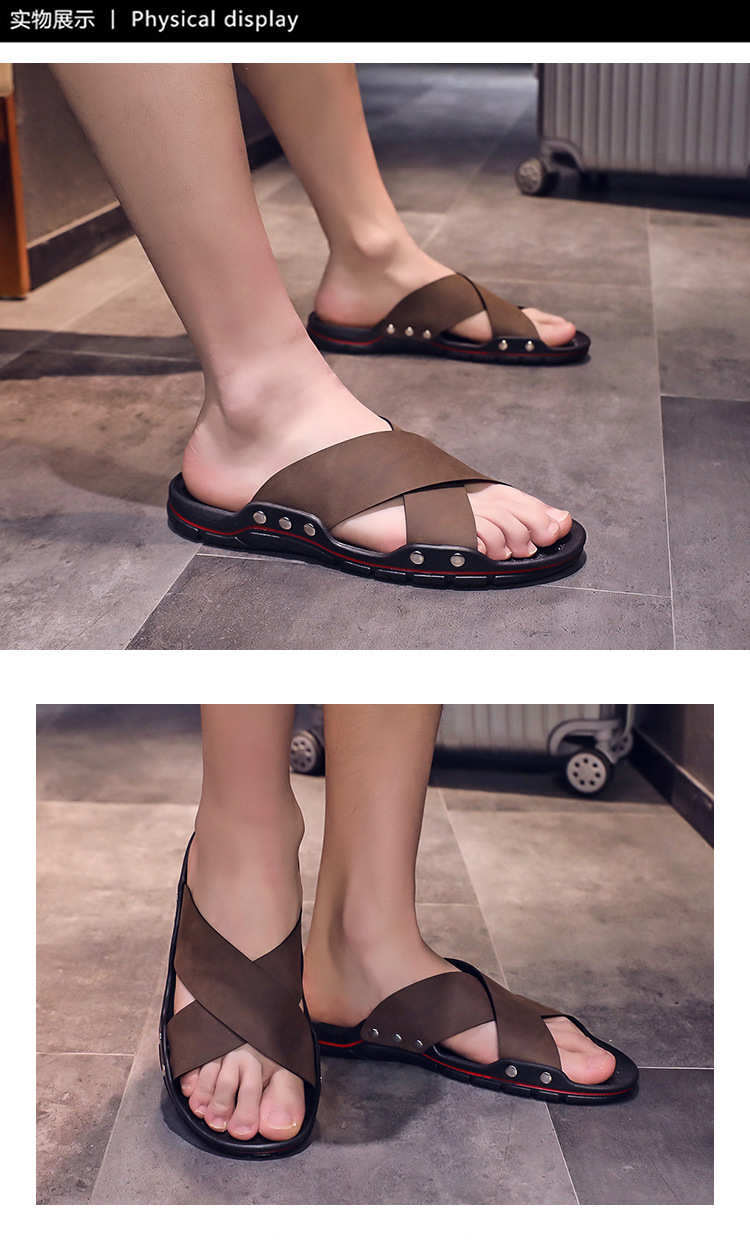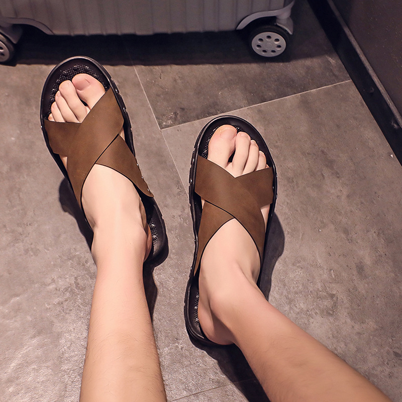 新款一字拖鞋外贸跨境款男士套脚拖鞋防滑户外沙滩凉鞋子青春潮流