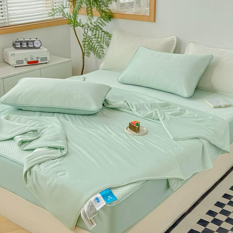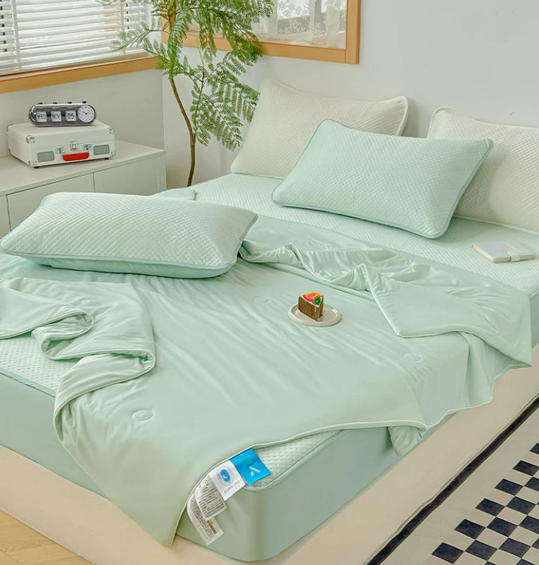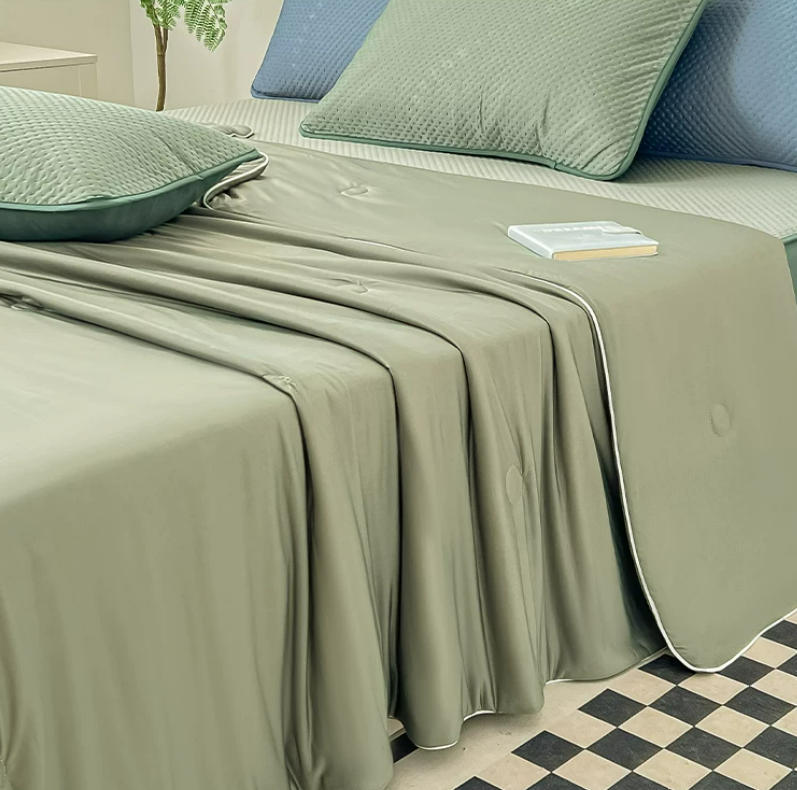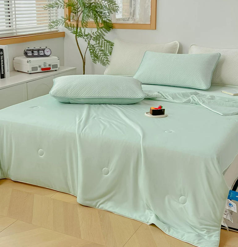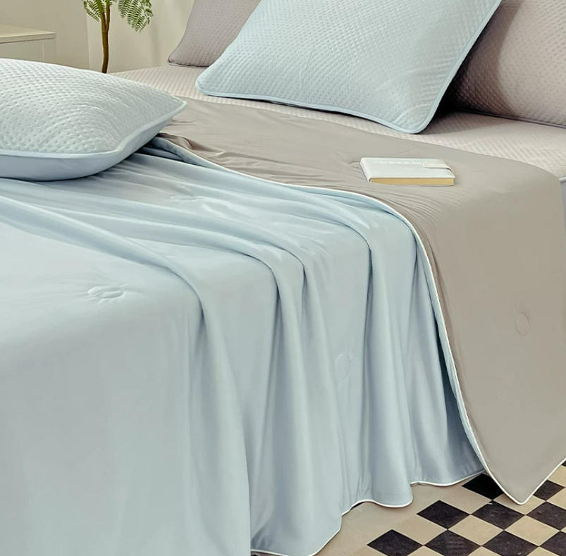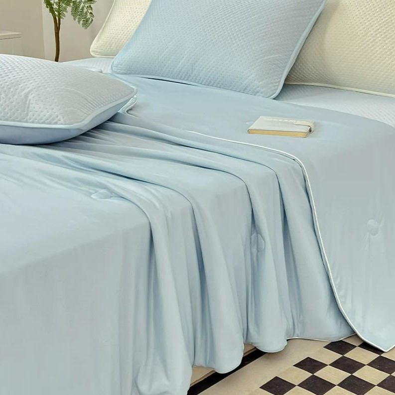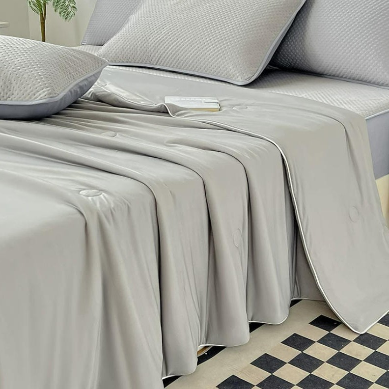 跨境专供锦纶+氨纶A类凉感丝夏凉被空调被冰丝夏被可机洗