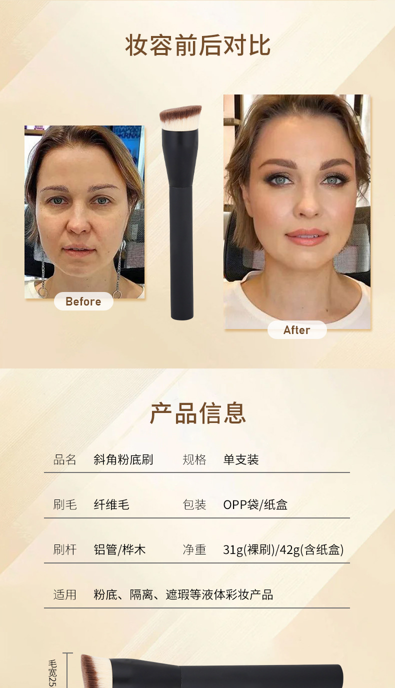 跨境热销170粉底刷平斜头粉底刷遮瑕刷无痕刷面部清洁刷一件代发