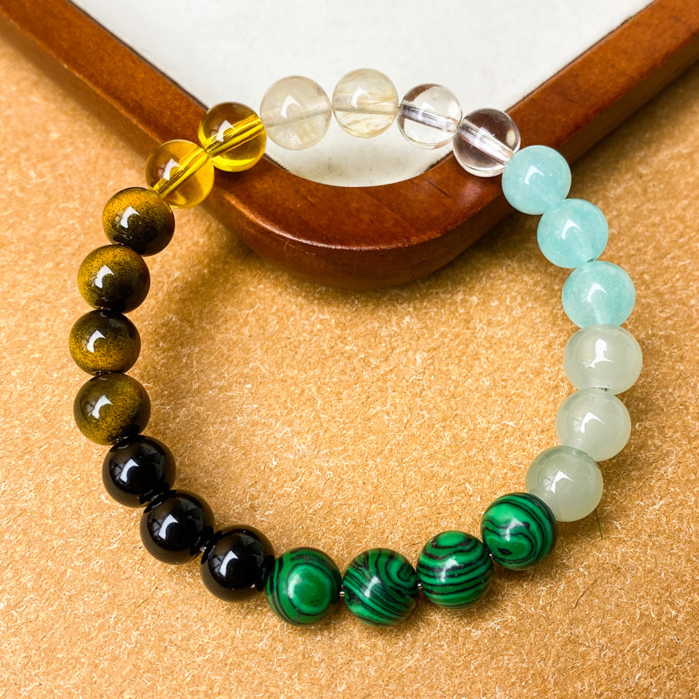 temu希音TK跨境爆款天然绿东陵黄水晶孔雀石虎眼石手链现货批发