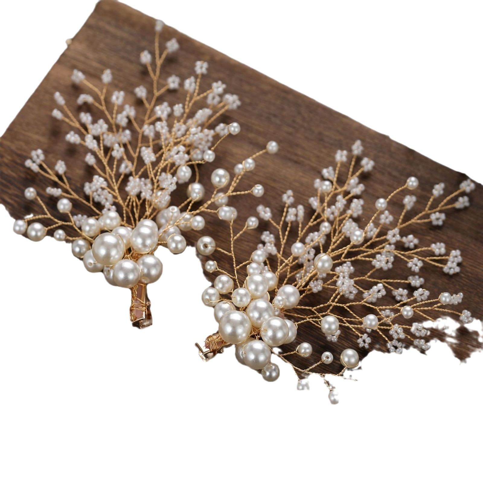 原创新娘结婚头饰精致韩式手工盘发饰品甜美森系边夹简约婚纱配饰