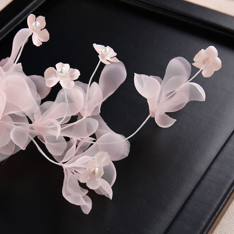 2018新款日韩新娘头饰肉粉色娟纱大头花仙美花朵发饰影楼摆拍饰品