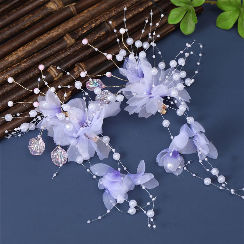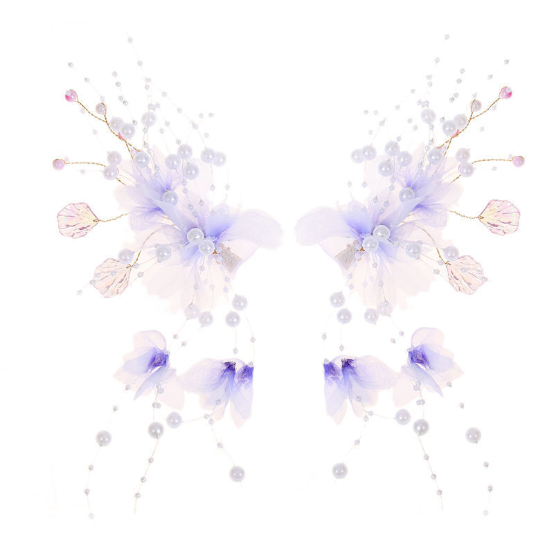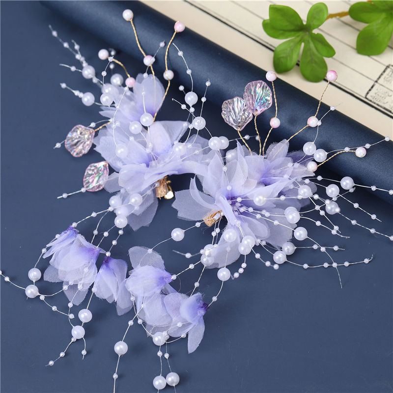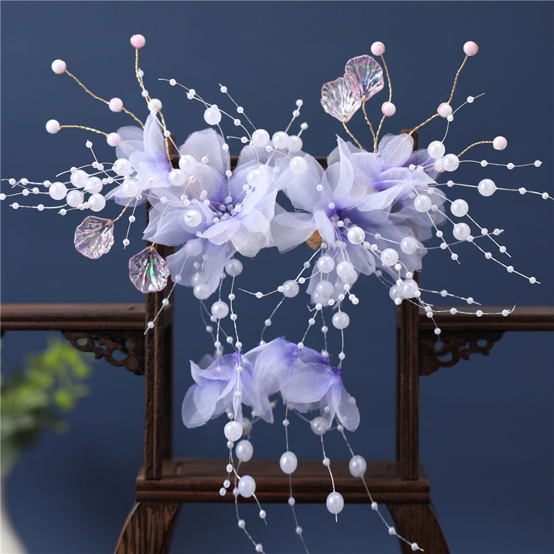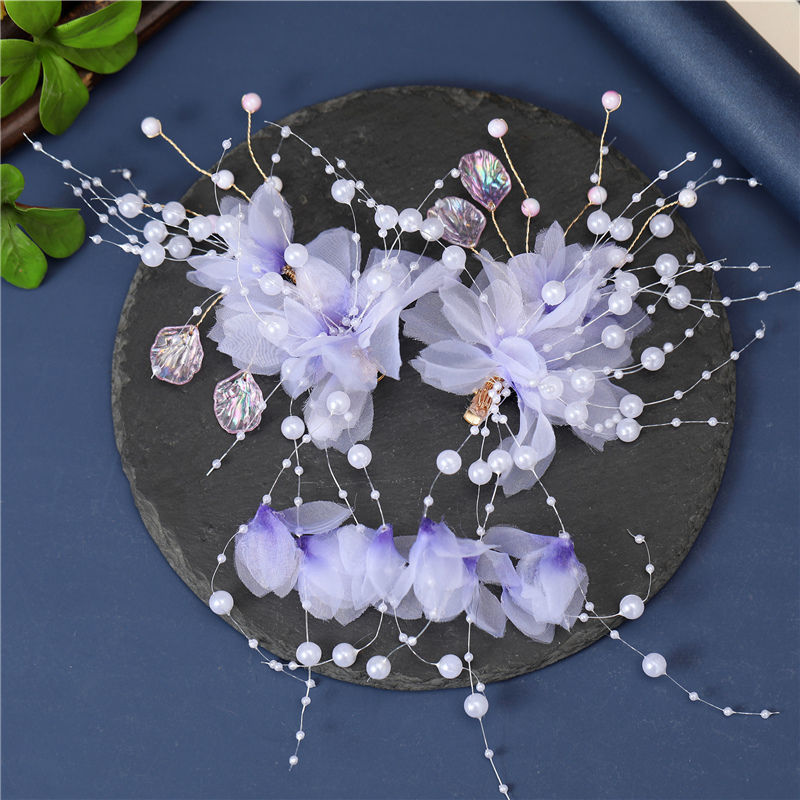 汉服头饰女生古装发型配饰绢花仙气发夹紫色古风步摇发饰对夹配饰