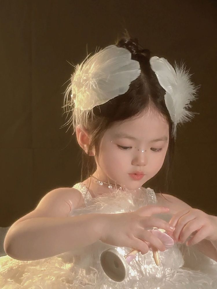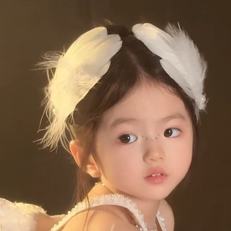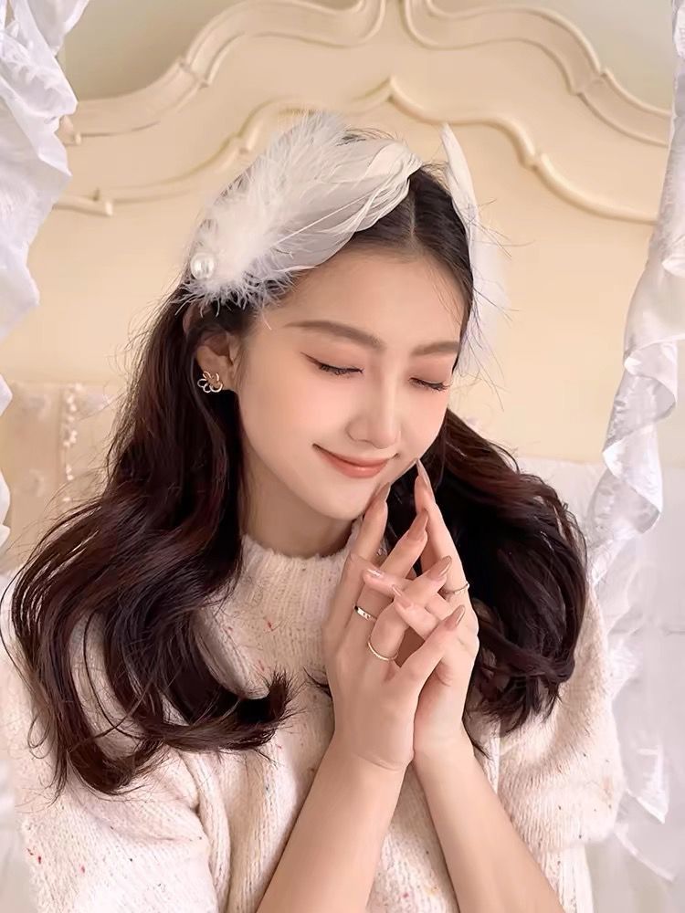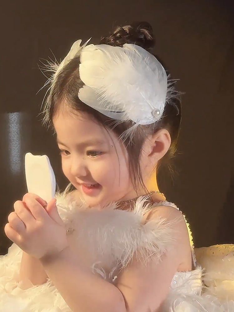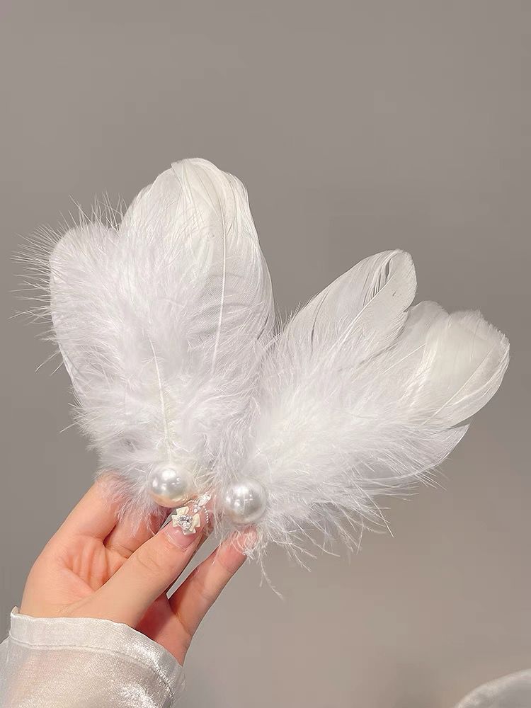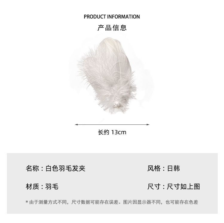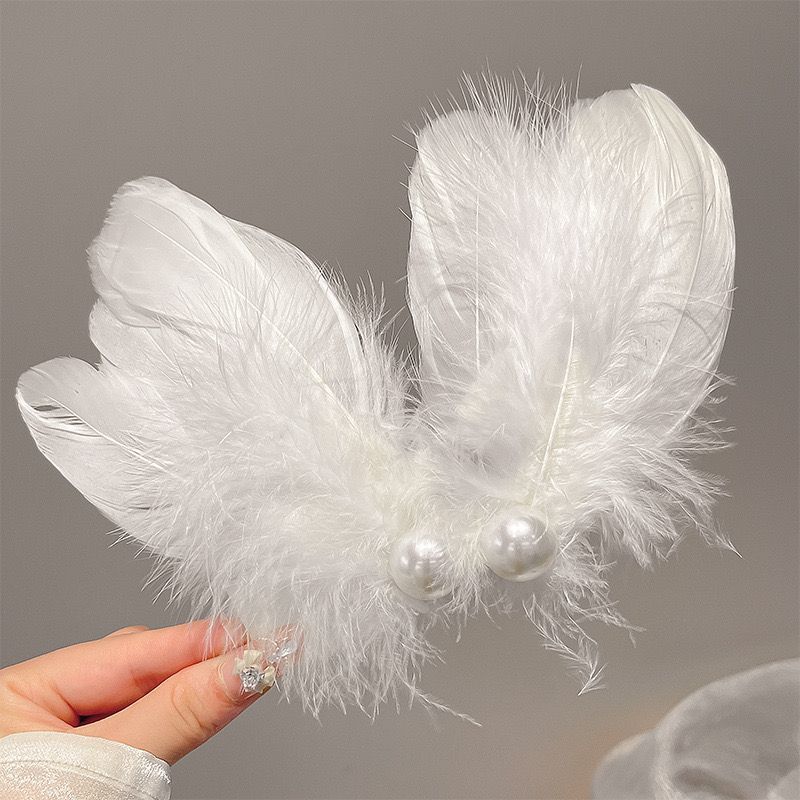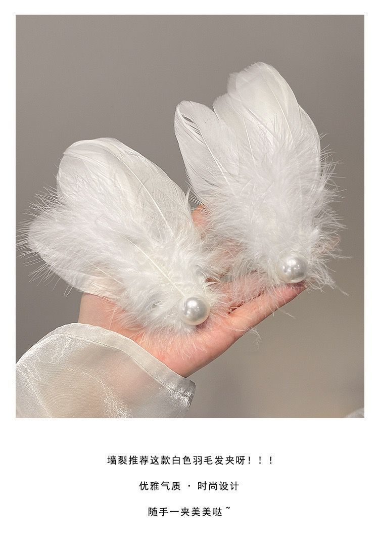 女童夏超仙白色羽毛珍珠发夹精美气质搭配裙子发饰氛围感手作头饰