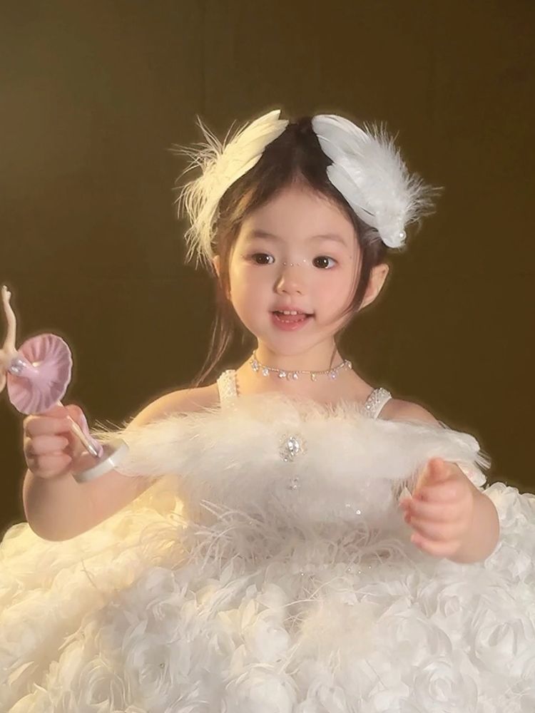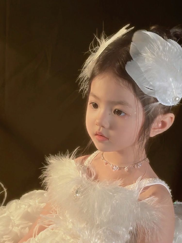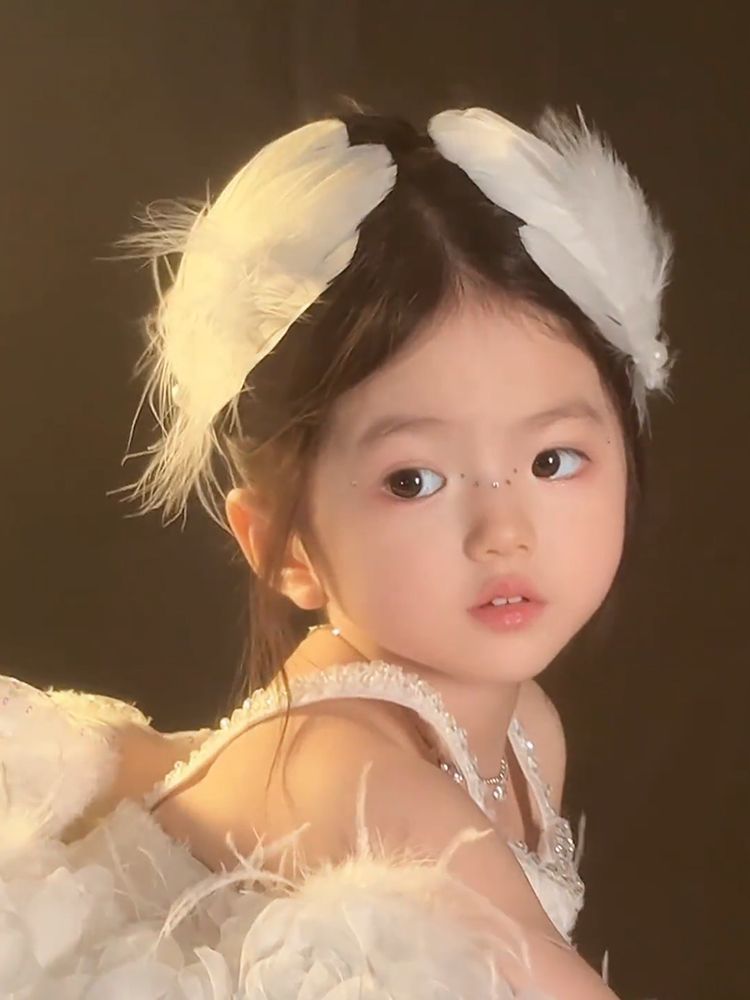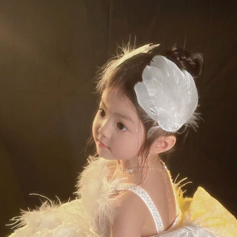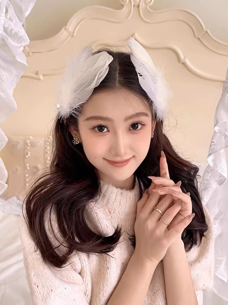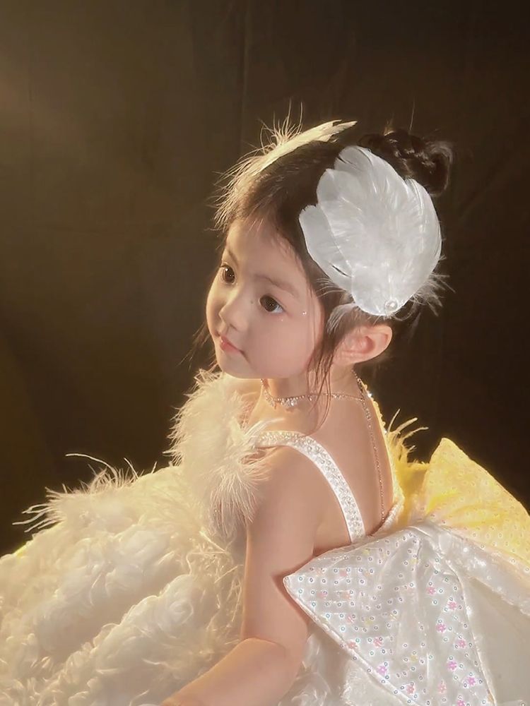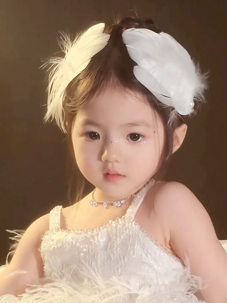 女童夏超仙白色羽毛珍珠发夹精美气质搭配裙子发饰氛围感手作头饰