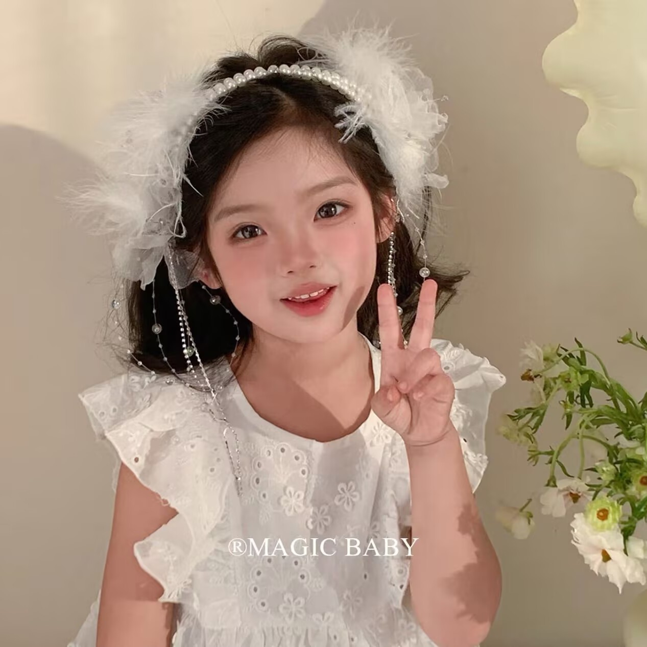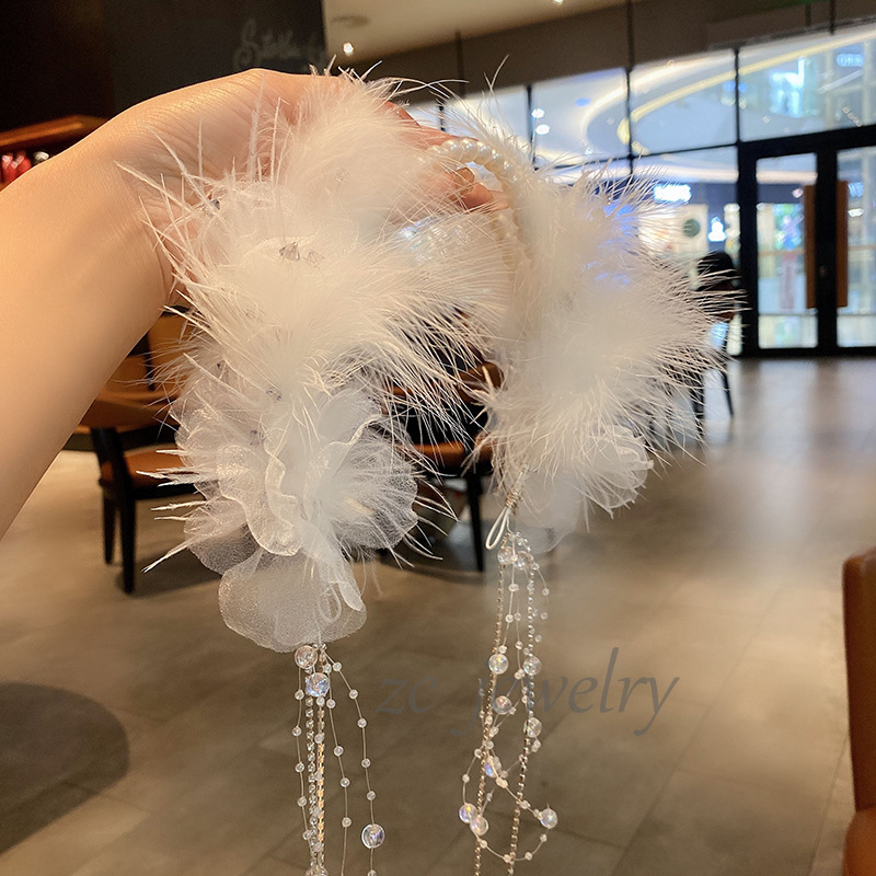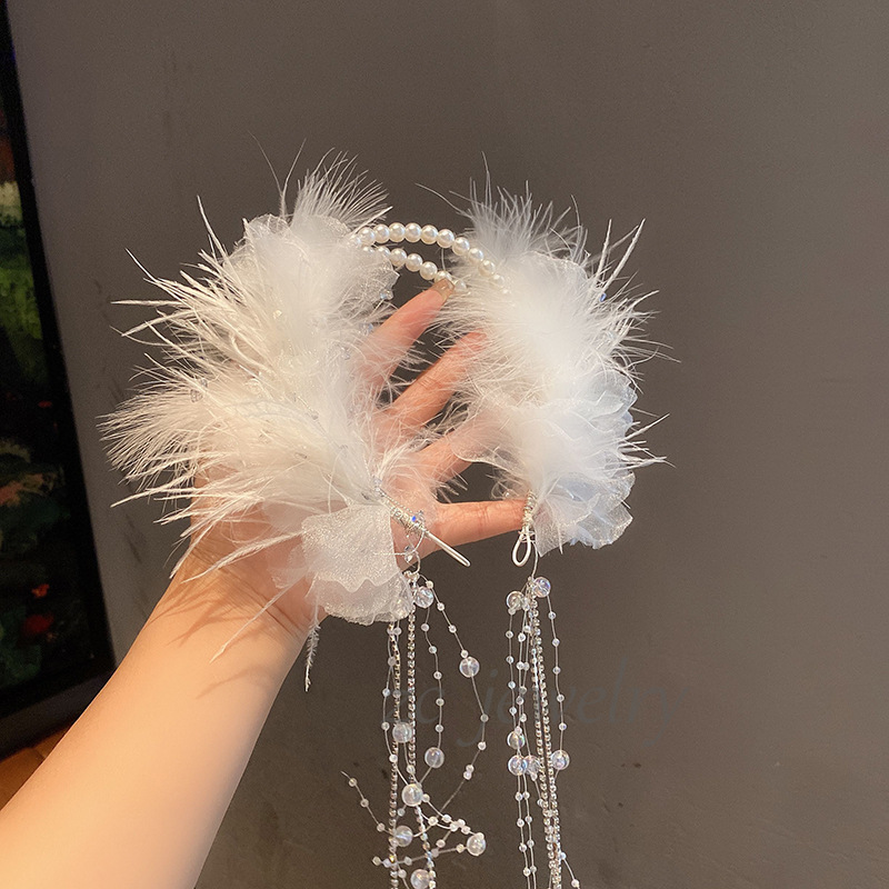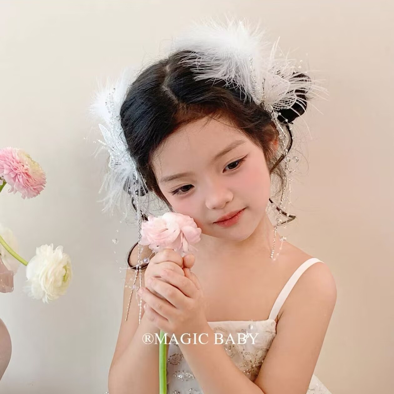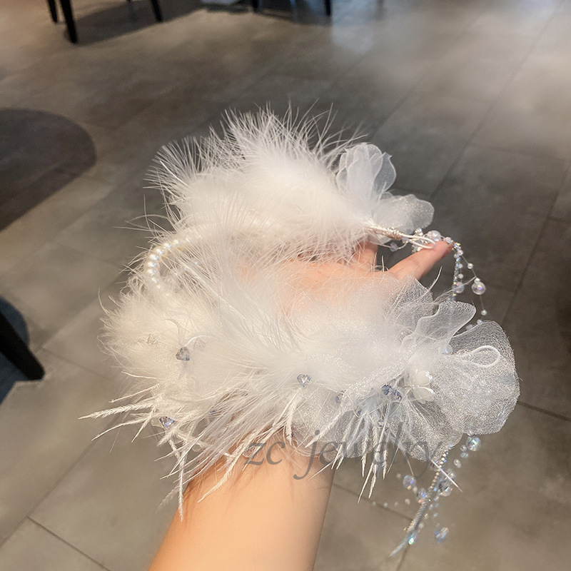 气质灵动闪亮水晶串珠羽毛流苏新娘头花仙气梦幻对夹晨袍跟妆头饰