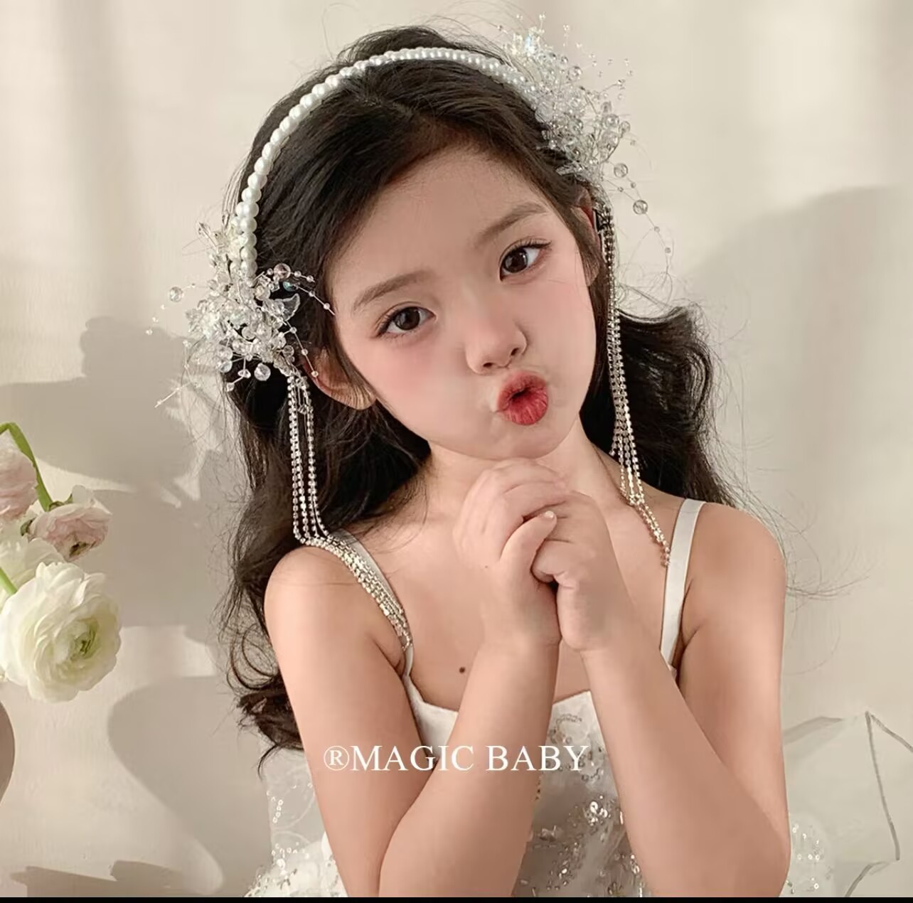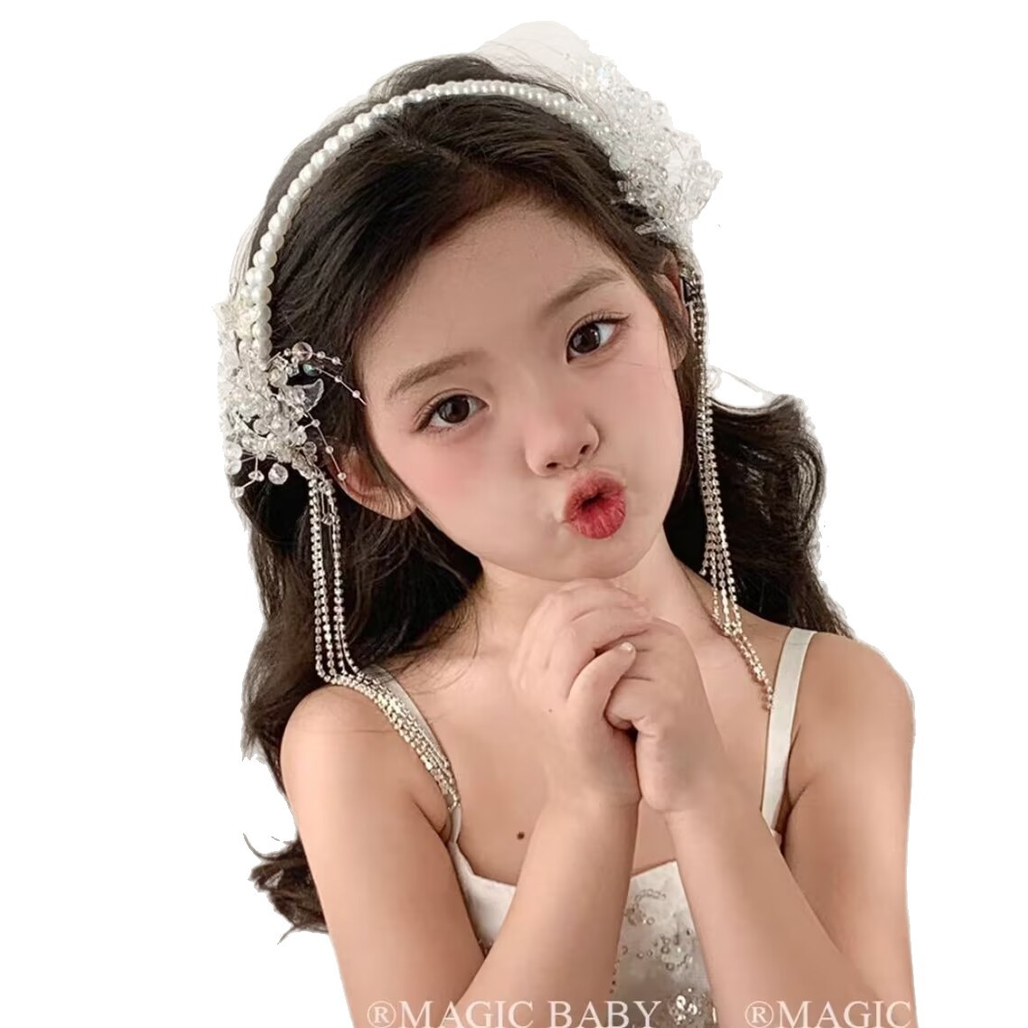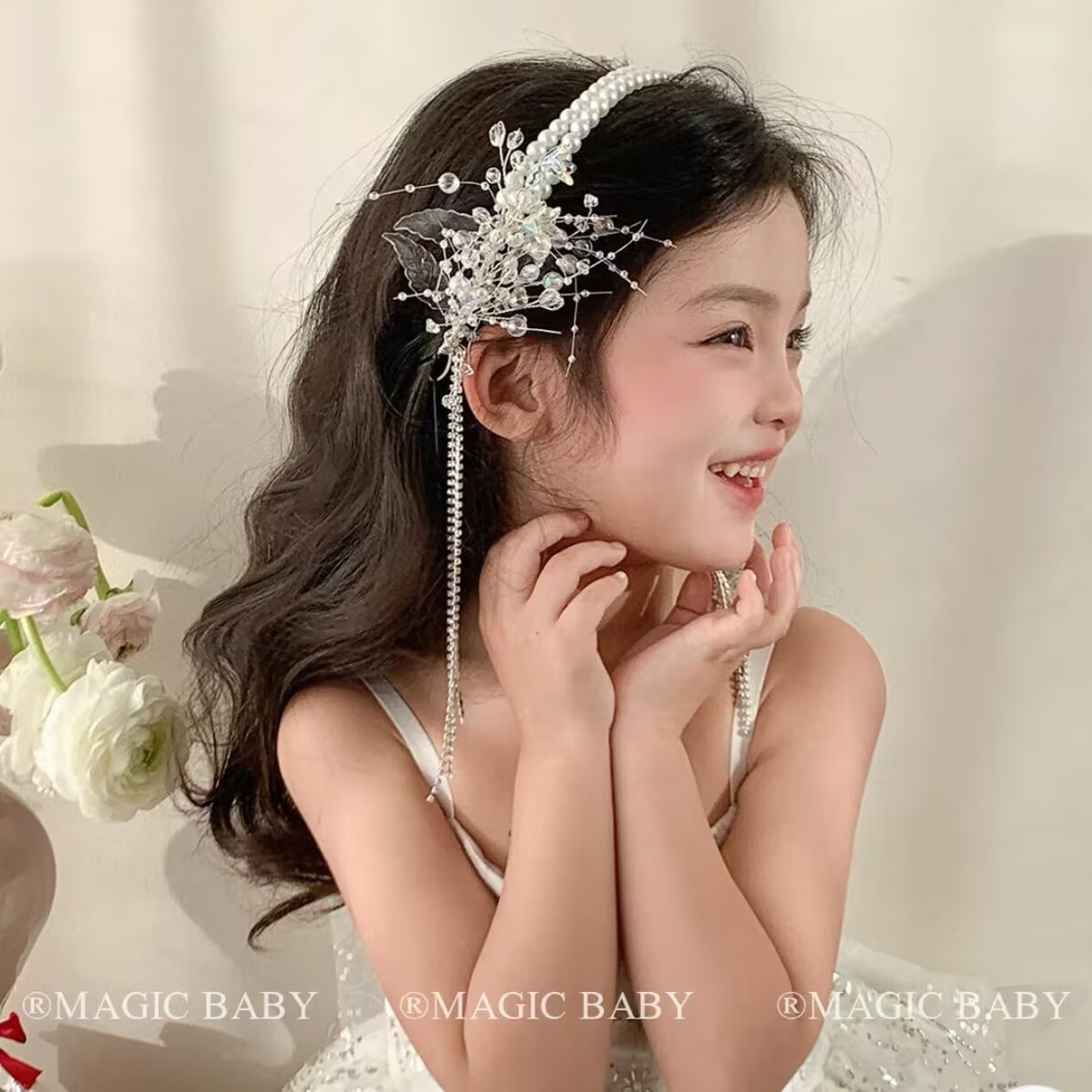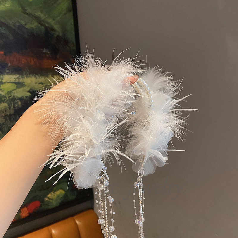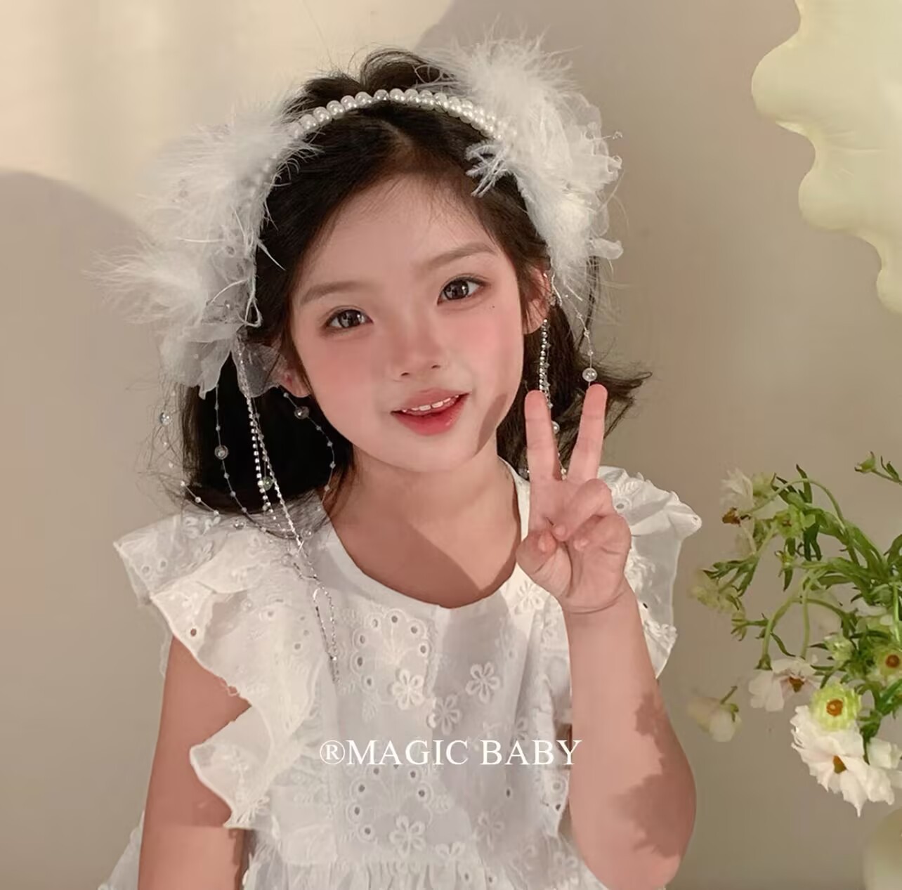气质灵动闪亮水晶串珠羽毛流苏新娘头花仙气梦幻对夹晨袍跟妆头饰