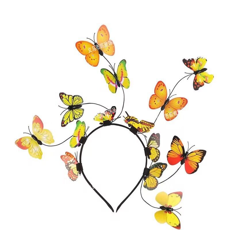 新款儿童婚纱头饰韩式新娘超仙森系仙美花环发箍结婚蝴蝶饰品头箍