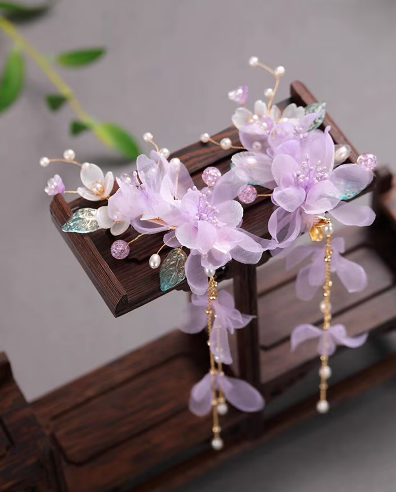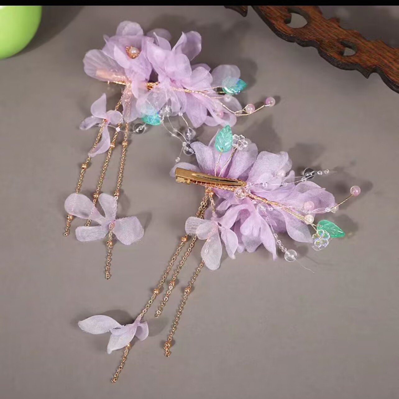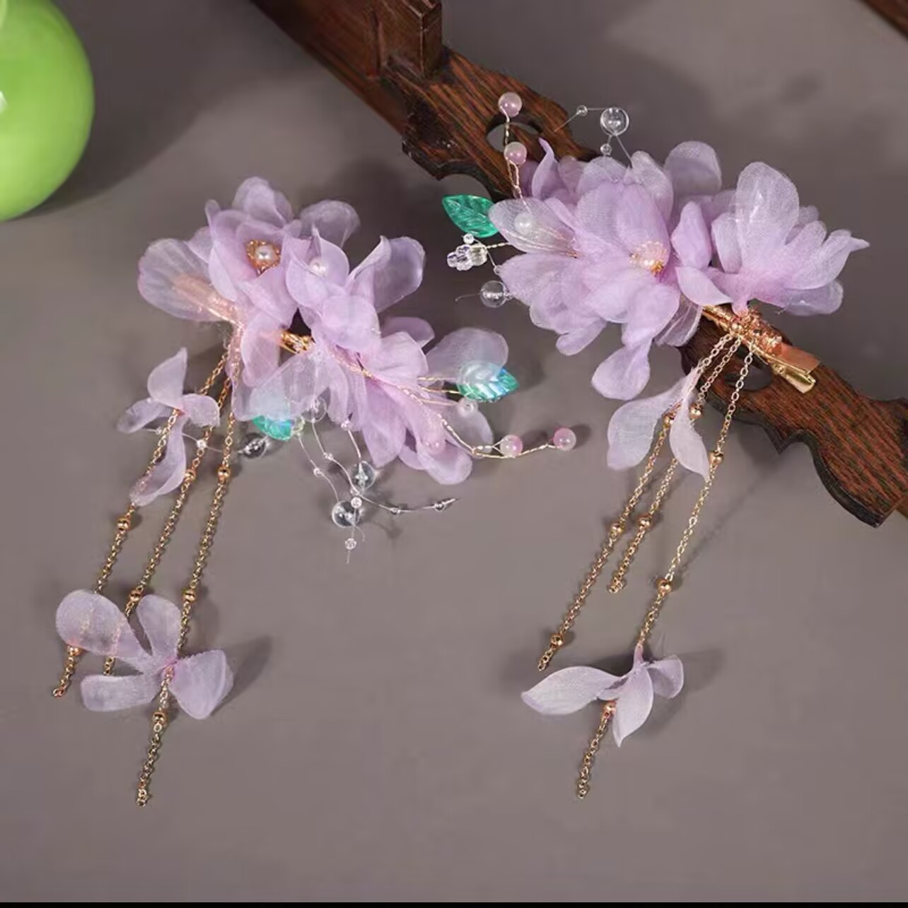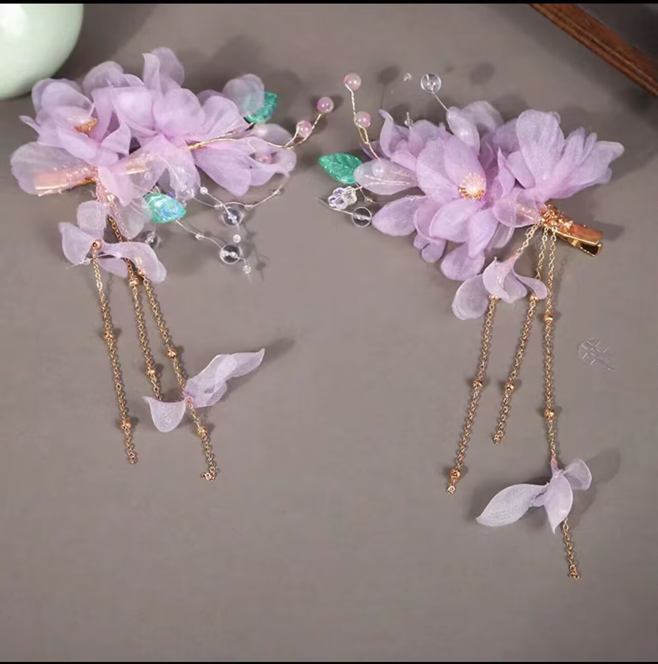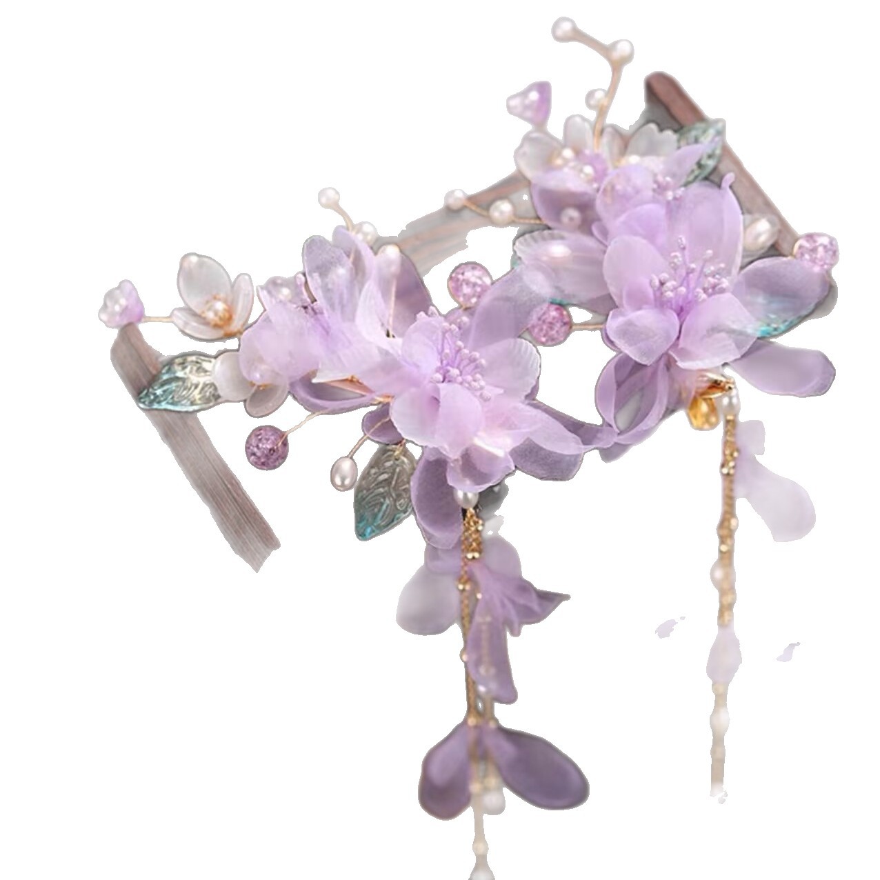贺鹿原创2025年新款绢花头饰汉服发饰发夹紫色烫花古风舞蹈边夹
