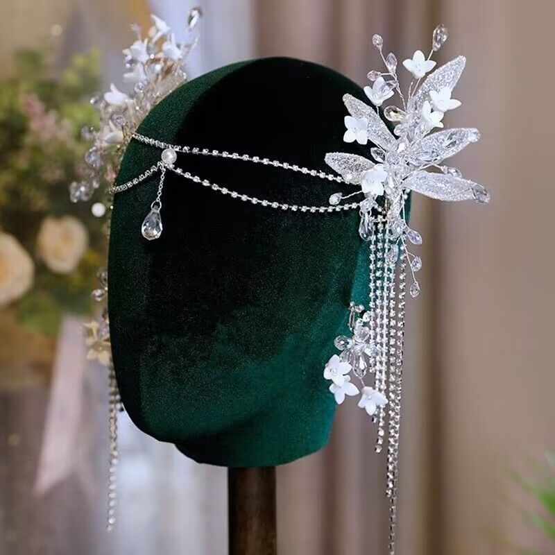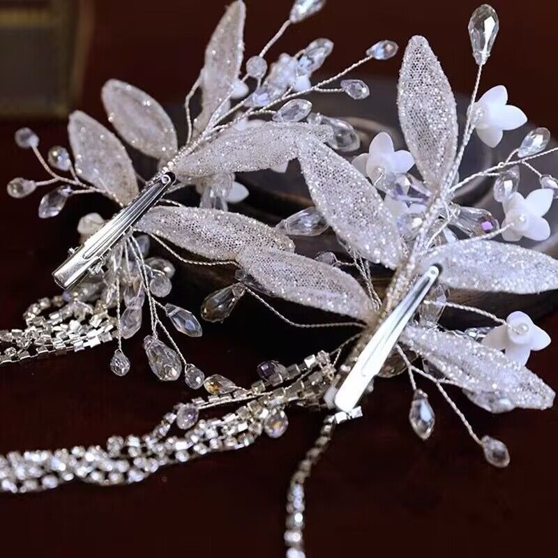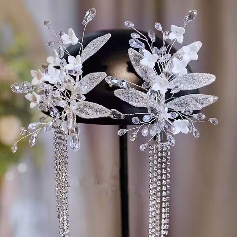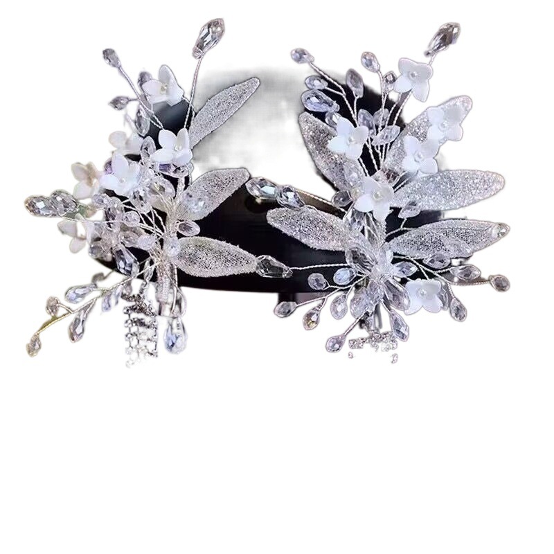 唯美新娘结婚礼服白纱发夹日韩森系水晶花朵边夹婚礼跟妆对夹发饰
