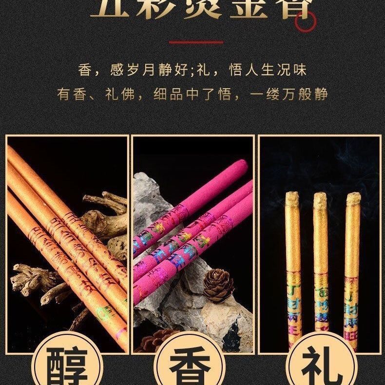 | golden lettered incense stick, 46cm long, 10mm thick.(显字金香46cm长10厘粗) | USD $3.34 | 121 piece available |