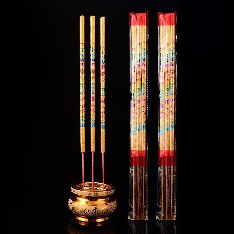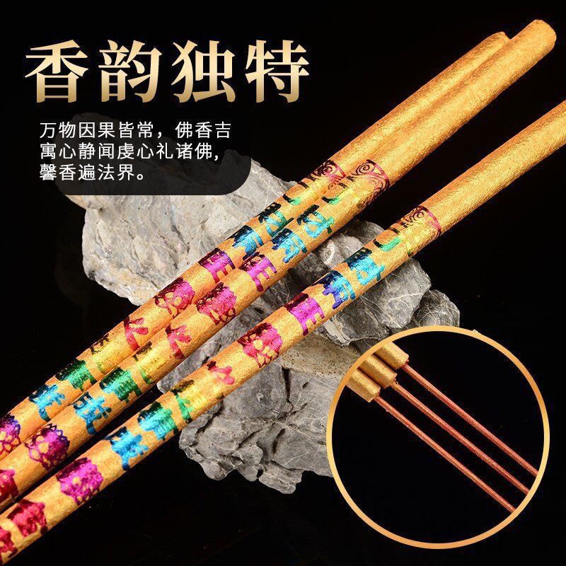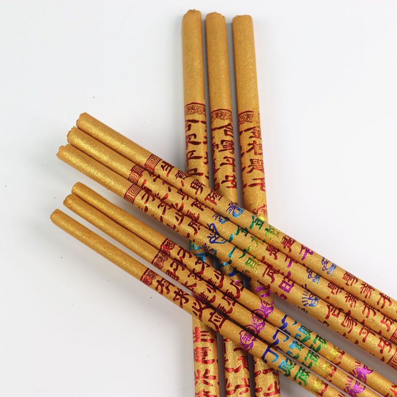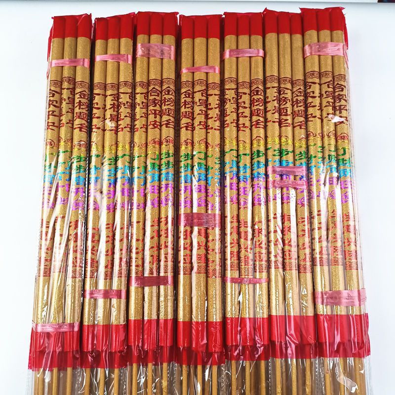 | golden lettered incense stick, 46cm long, 10mm thick.(显字金香46cm长10厘粗) | USD $3.63 | 816 piece available |