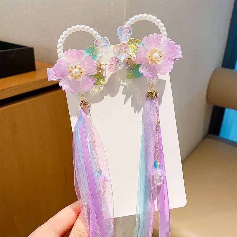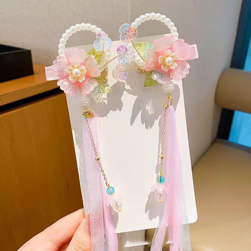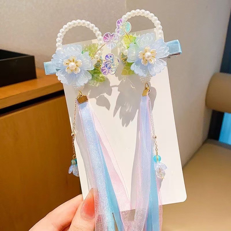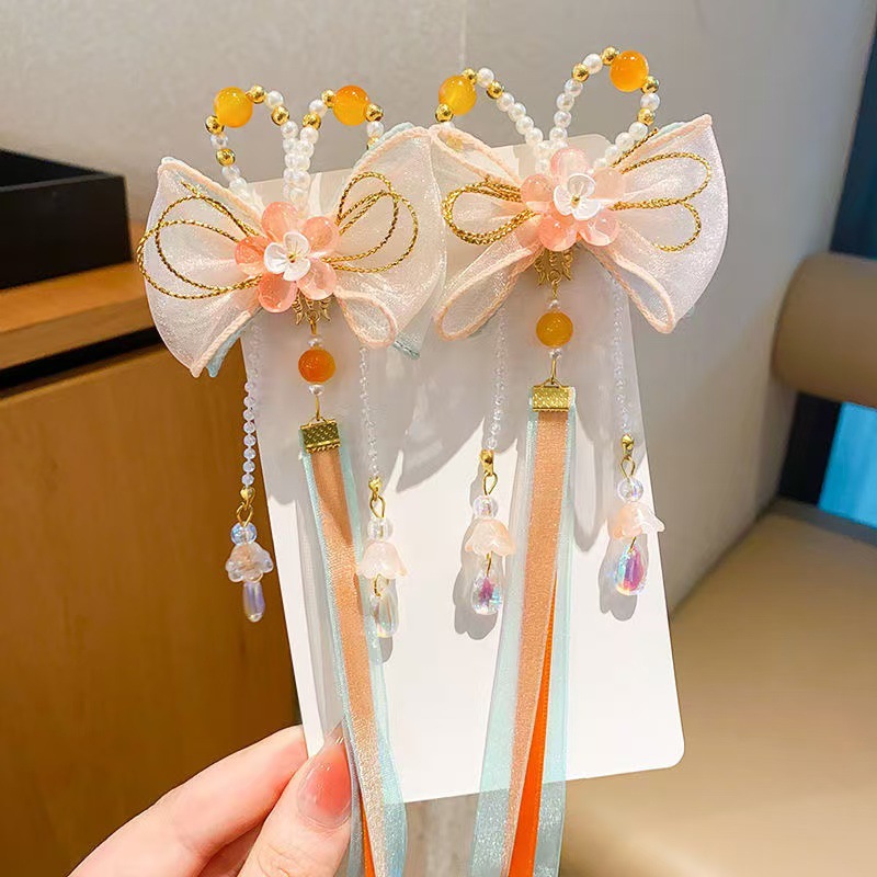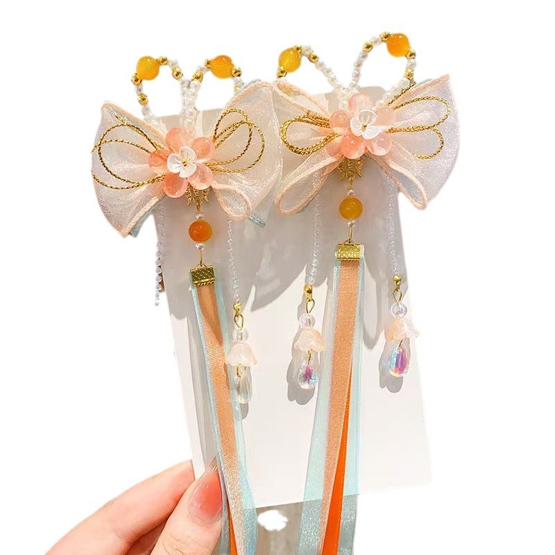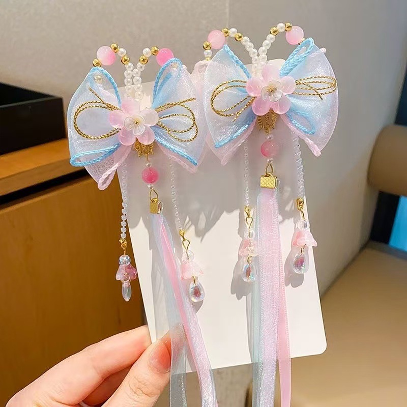 儿童古风蝴蝶结汉服头饰可爱彩色流苏飘带中国风超仙花朵发饰发夹