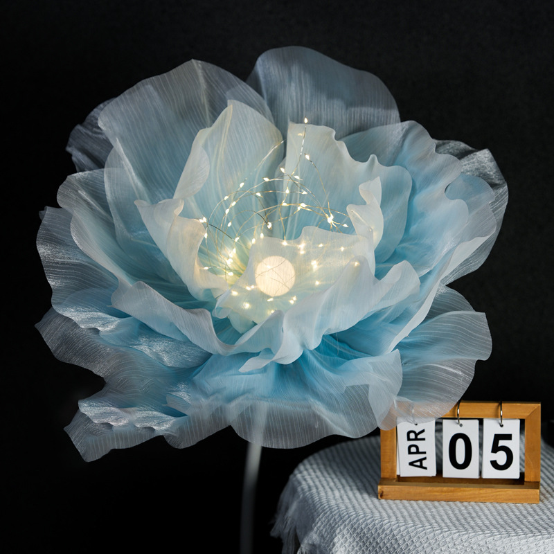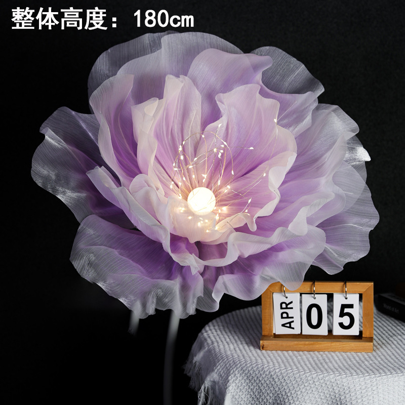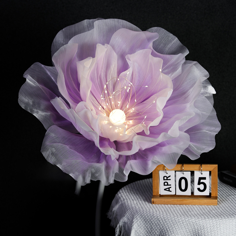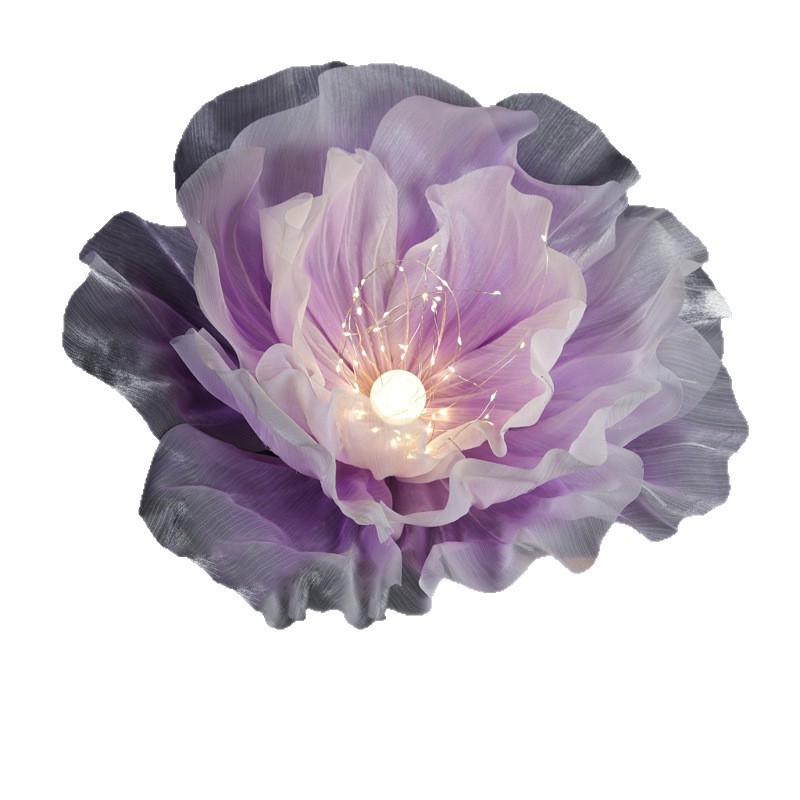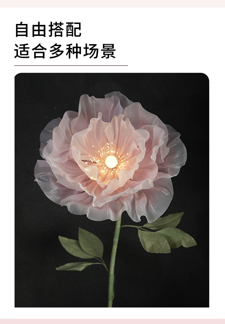 新款欧根纱仿真花摄影道具带灯花道具场景布置装饰假花欧根纱花