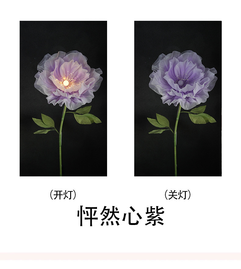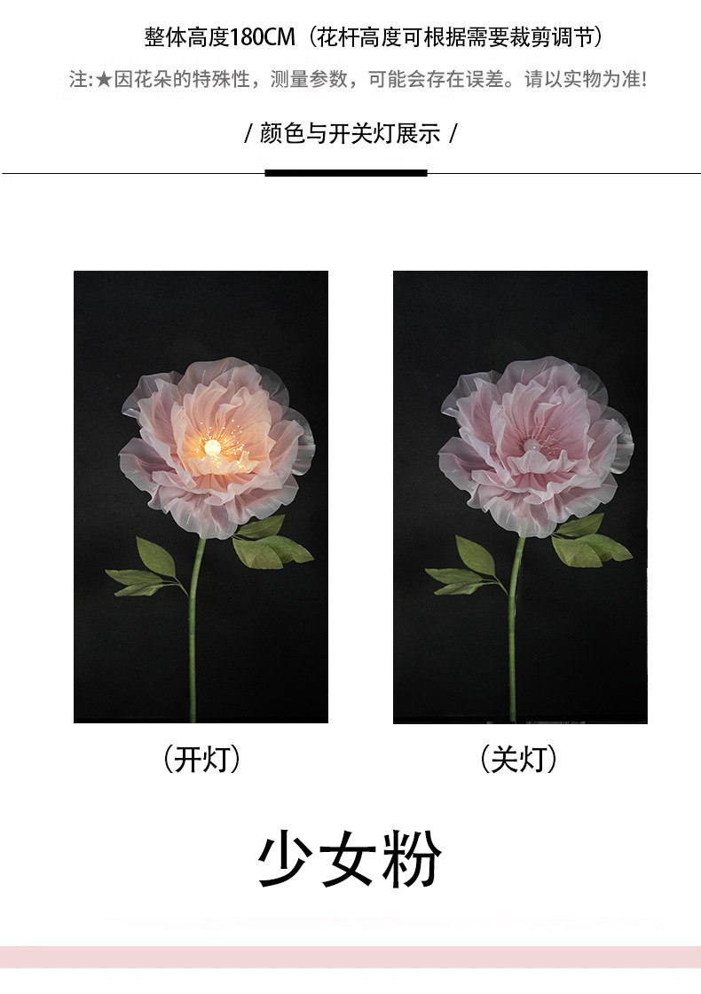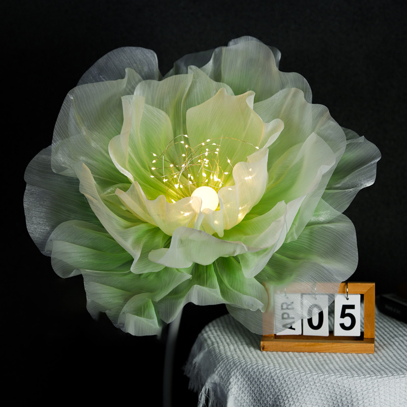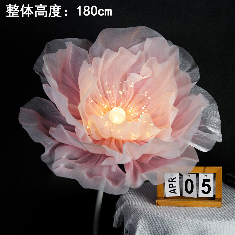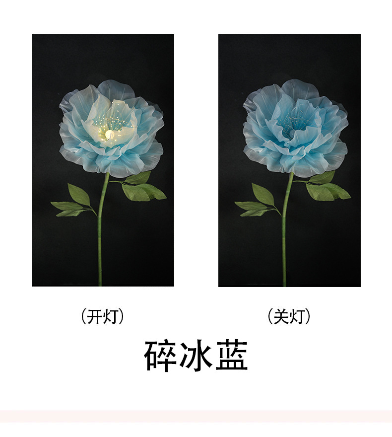 新款欧根纱仿真花摄影道具带灯花道具场景布置装饰假花欧根纱花