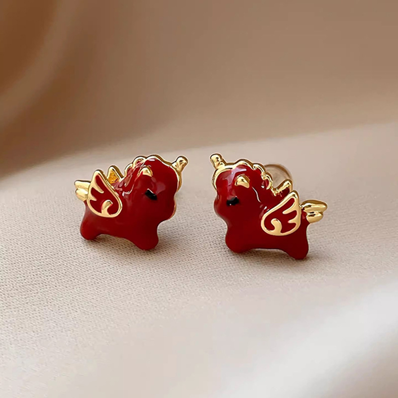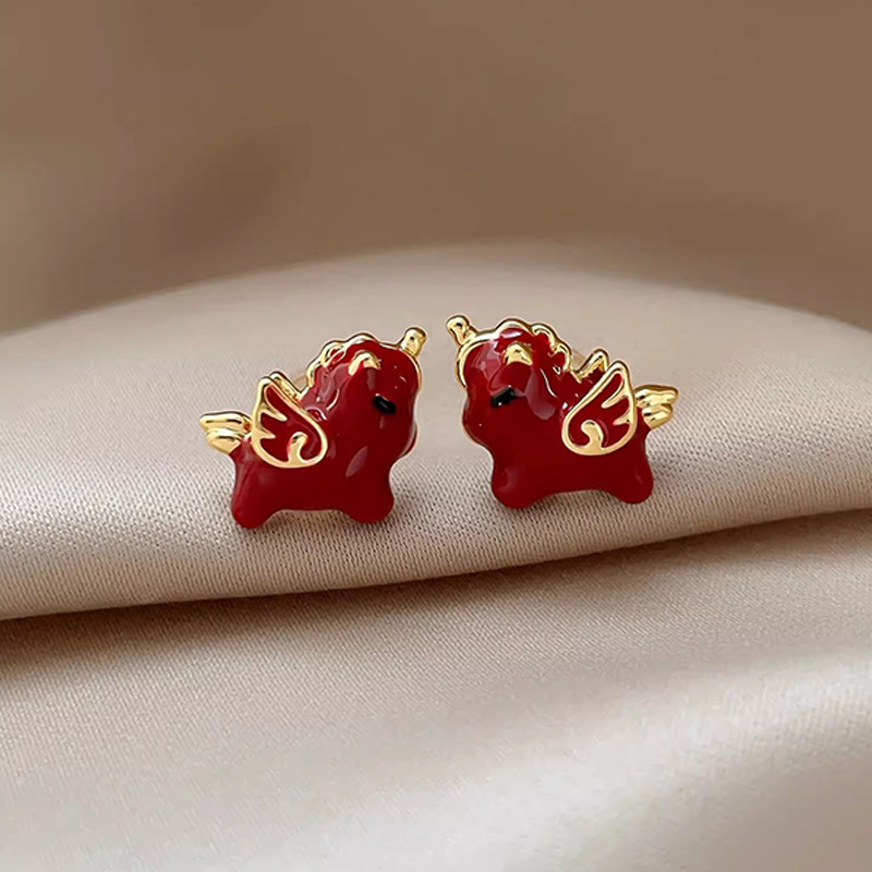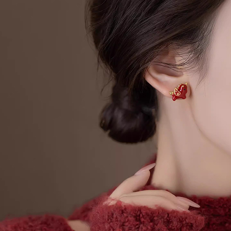 S925纯银针红色小马耳钉女2026年爆款耳饰秋冬高级感本命年耳环