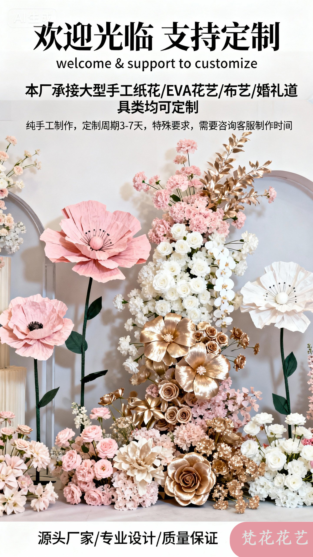 大型仿真花电动机械开合花婚礼场景布置摄影装饰道具珠光纱花