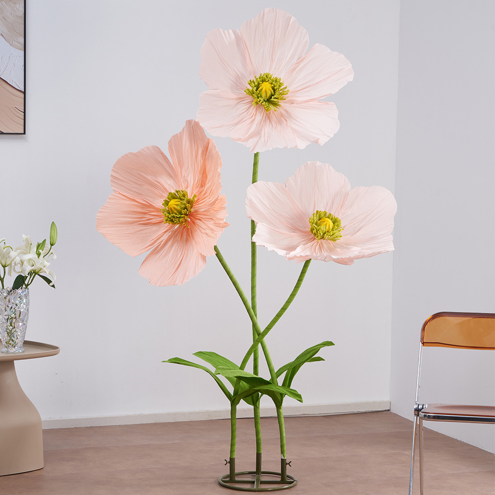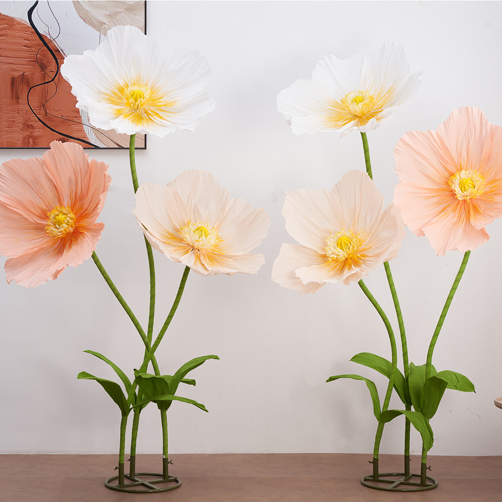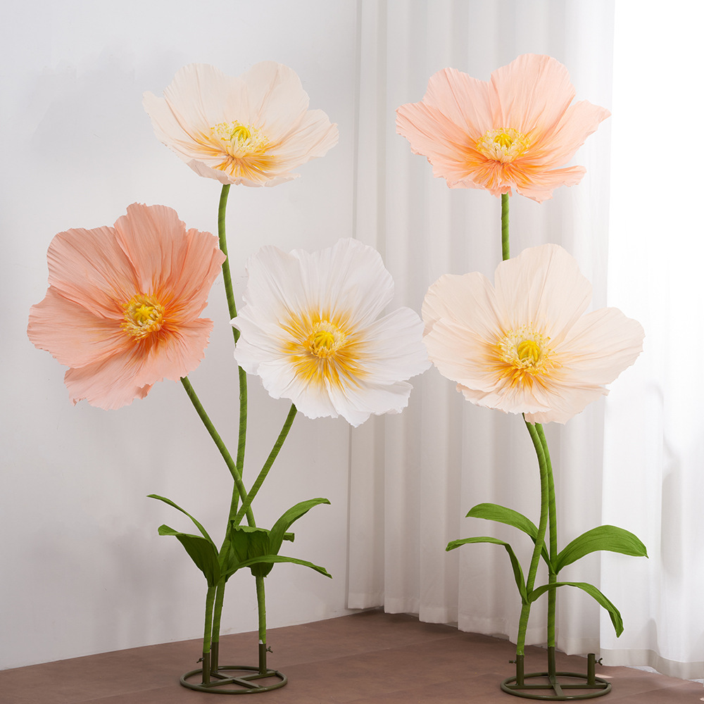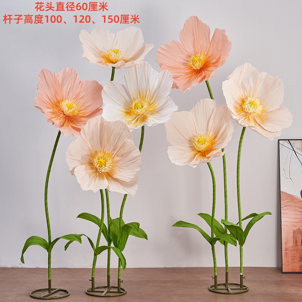 皱纹纸虞美人巨型纸艺花结婚现场装饰婚礼美陈商场活动布置仿真花