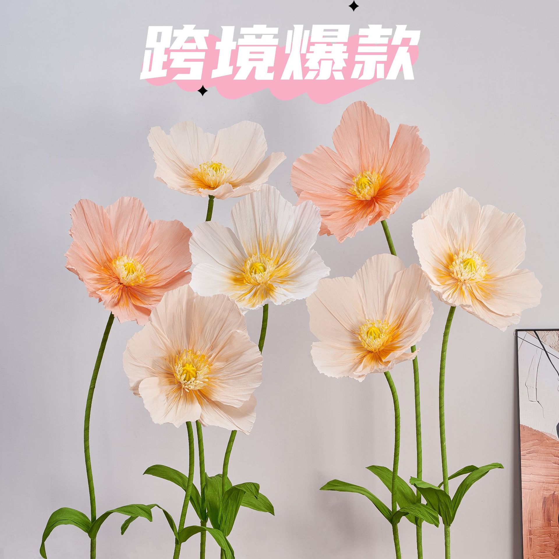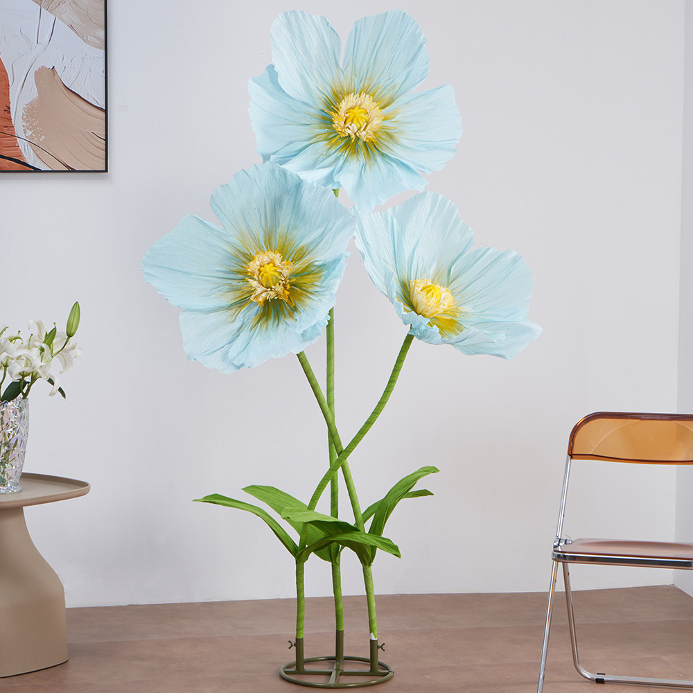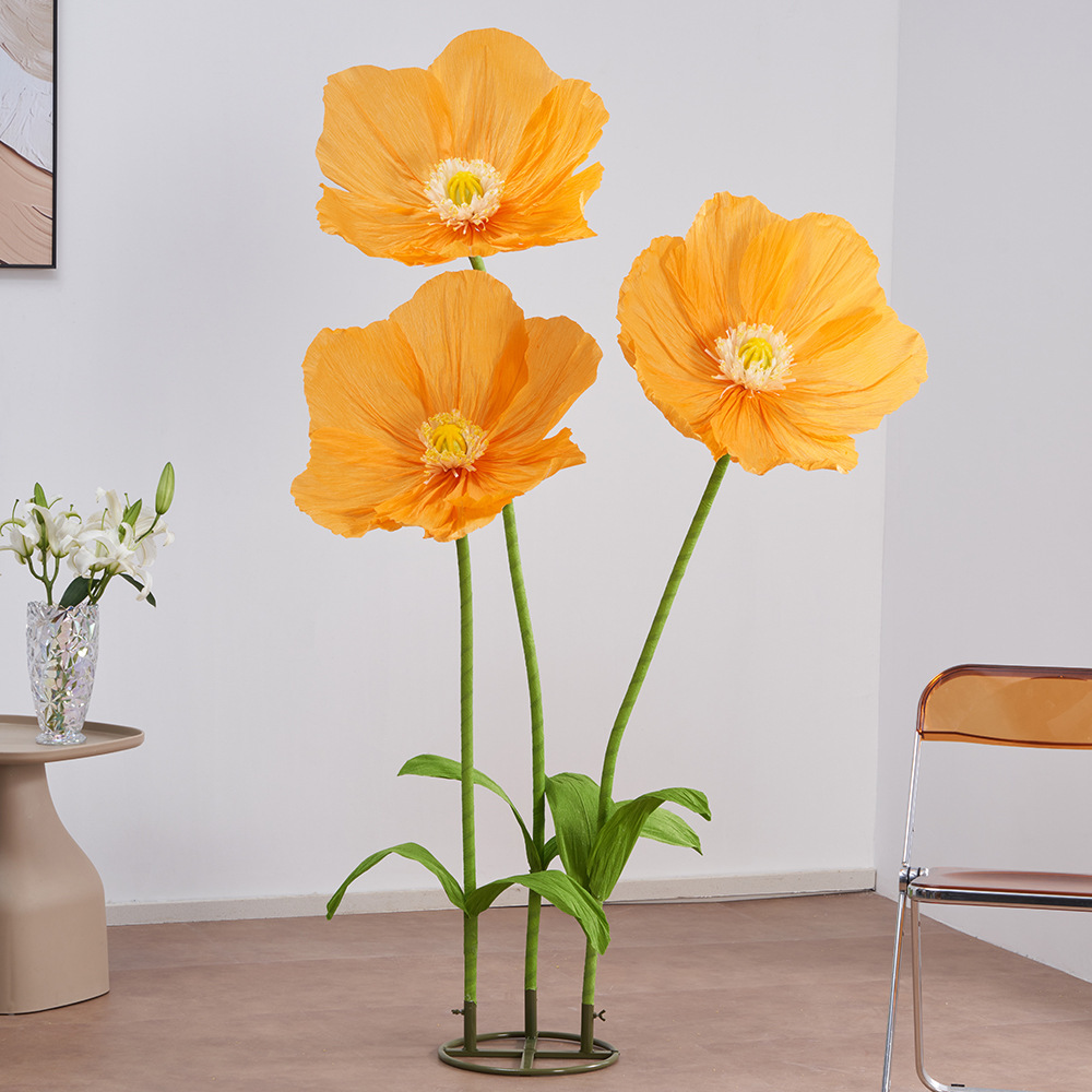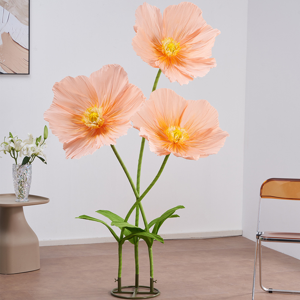 皱纹纸虞美人巨型纸艺花结婚现场装饰婚礼美陈商场活动布置仿真花