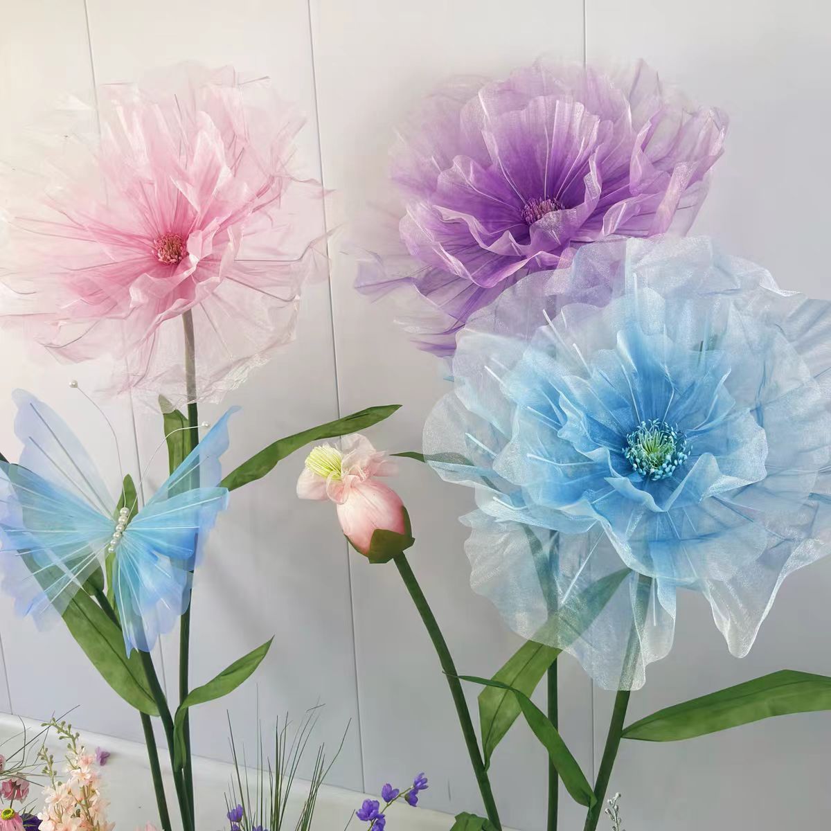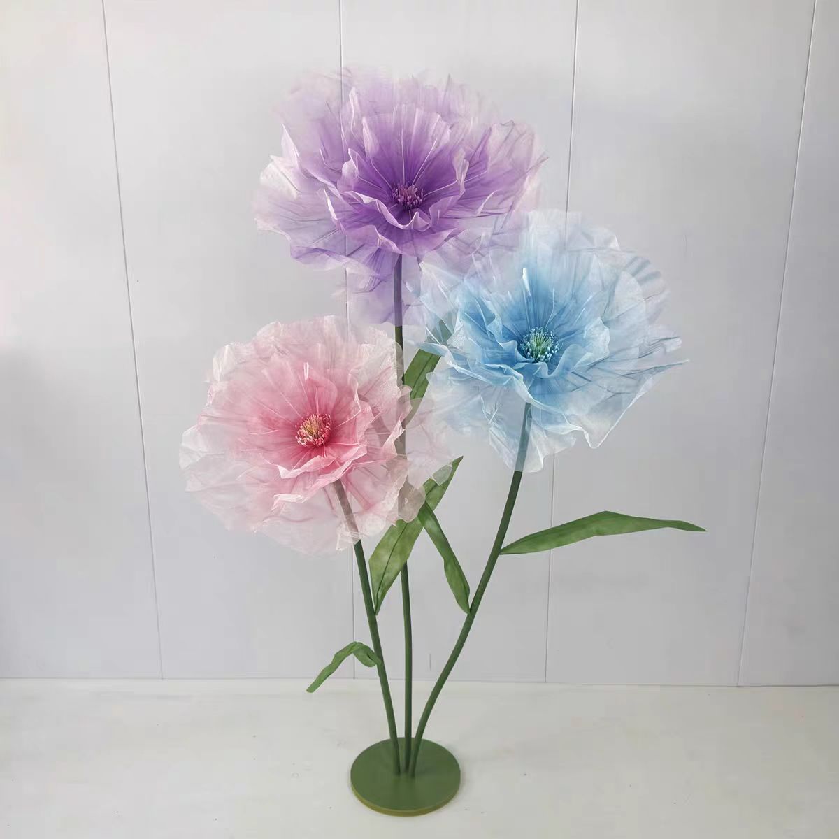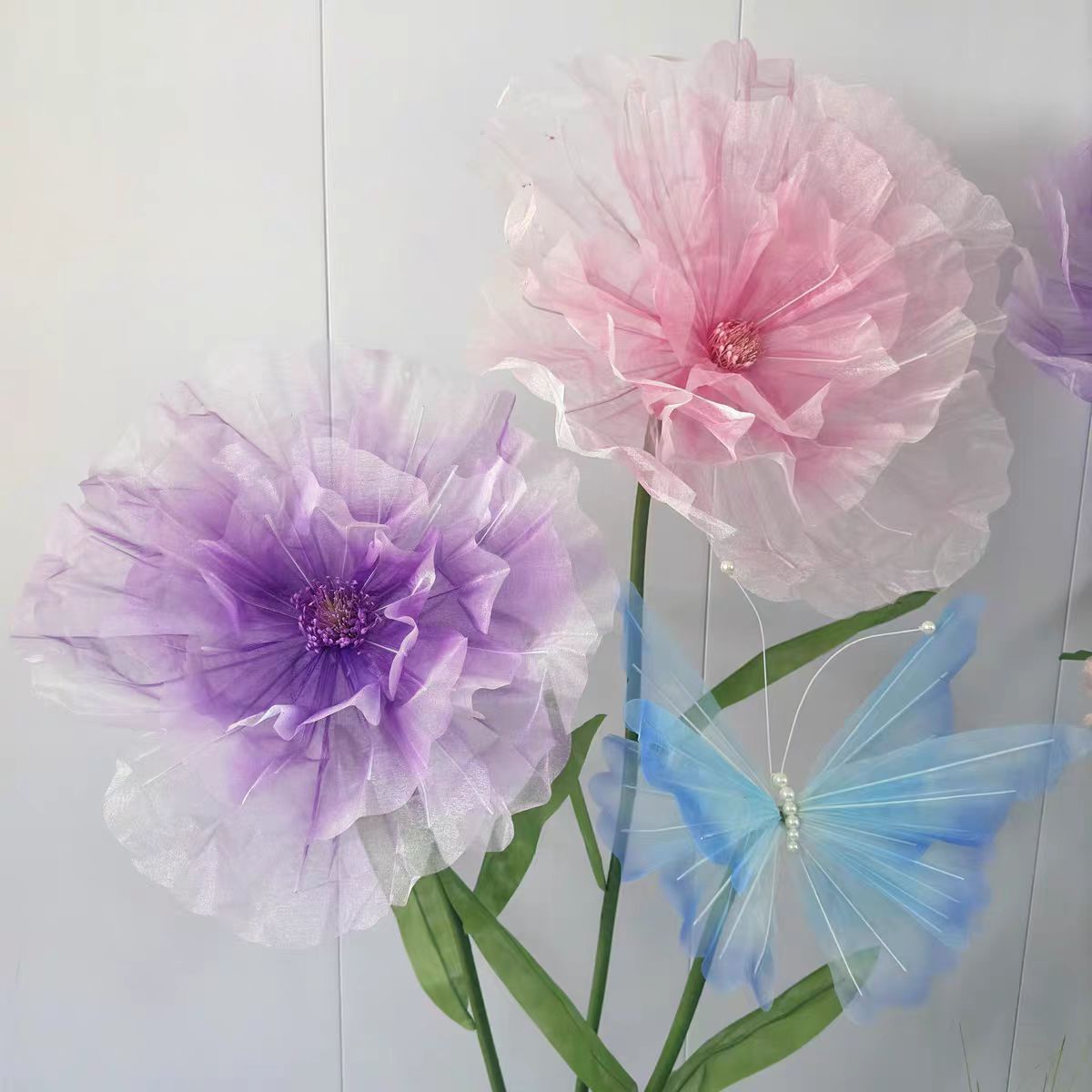 户外丝网花艺美陈橱窗装饰假花艺摆件大型网红丝网花芍药花仿真花