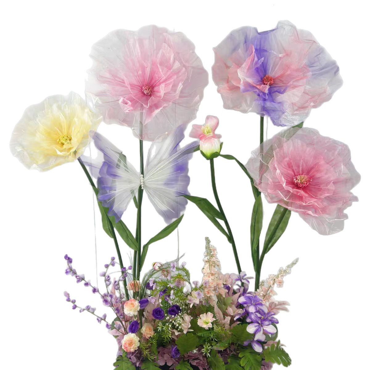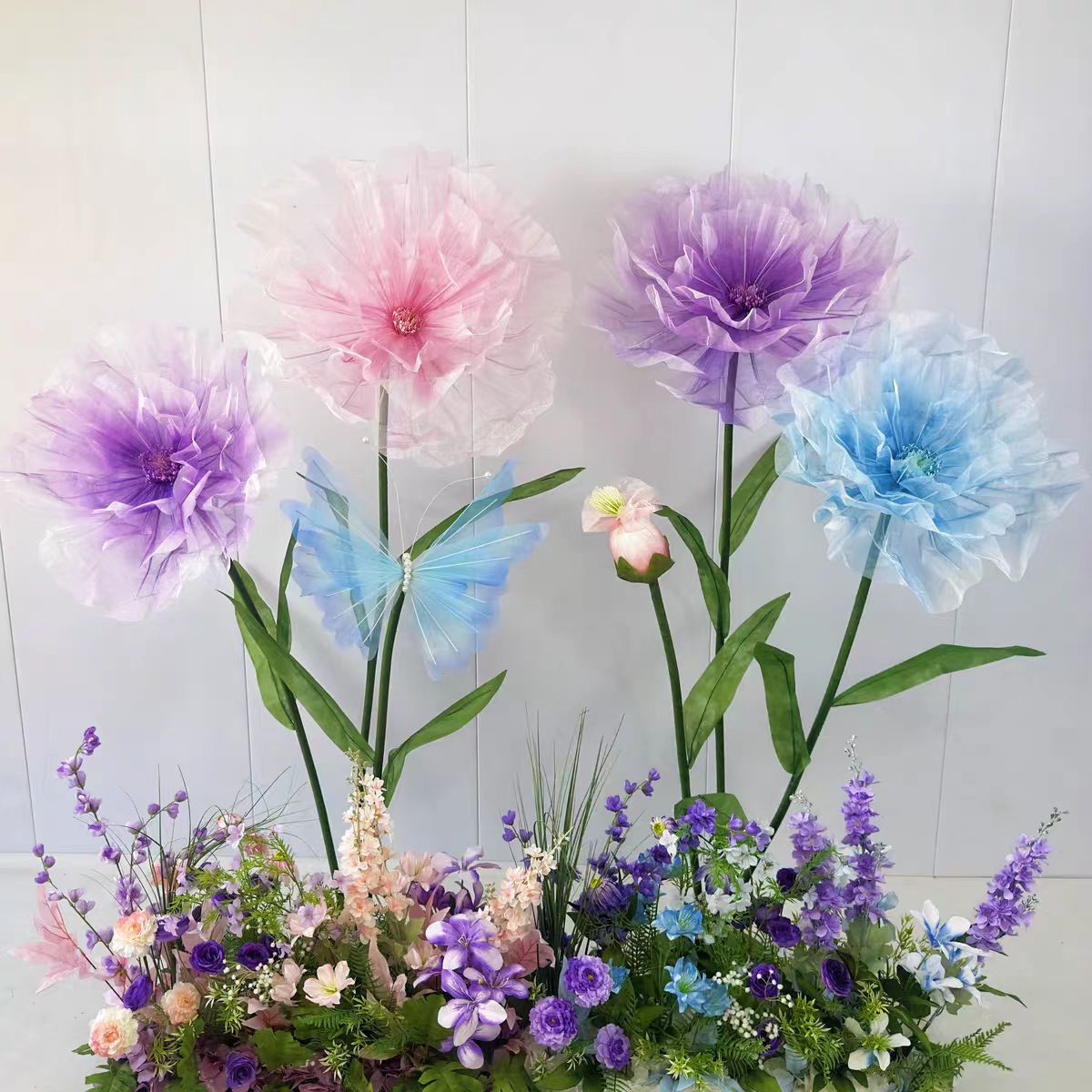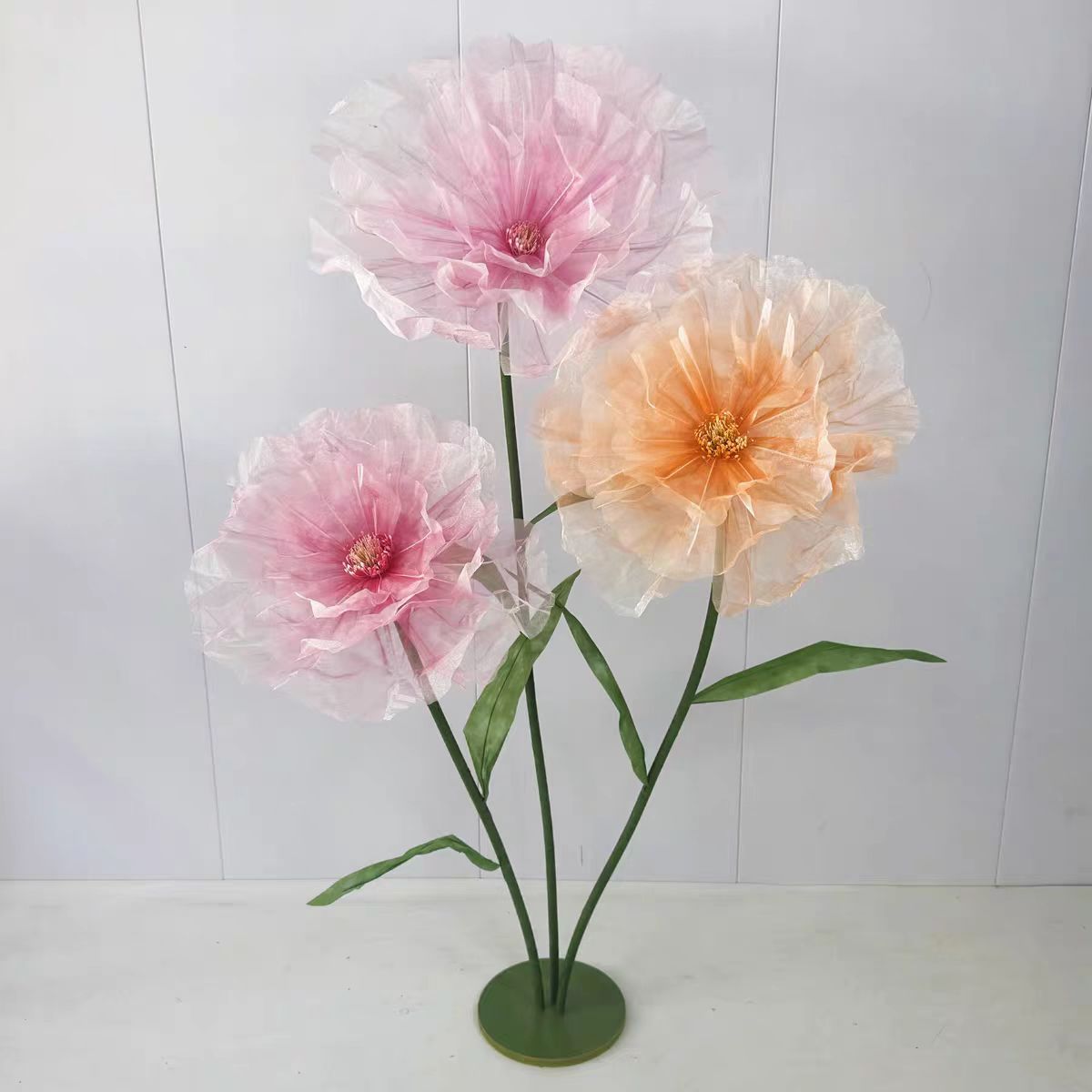 户外丝网花艺美陈橱窗装饰假花艺摆件大型网红丝网花芍药花仿真花