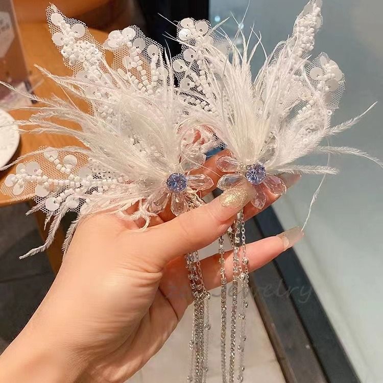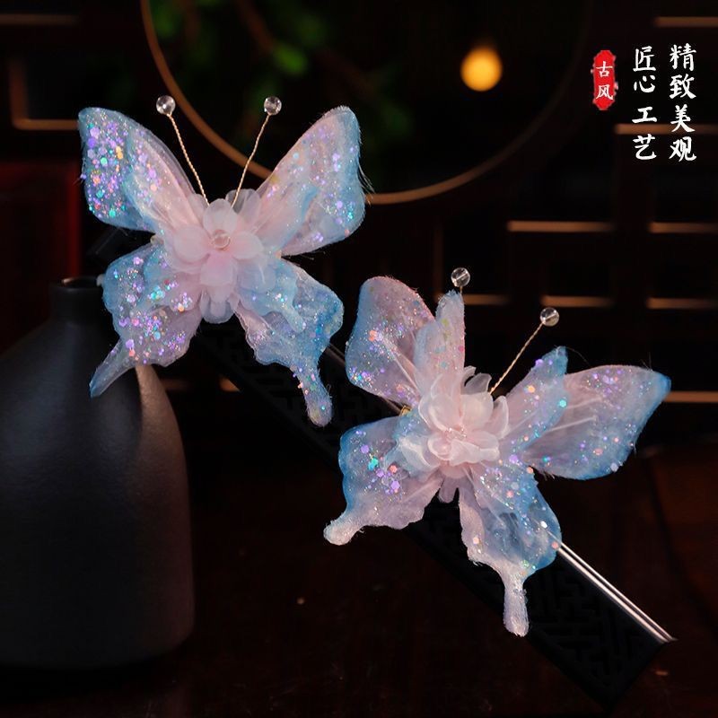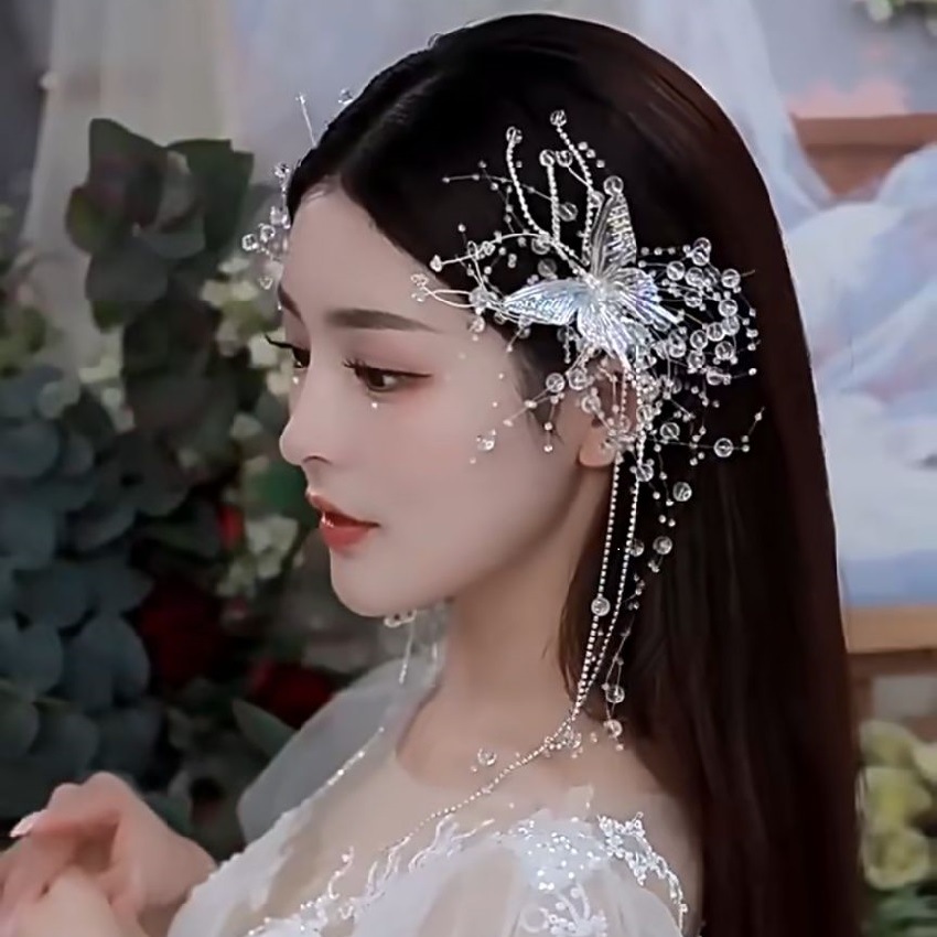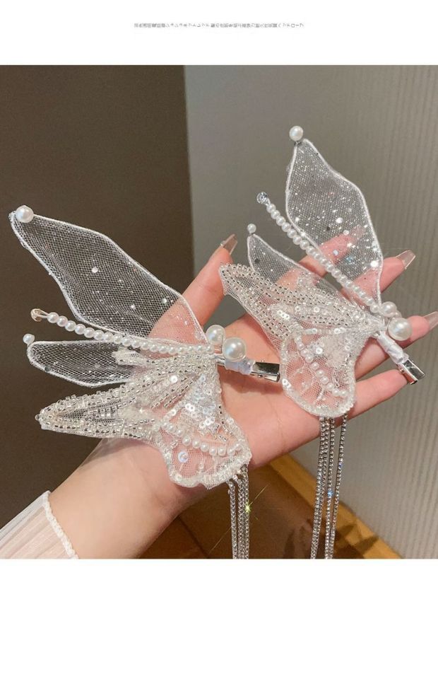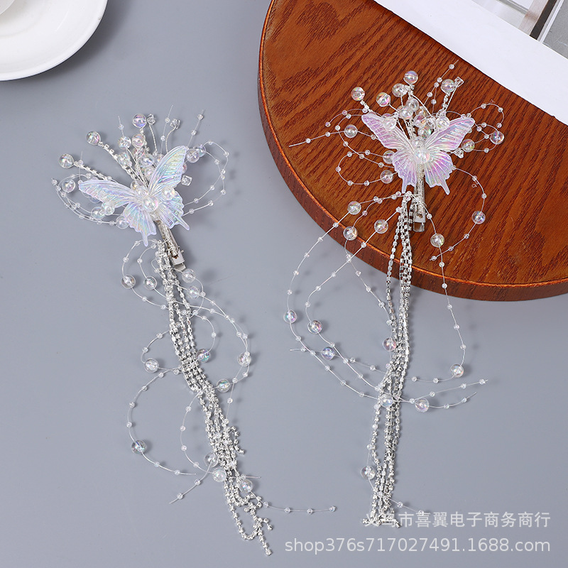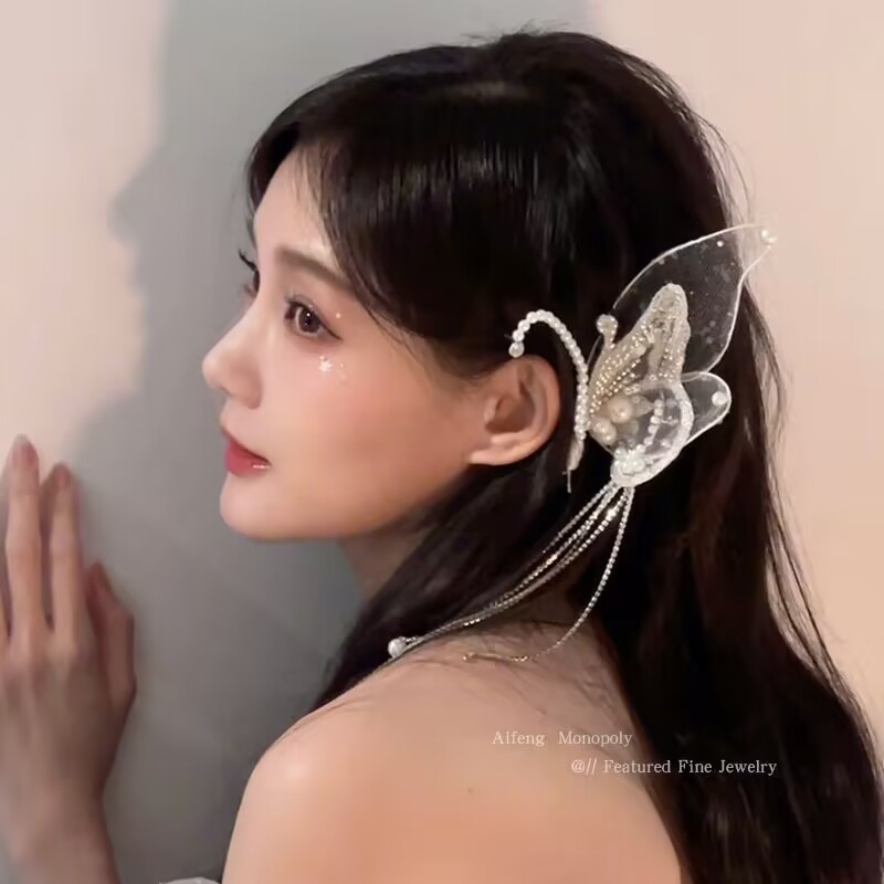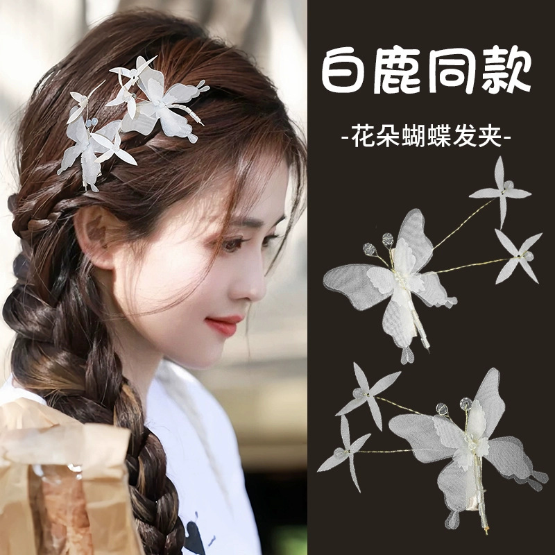 儿童节头饰李一桐白鹿同款发夹珍珠流苏仙气发卡蝴蝶翅膀精灵头饰