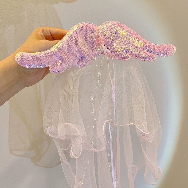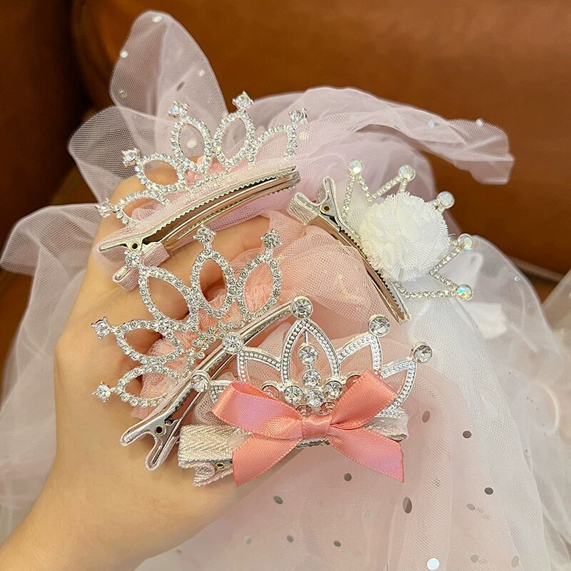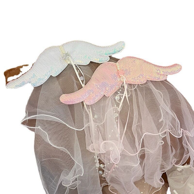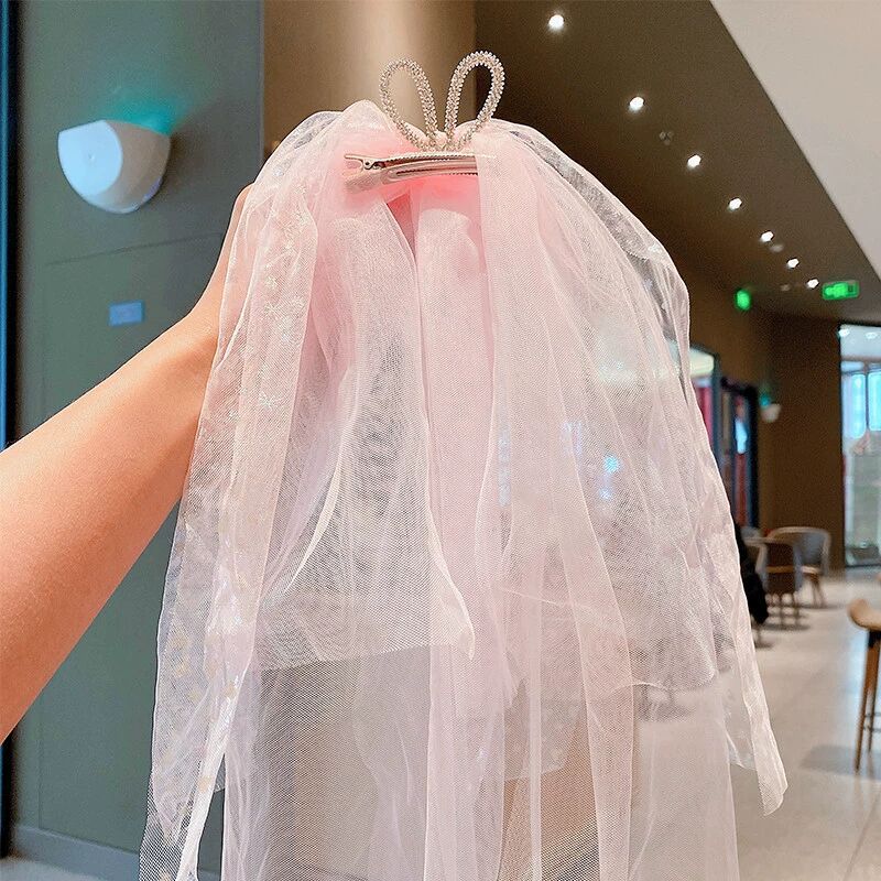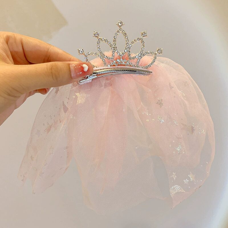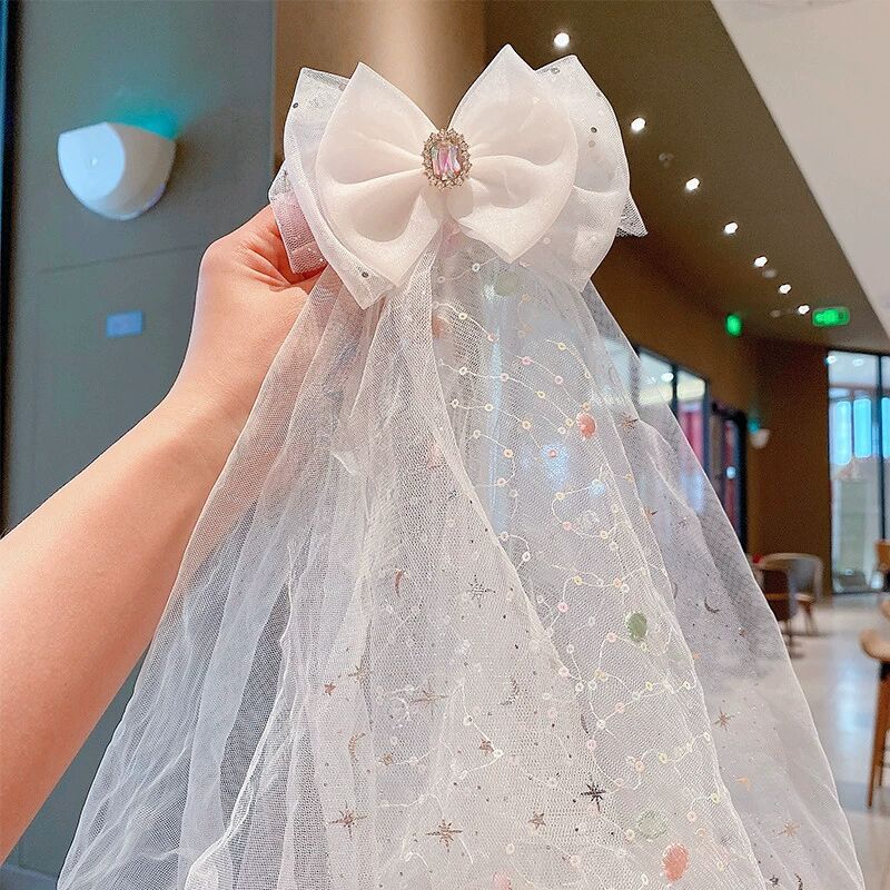 儿童超仙头纱女童公主皇冠头饰拍照道具发夹宝宝白色网纱女孩发卡