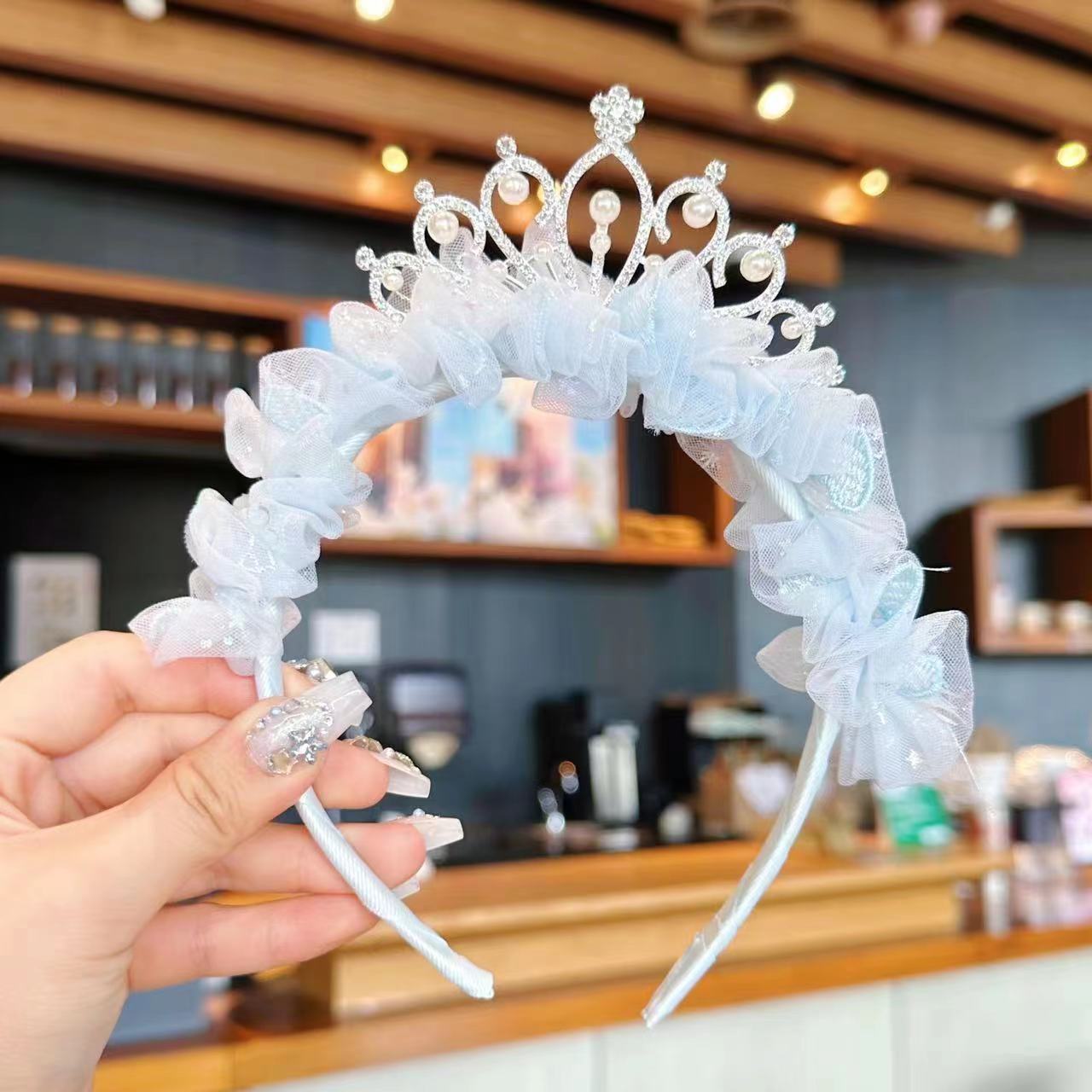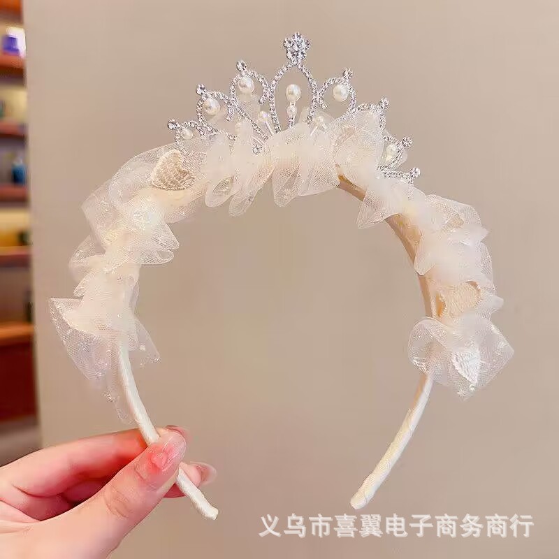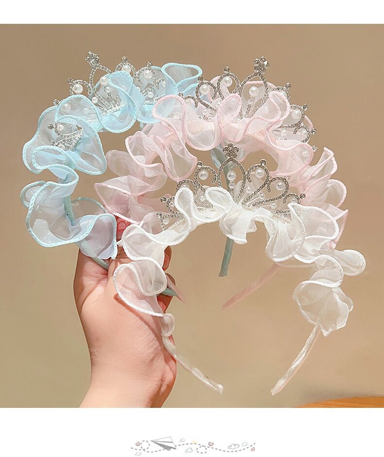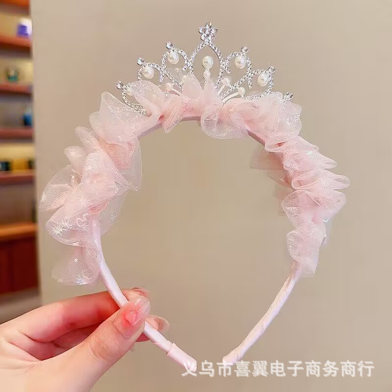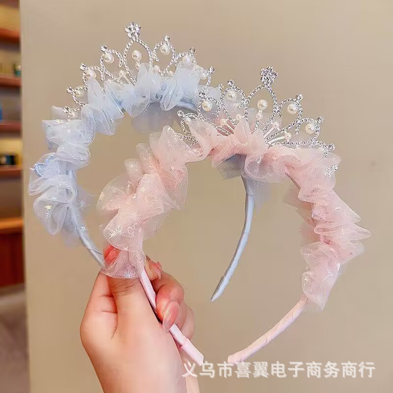 儿童节头饰女童公主皇冠发夹女孩发卡超仙网纱发饰王冠头箍头饰