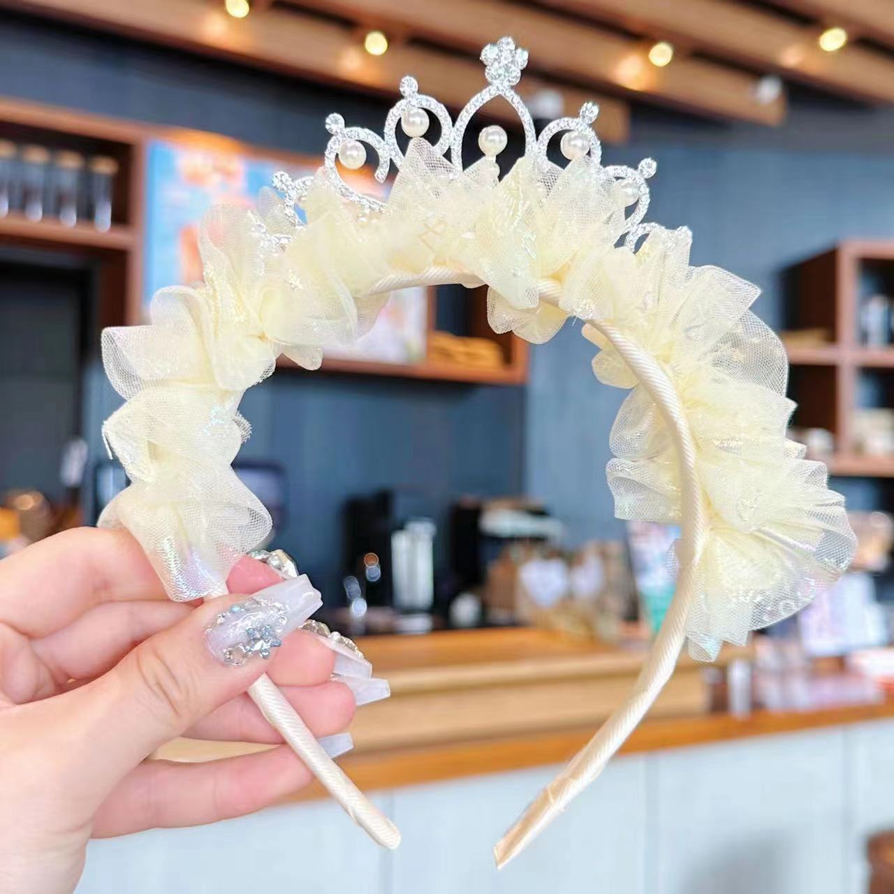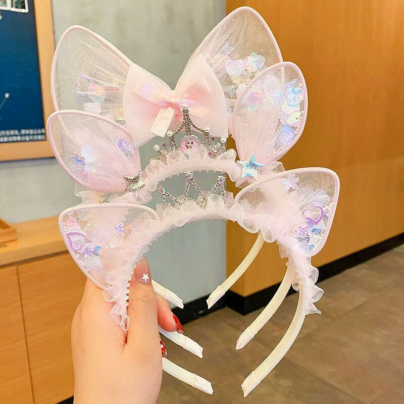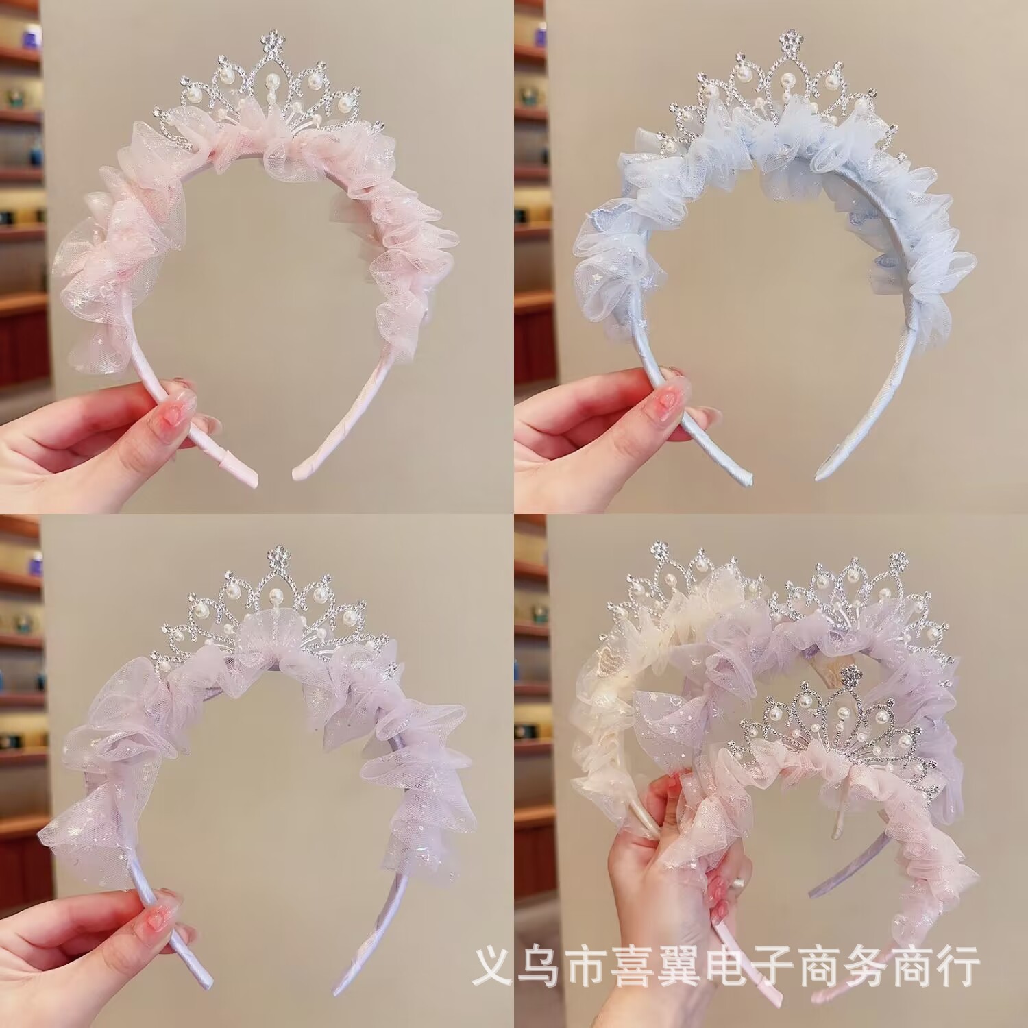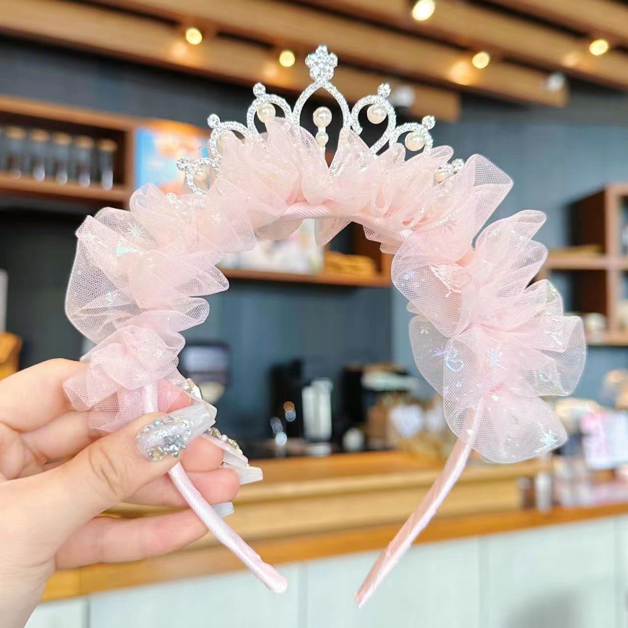 儿童节头饰女童公主皇冠发夹女孩发卡超仙网纱发饰王冠头箍头饰