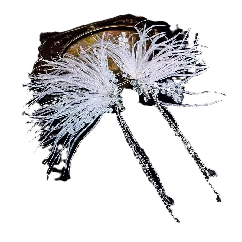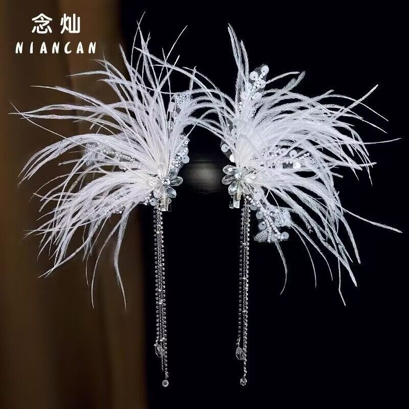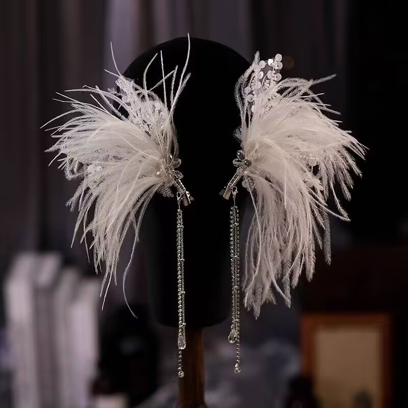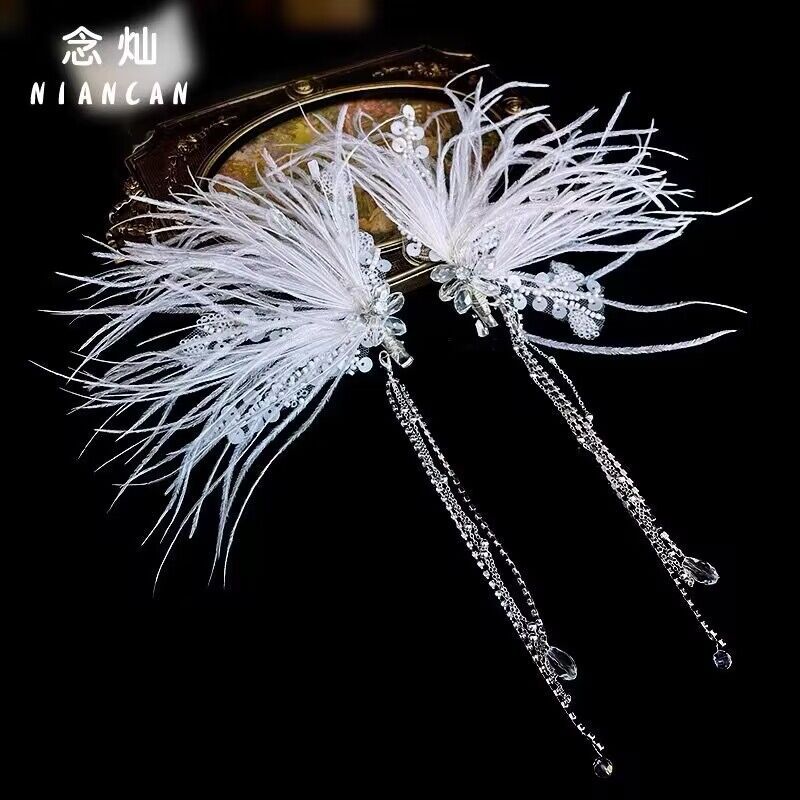 2025新款羽毛发夹仙美新娘水晶流苏头饰高级感结婚礼服造型配饰