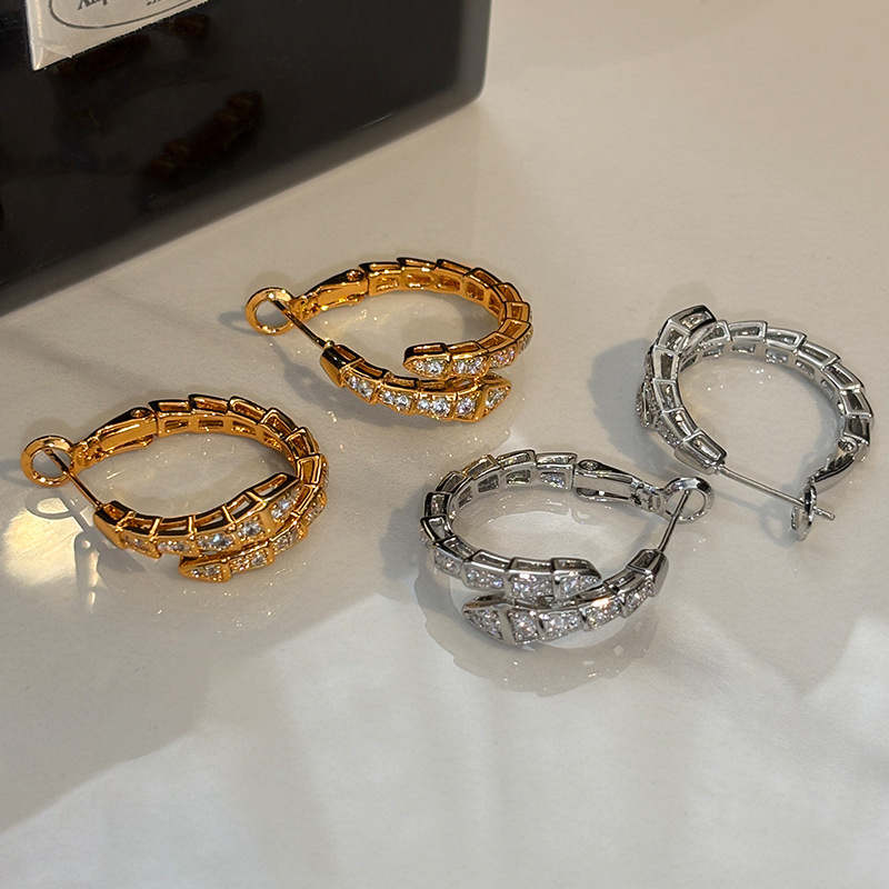 S925纯银针金色灵蛇形耳环耳钉女真金电镀轻奢高级感气质耳扣耳饰