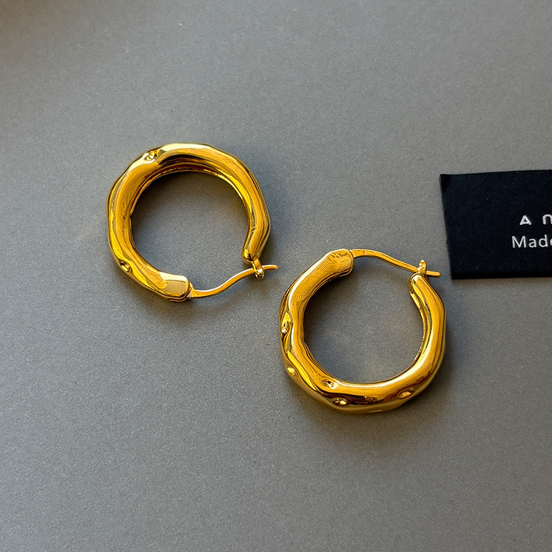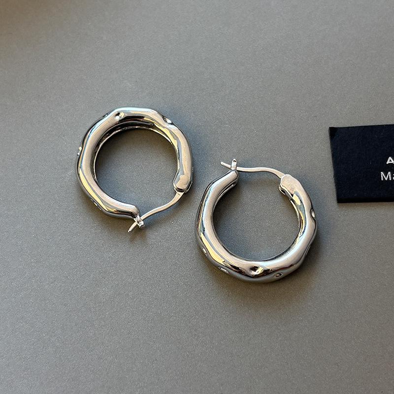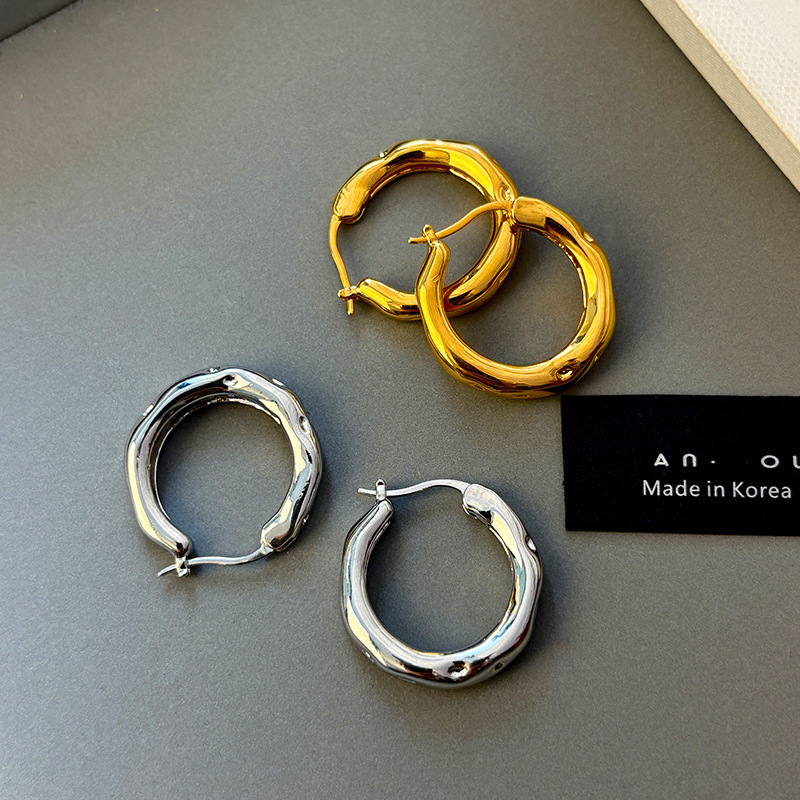 S925纯银金属素圈耳环圈圈女高级感轻奢2025新爆款金银色秋冬耳饰