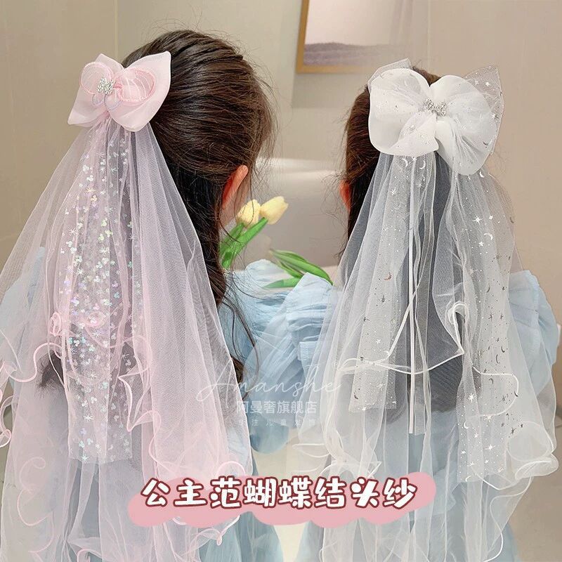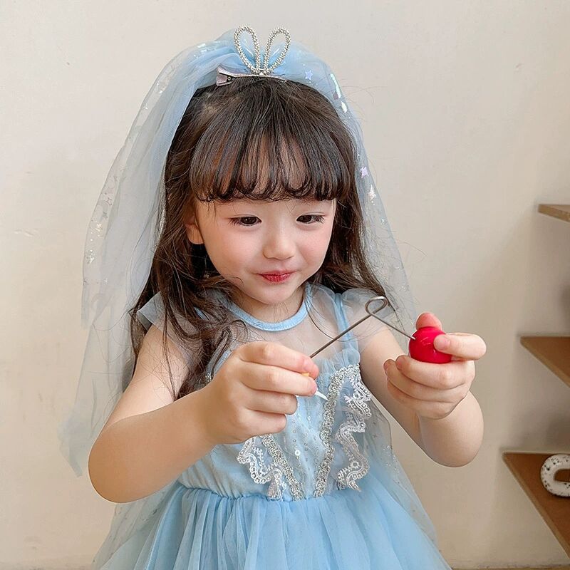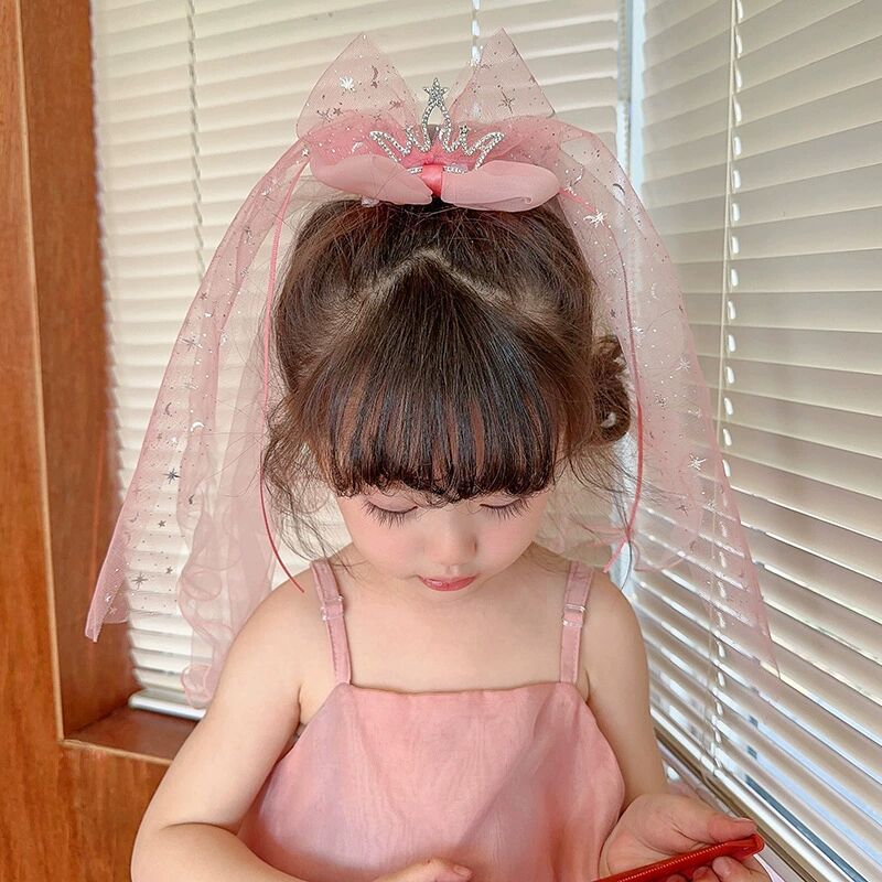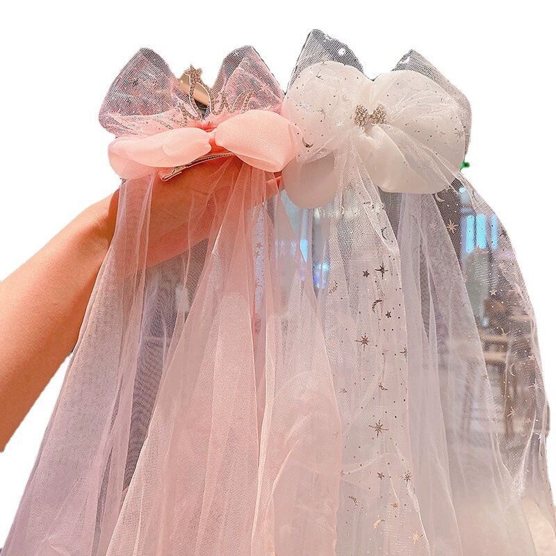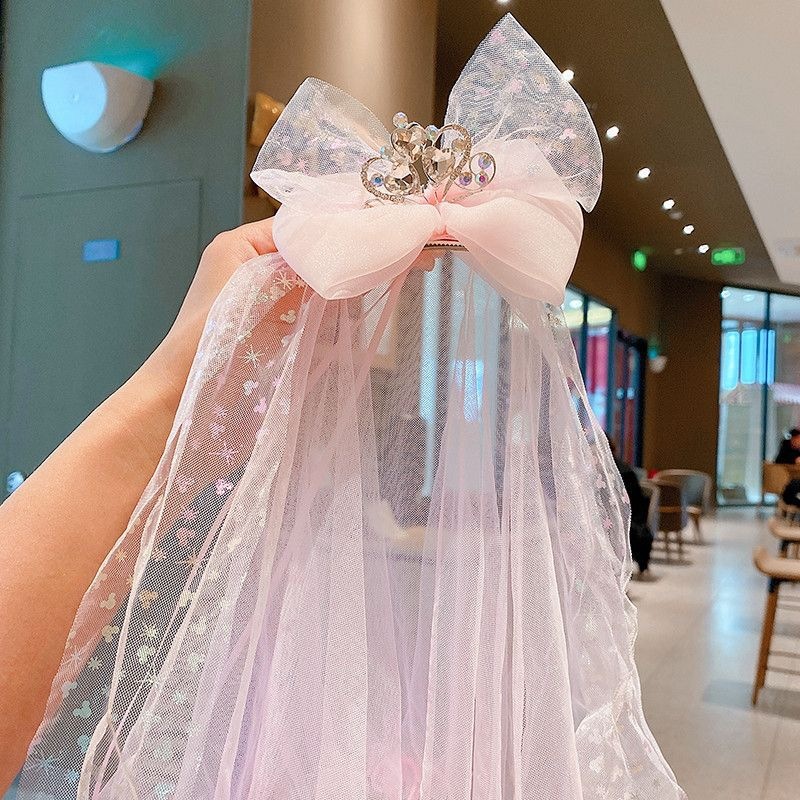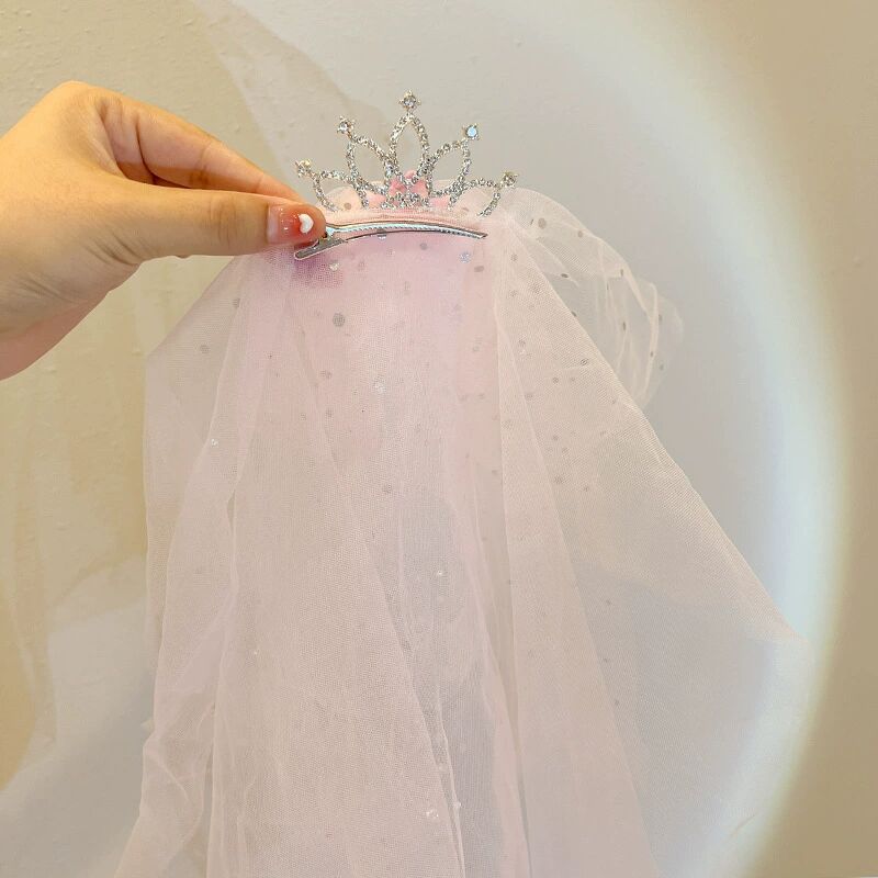 宝宝生日头纱儿童公主超仙网纱发夹发饰小女孩公主裙皇冠发卡头饰
