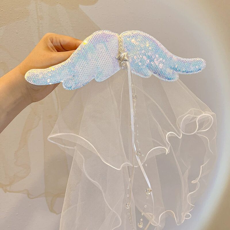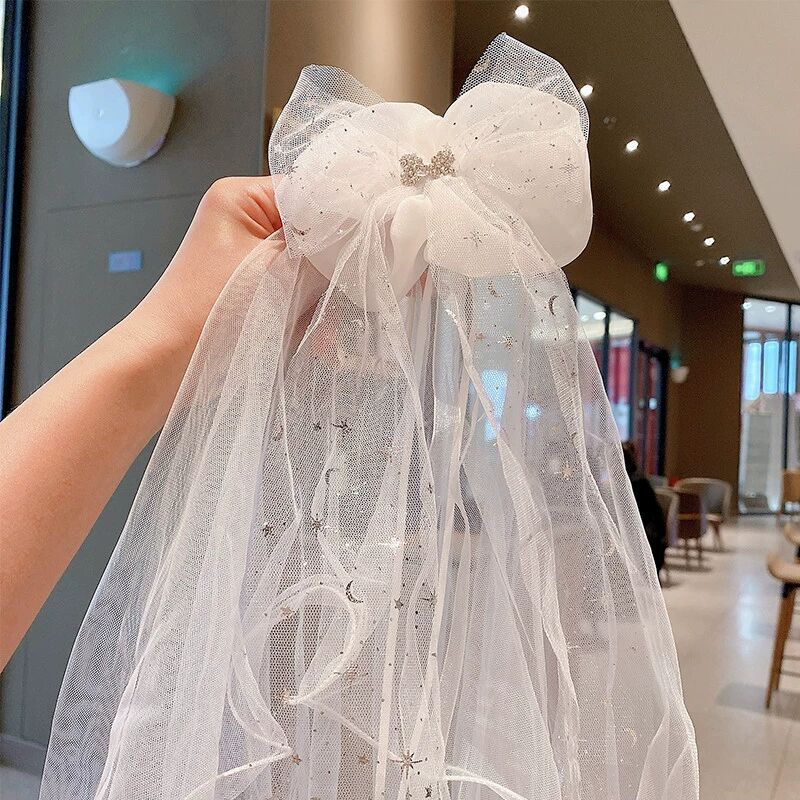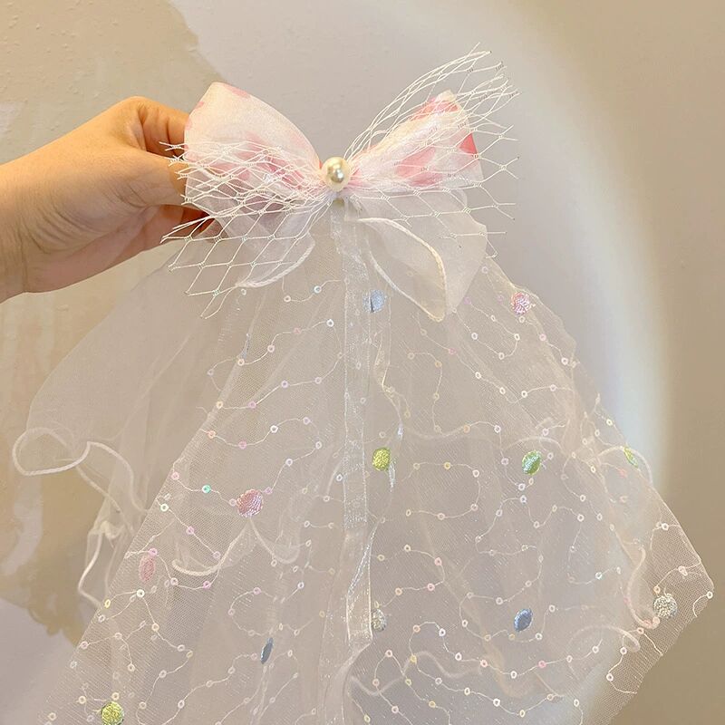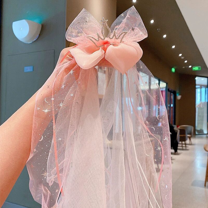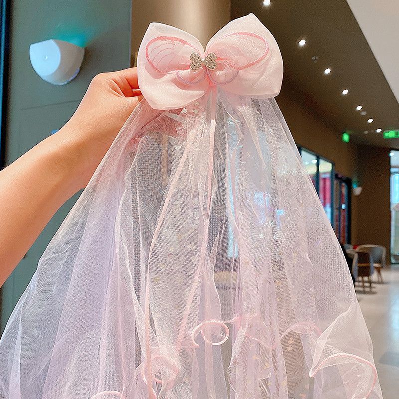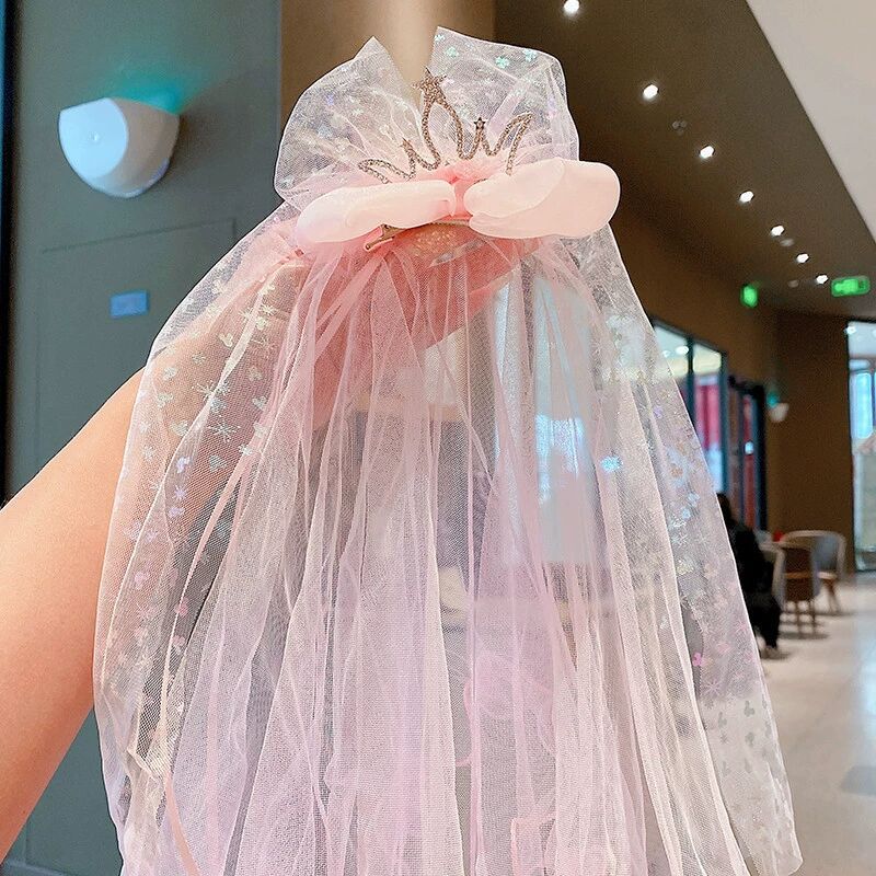 宝宝生日头纱儿童公主超仙网纱发夹发饰小女孩公主裙皇冠发卡头饰