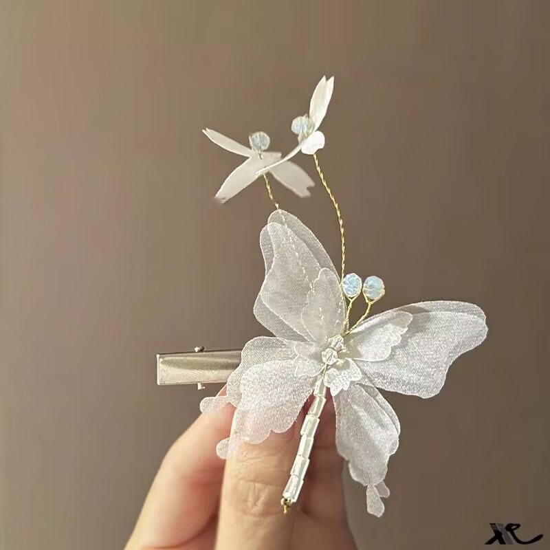 蝴蝶发夹边夹侧边羊毛卷发饰流海发卡女2025新款头饰刘海夹碎发夹
