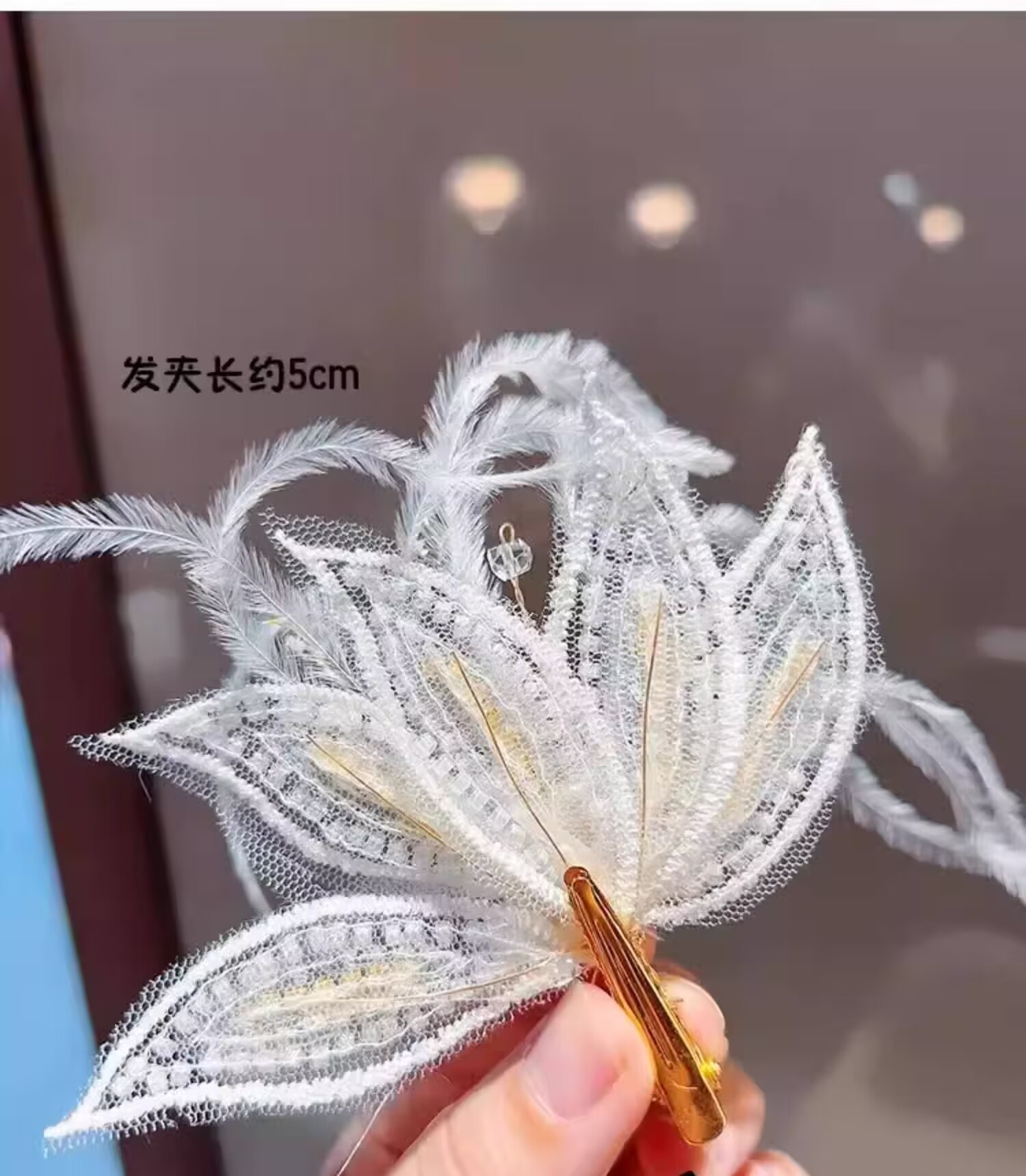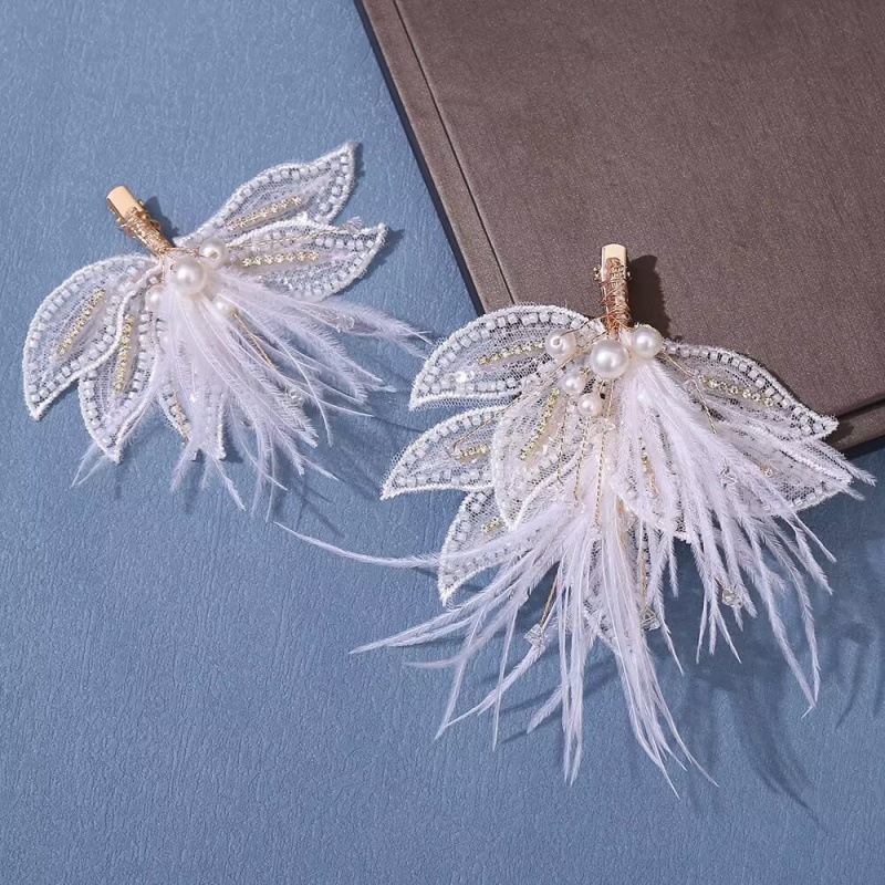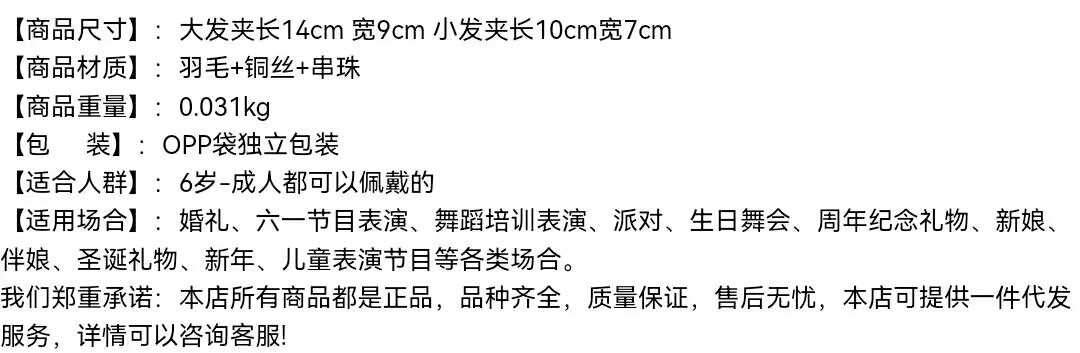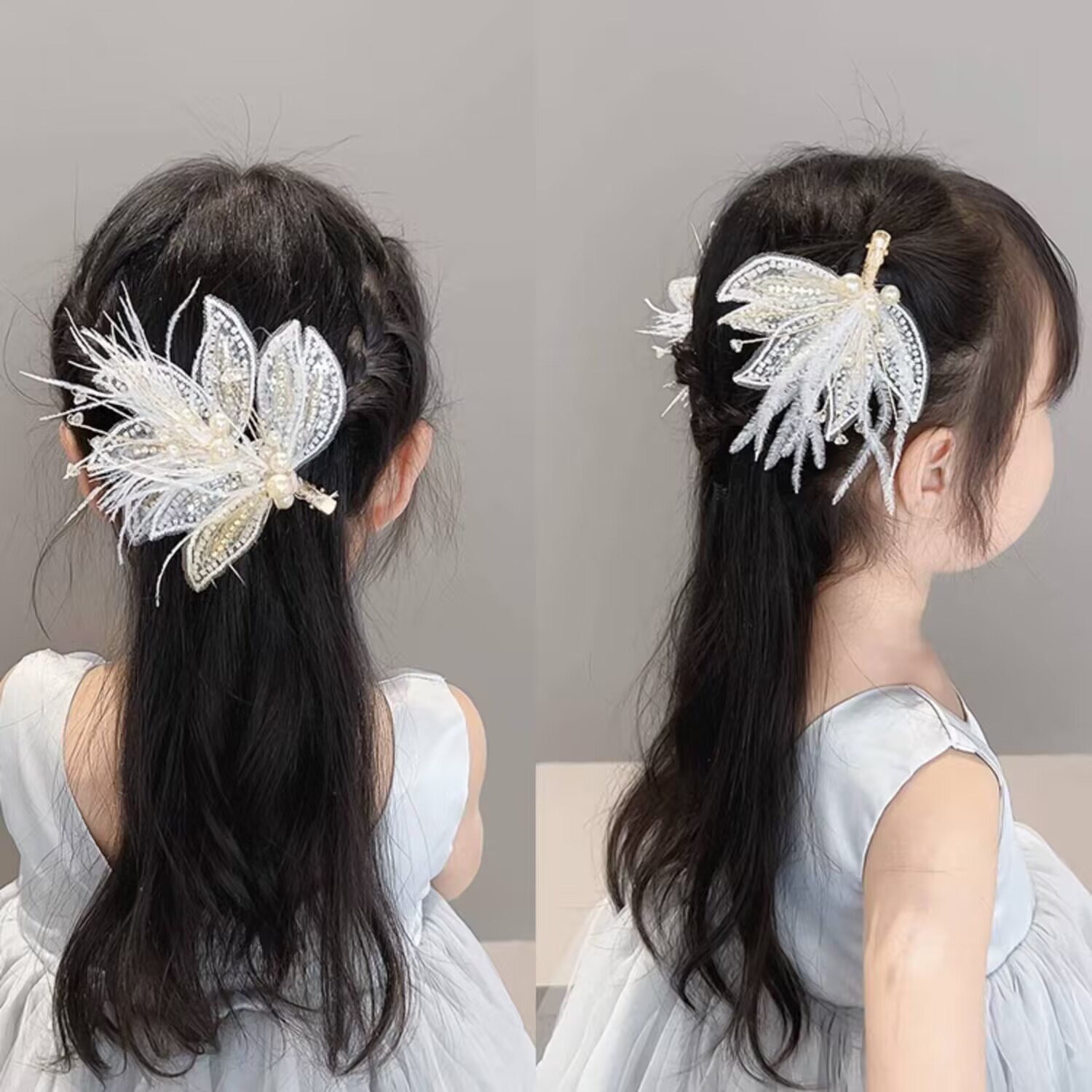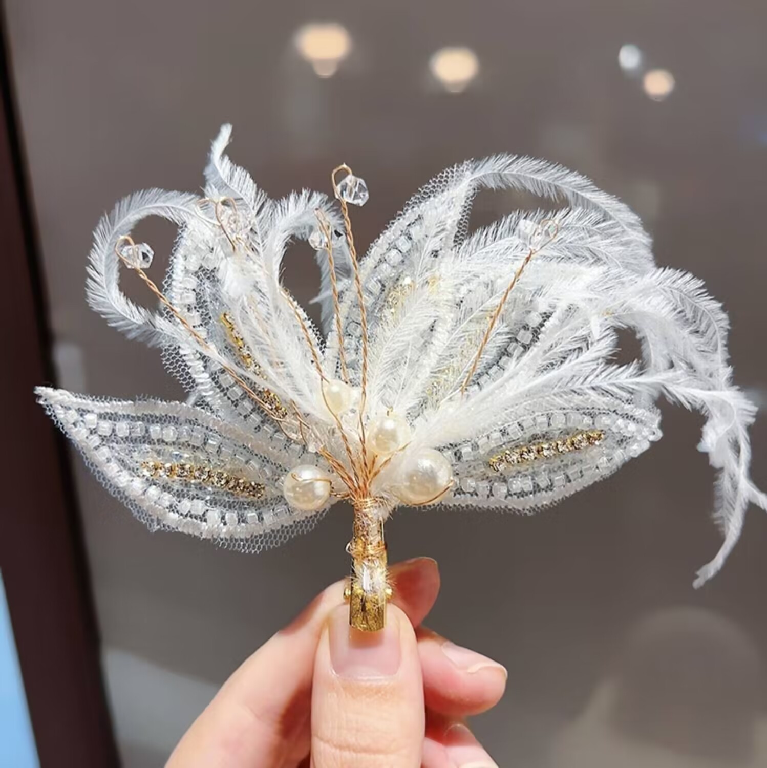 儿童头饰公主羽毛侧边发夹礼服发饰女童高级感主持人演出走秀舞台