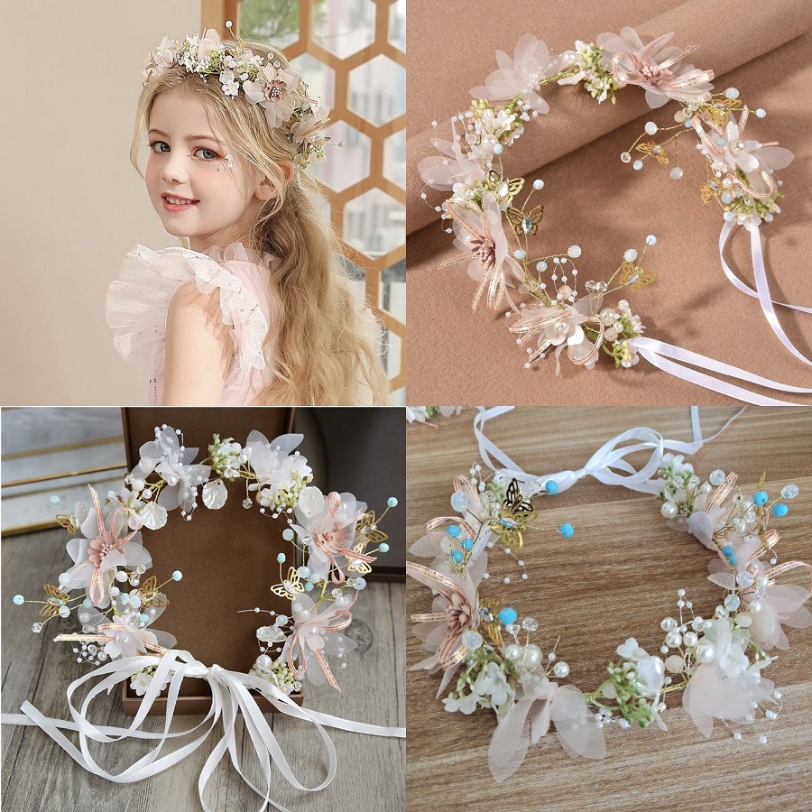 儿童花环头饰女童头花发带小孩皇冠饰品韩版森女系花朵演出发箍