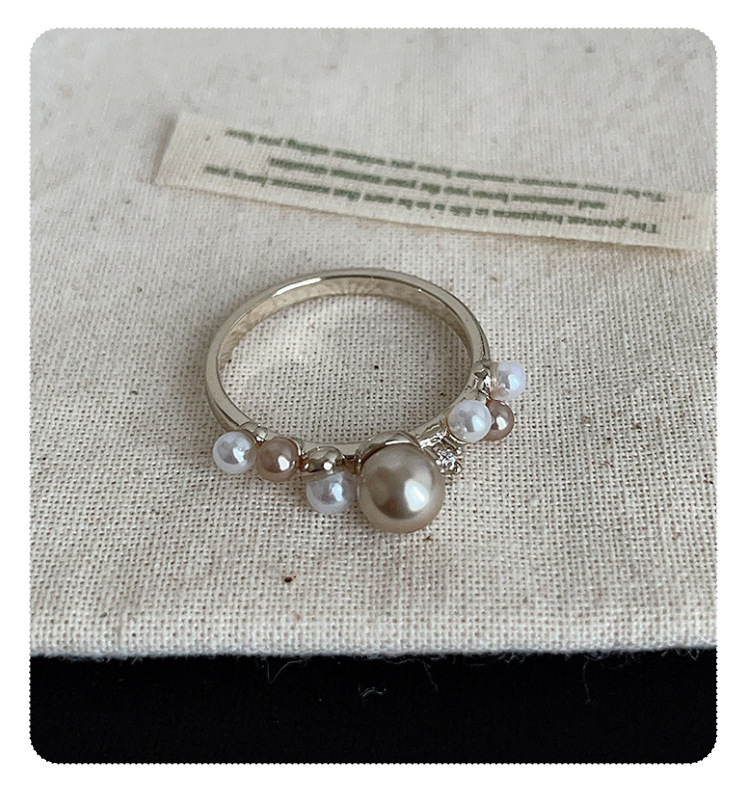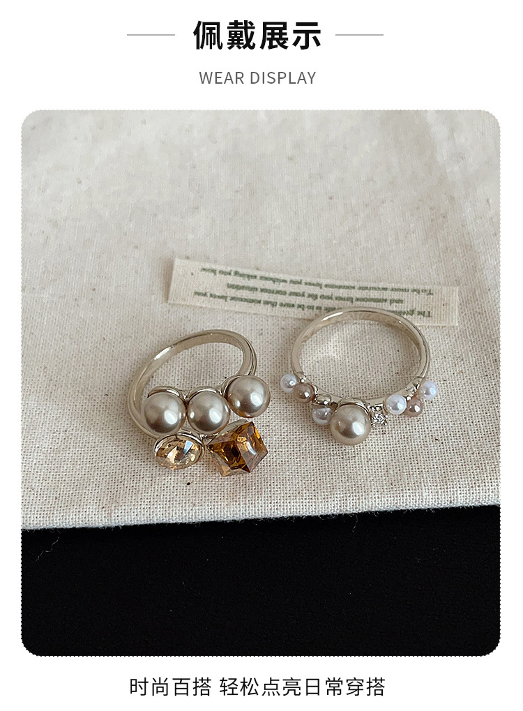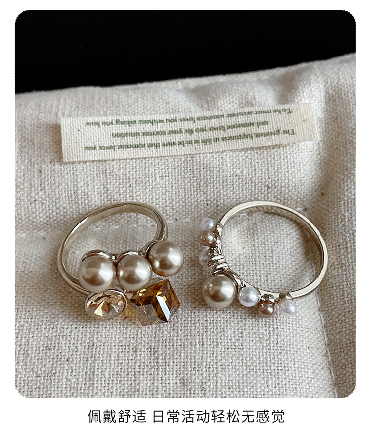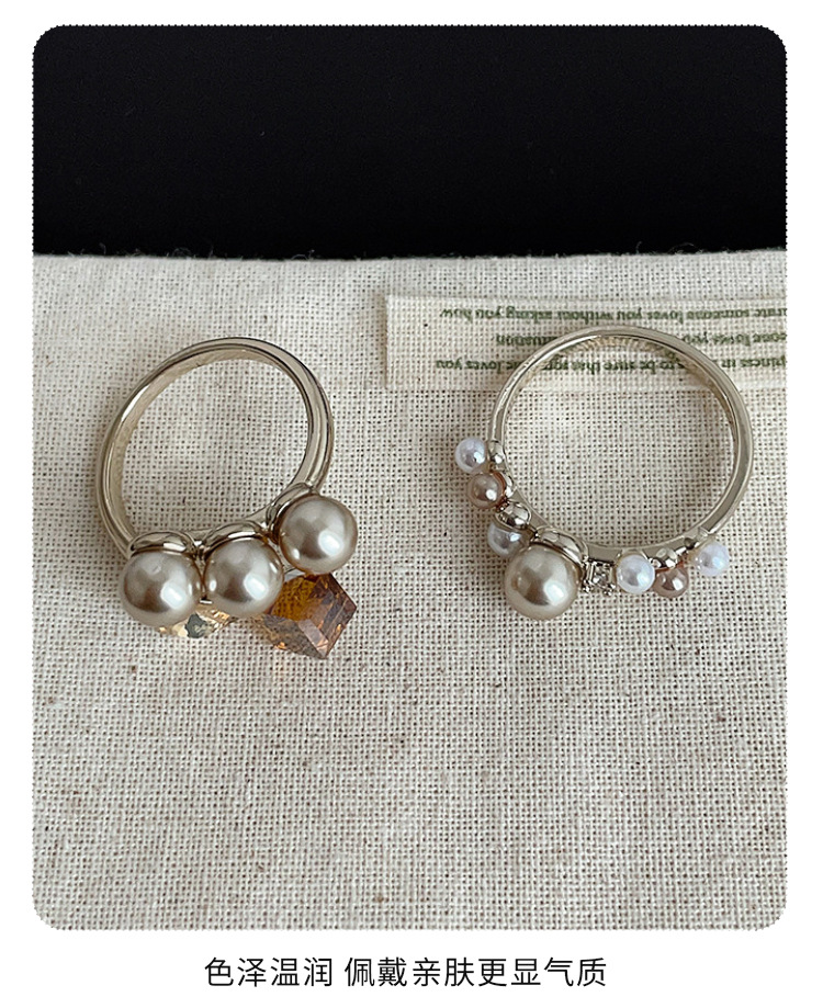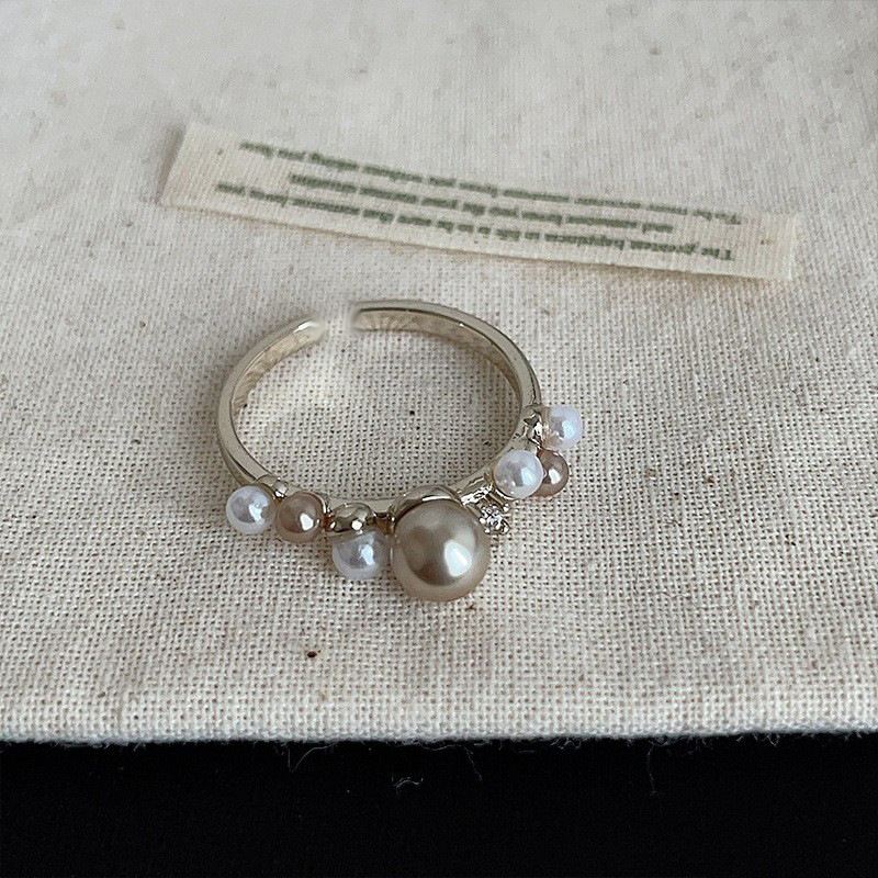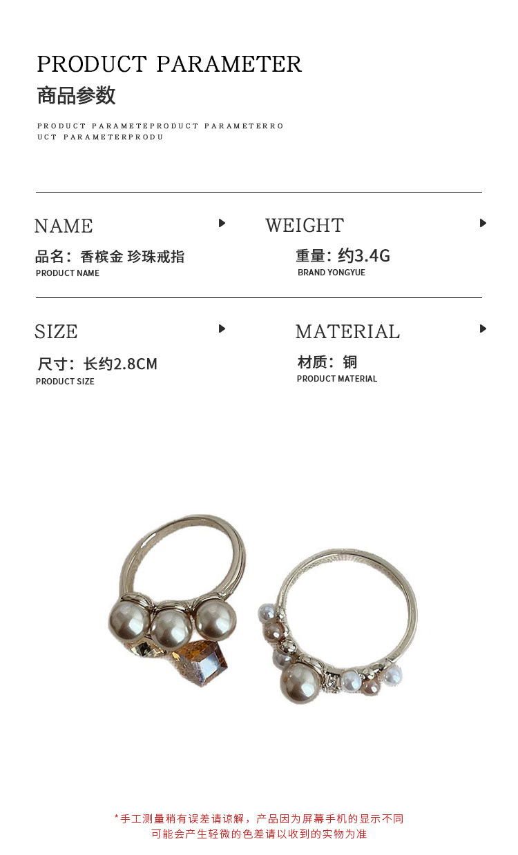 繁星闪烁~高级感香槟金珍珠开口戒指女款轻奢气质食指戒叠戴指环