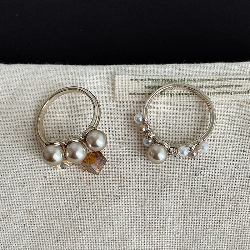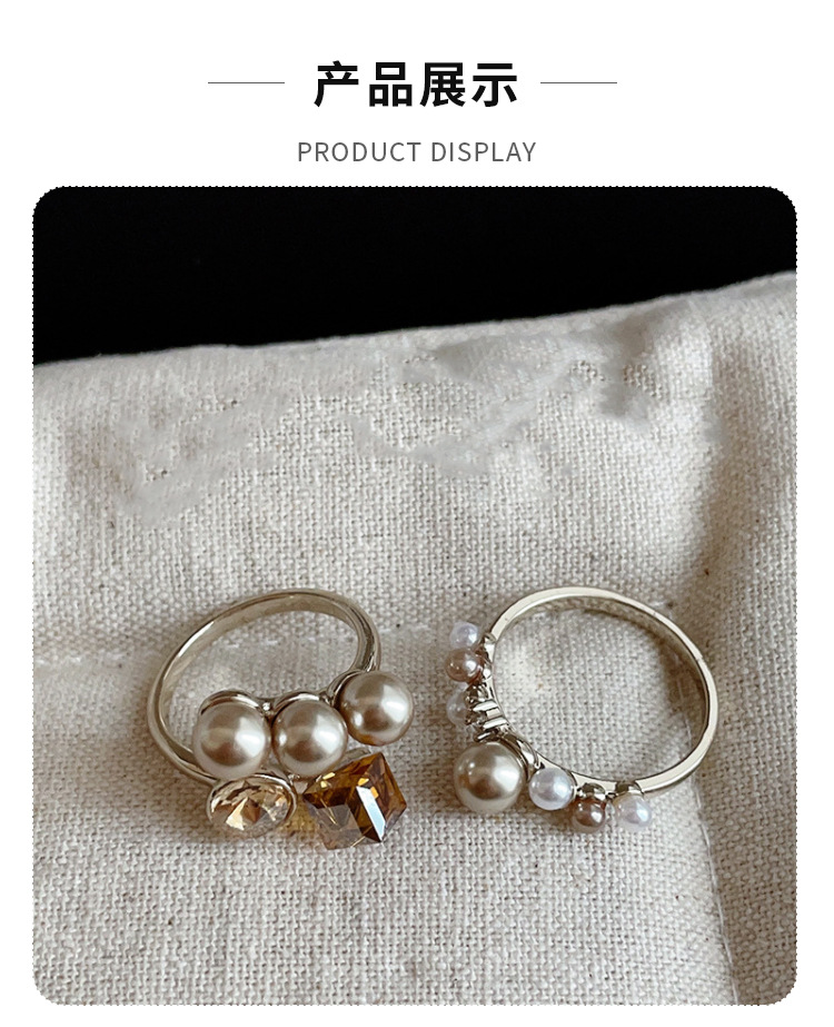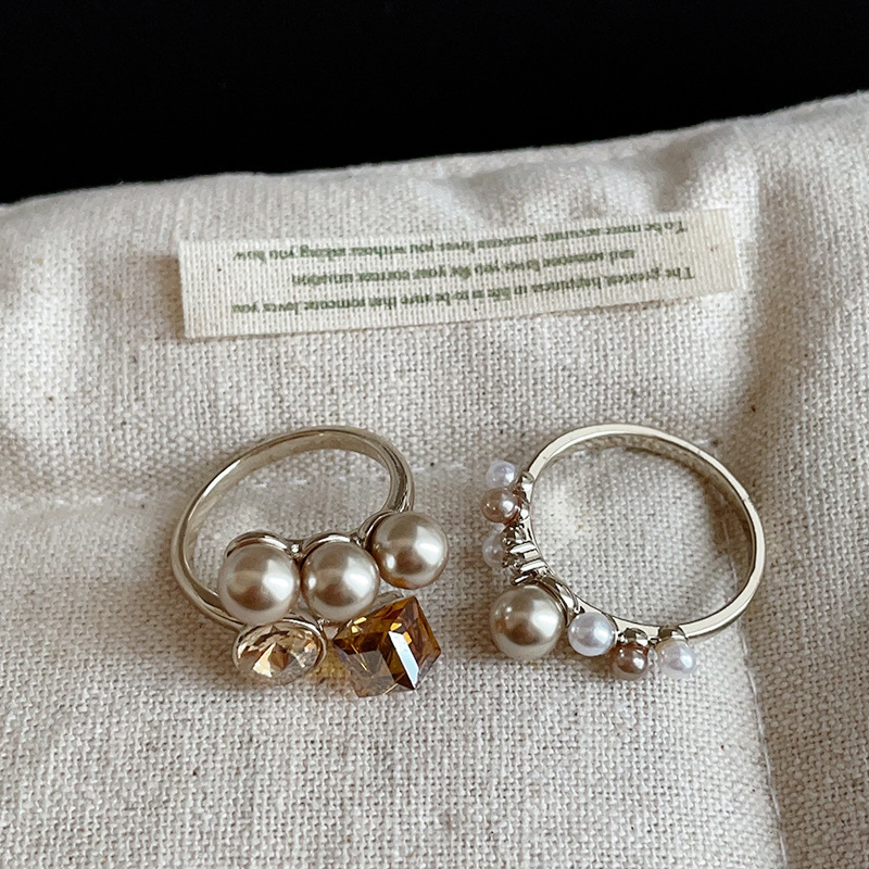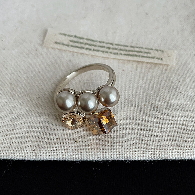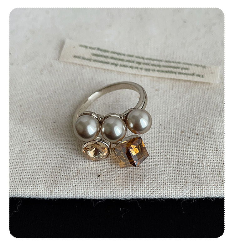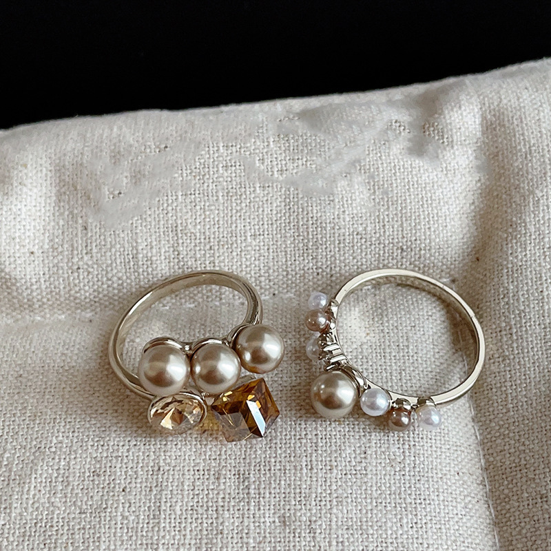 繁星闪烁~高级感香槟金珍珠开口戒指女款轻奢气质食指戒叠戴指环