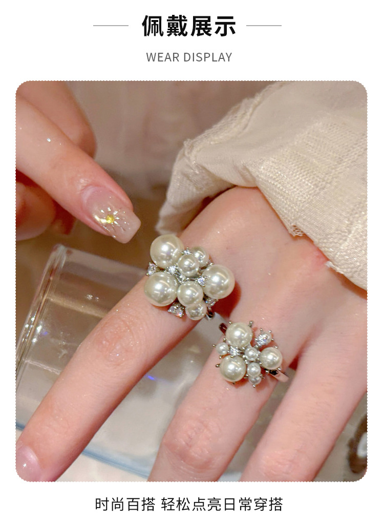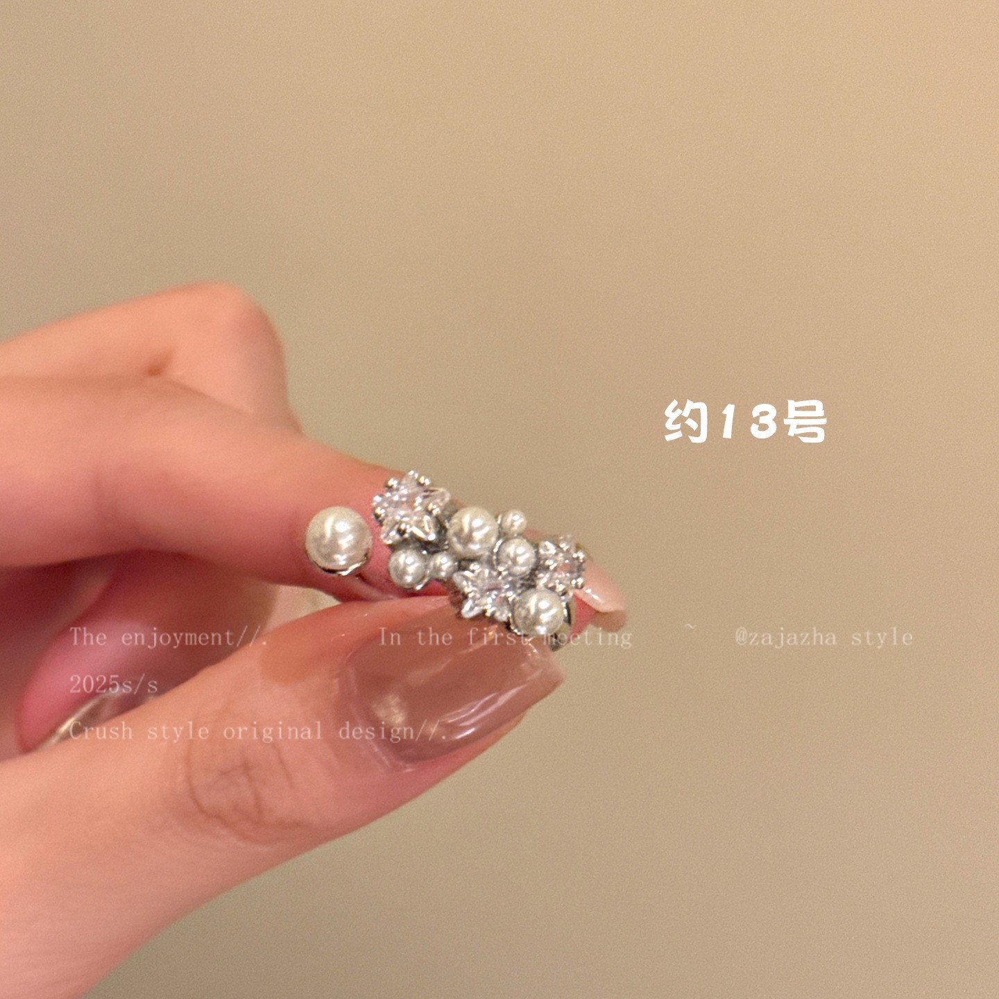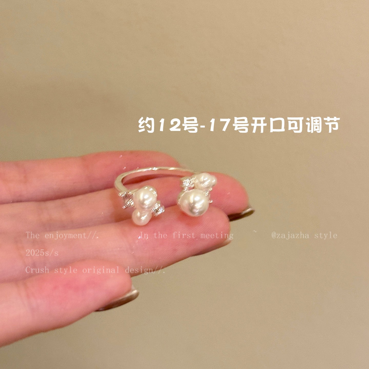 满天星锆石珍珠开口戒指女2026新款轻奢高级感小众设计食指戒指环