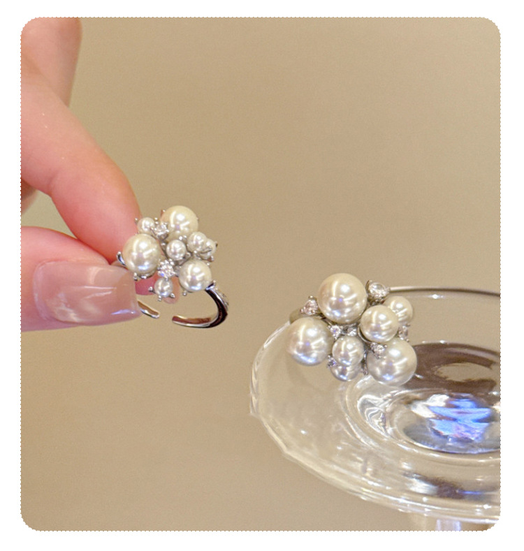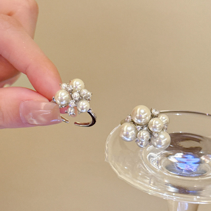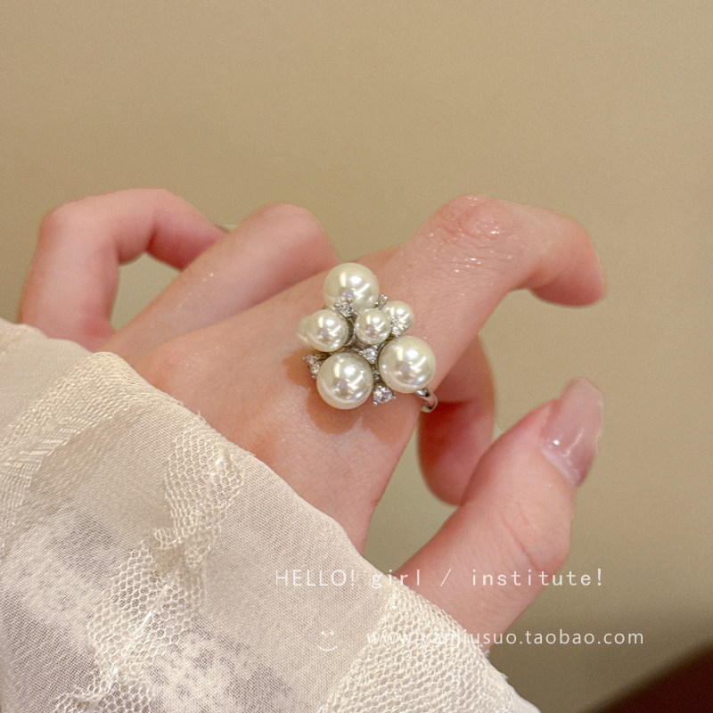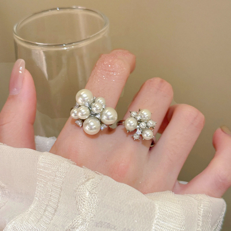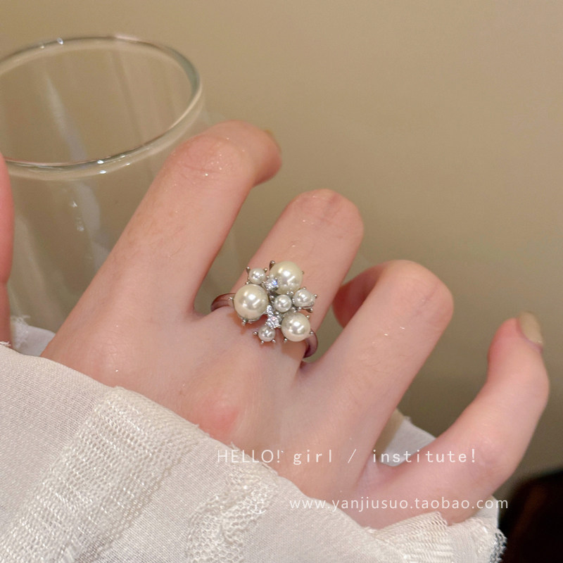 满天星锆石珍珠开口戒指女2026新款轻奢高级感小众设计食指戒指环