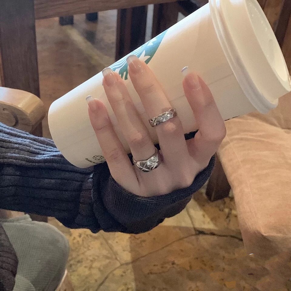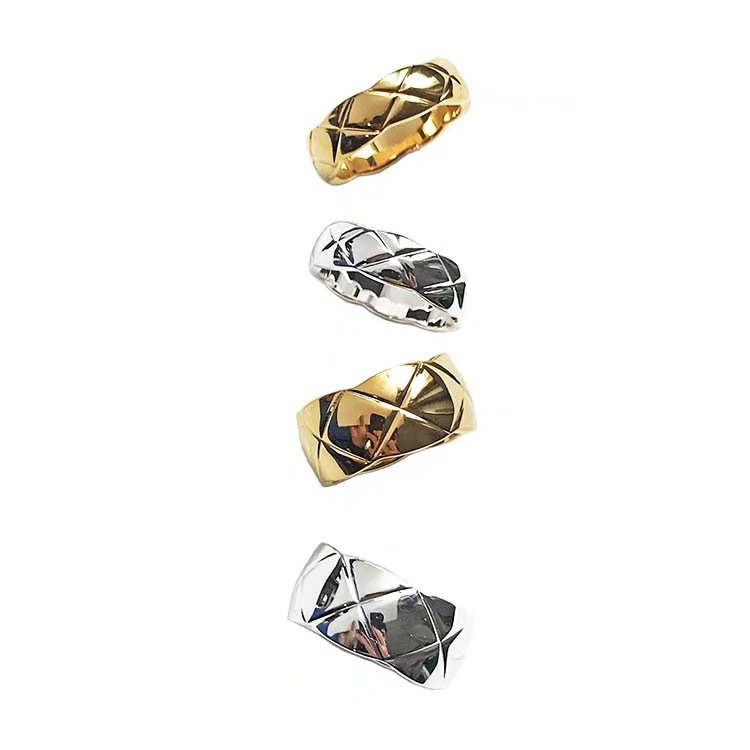 欧美菱格素圈戒指女简约个性网红气质小众感法式复古开口指环
