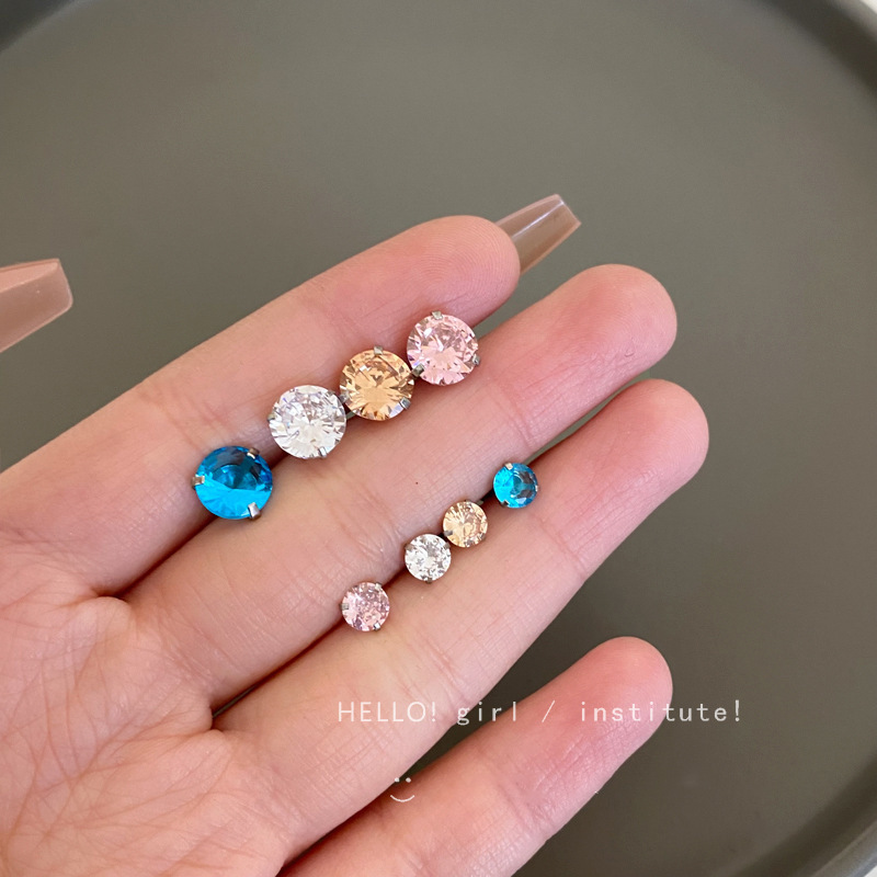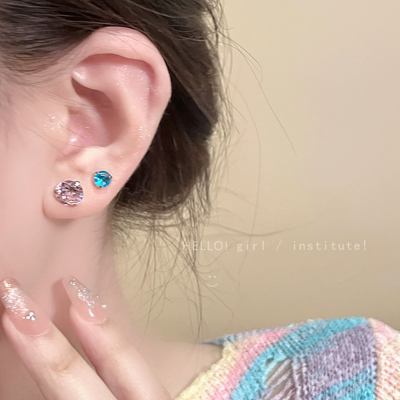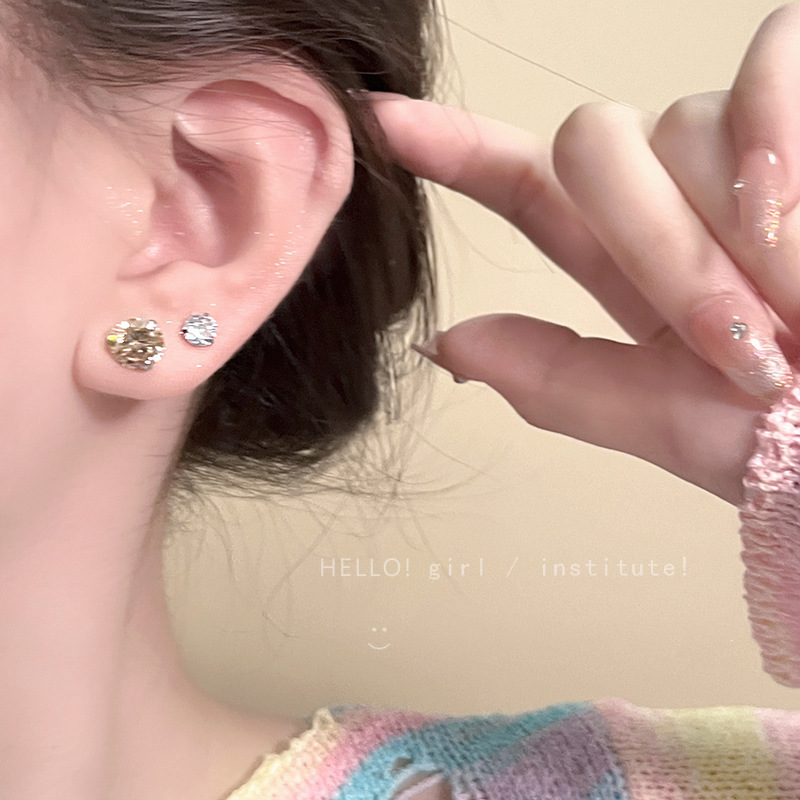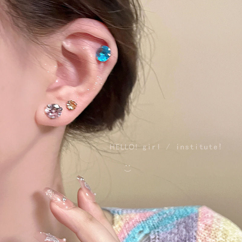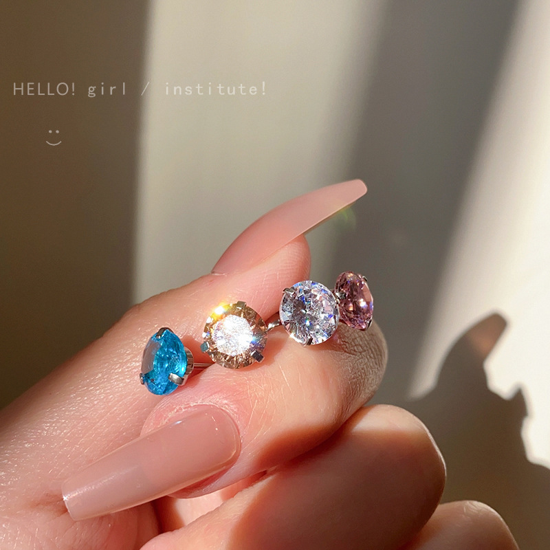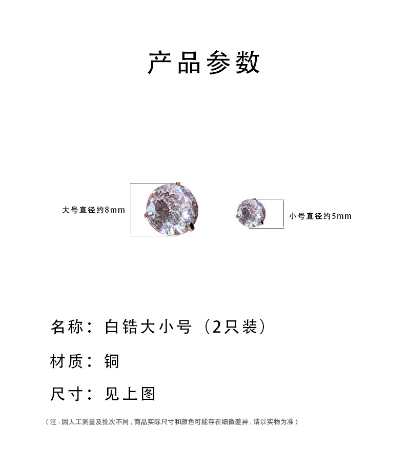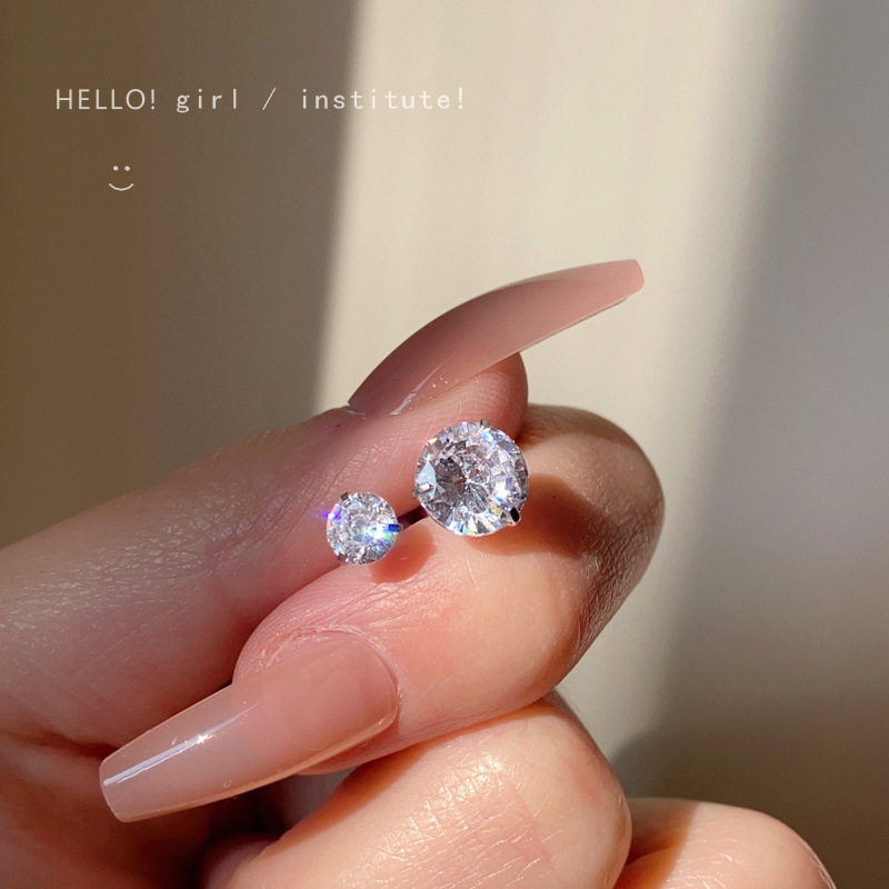 清新简约百搭白色水钻针迷你裸钻耳钉轻奢气质女锆石耳骨钉