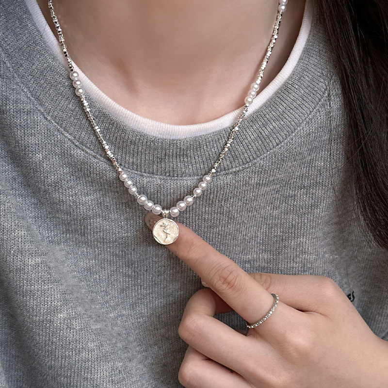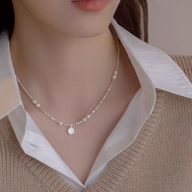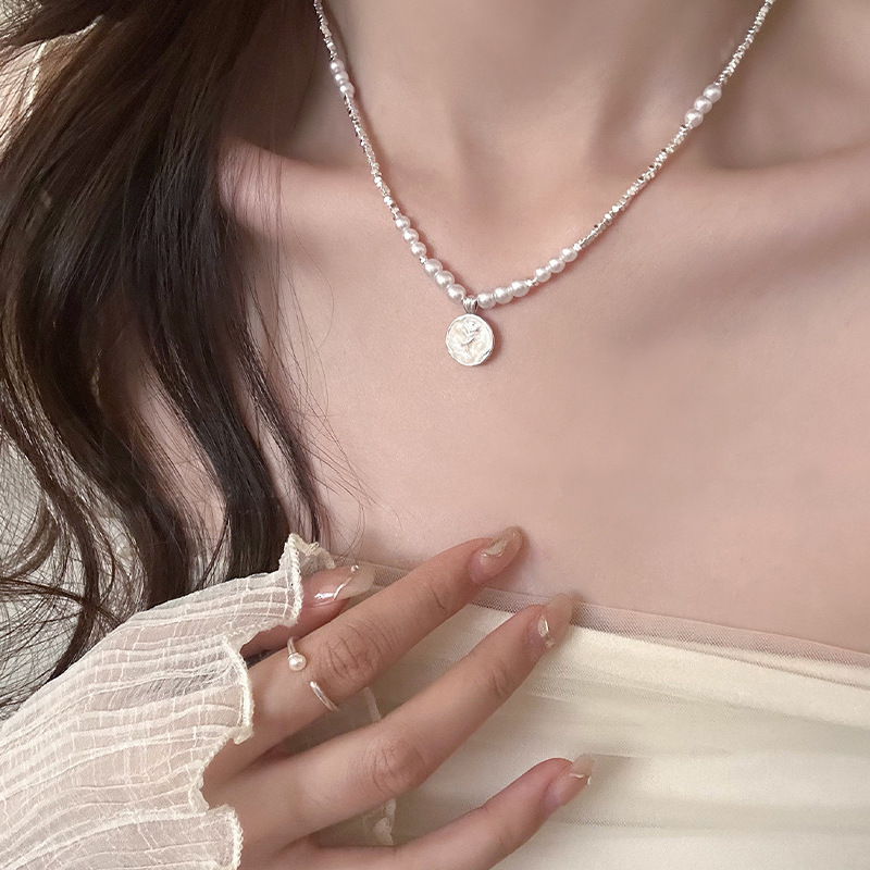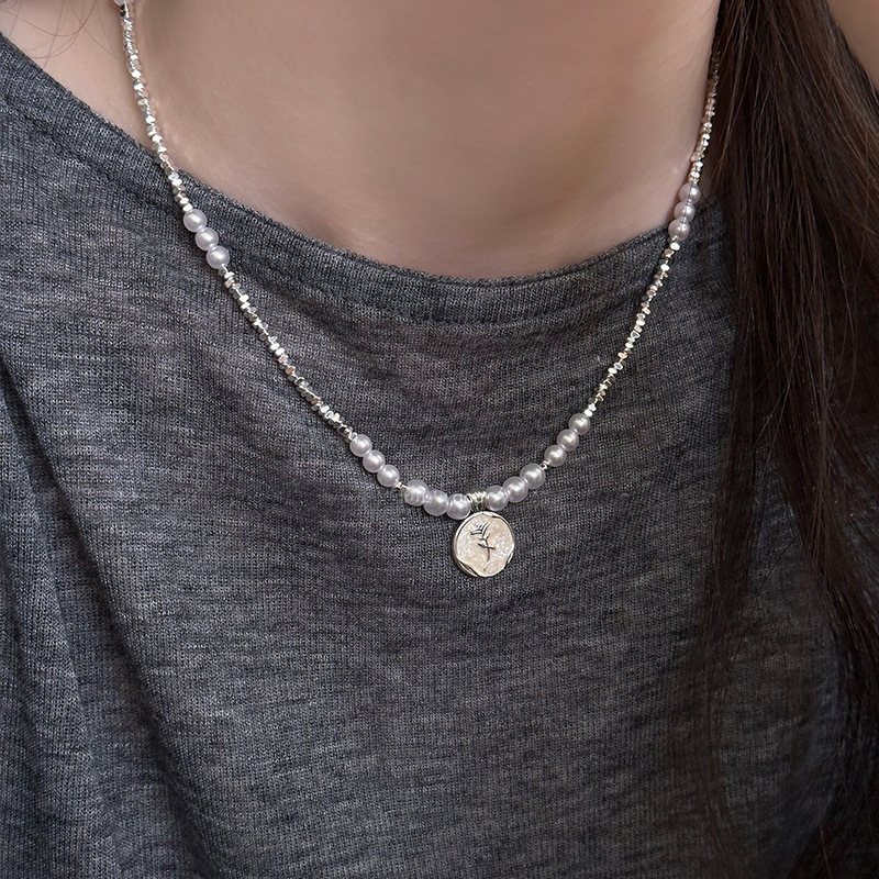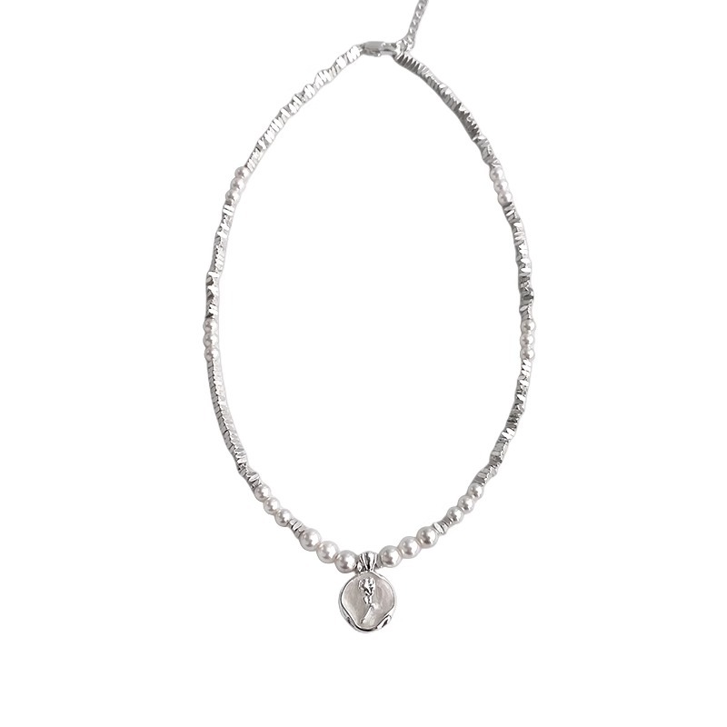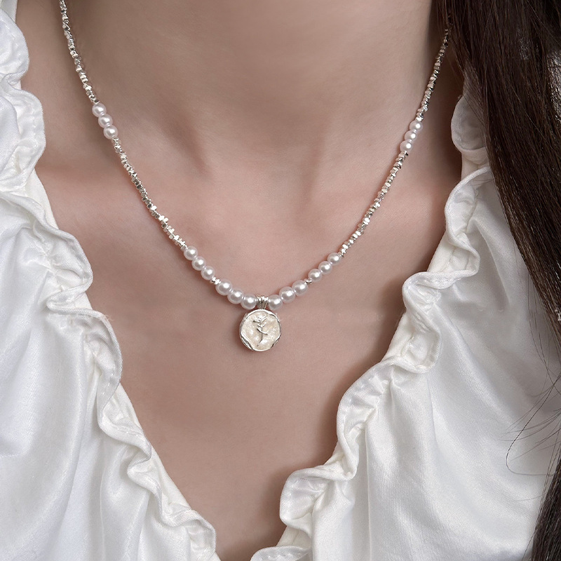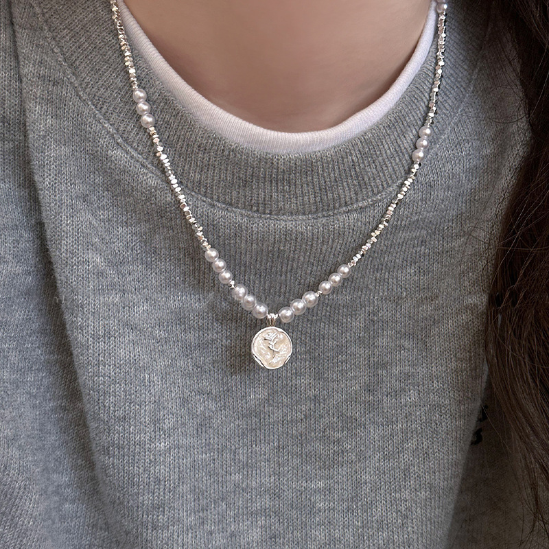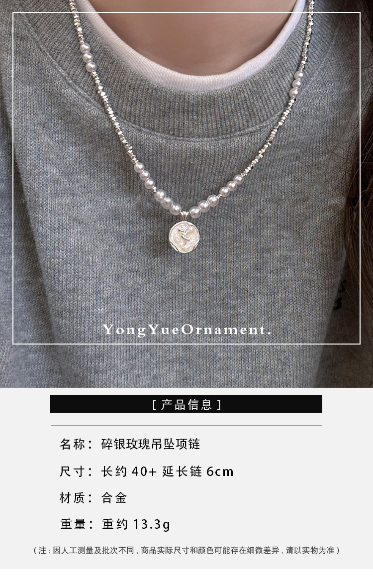 不规则碎银子珍珠项链女2025新款轻奢高级感玫瑰花滴釉卫衣项链